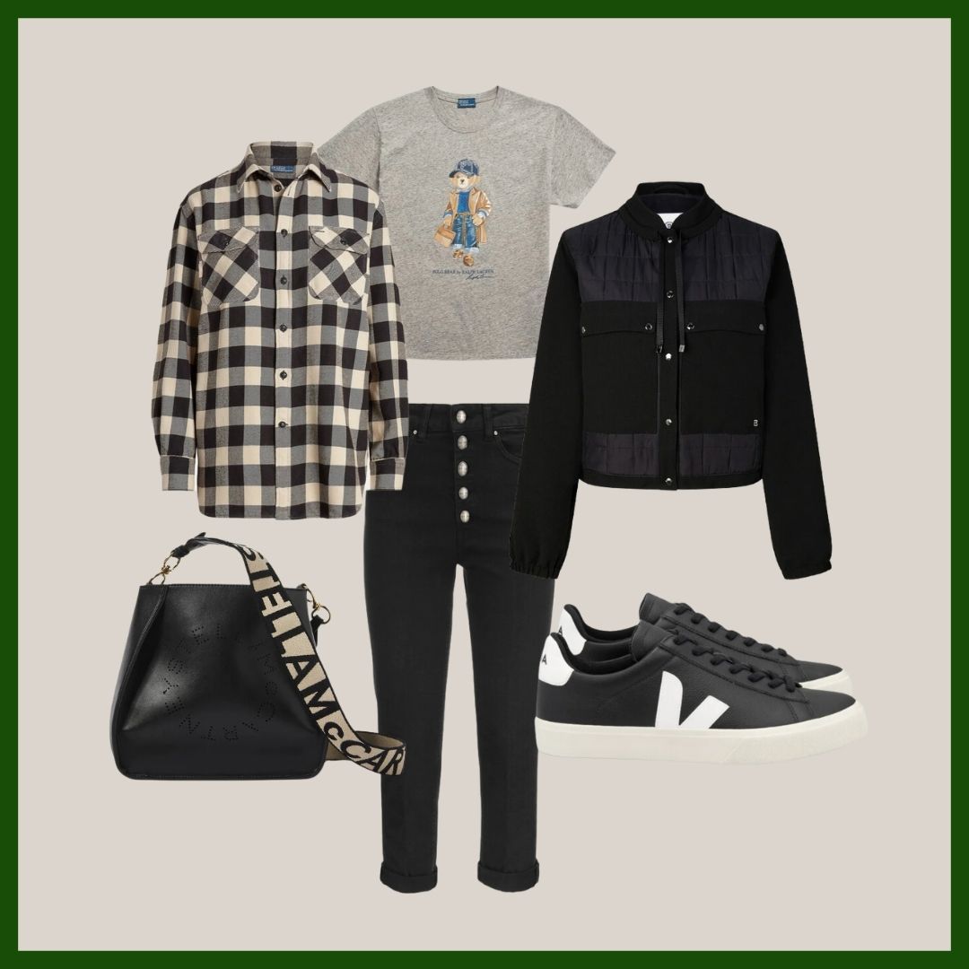 Siyahın asilliği hiçbir renkte yok. Bogner kayak montlarıyla çok iddialı olsada günlük giyim için trendsetter parçalar tasarlamayı asla pas geçmiyor. Bu parçayı Ralph Lauren ekose gömlek, teddy bear t-shirt ve çevre dostu Veja ile tamamladık.