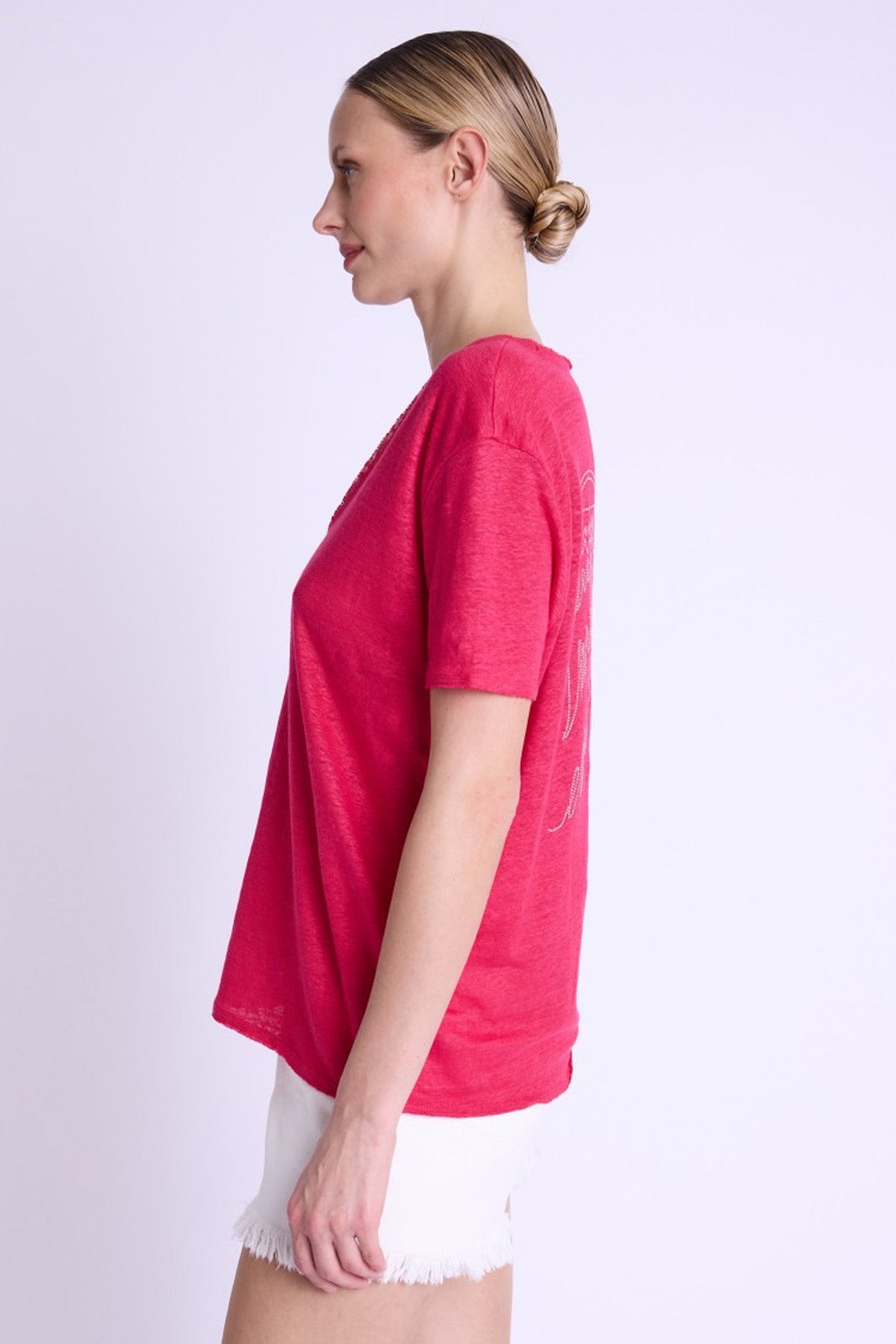Berenice Emmaailes Regular Fit Kanat Desenli Keten T-shirt