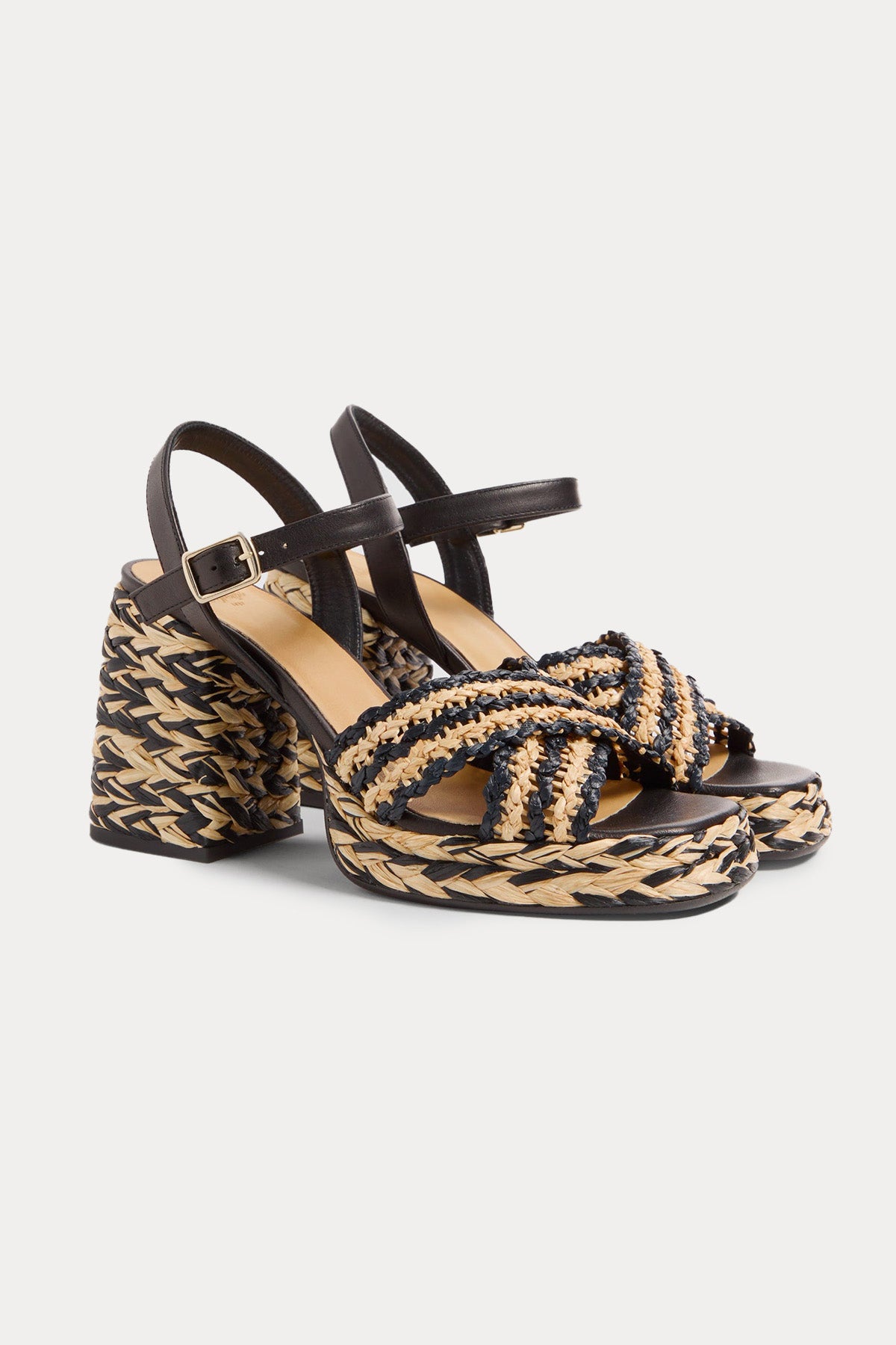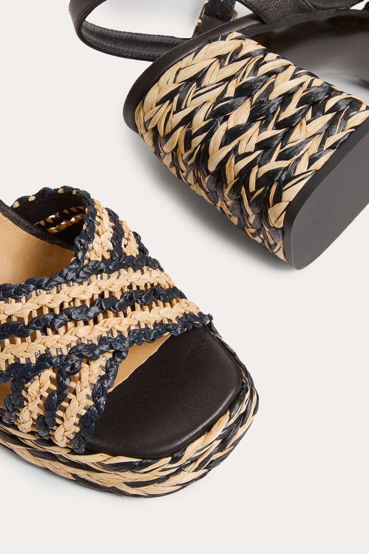 Castaner Vicen Deri Detaylı Topuklu Hasır Örgü Küt Burunlu Sandalet