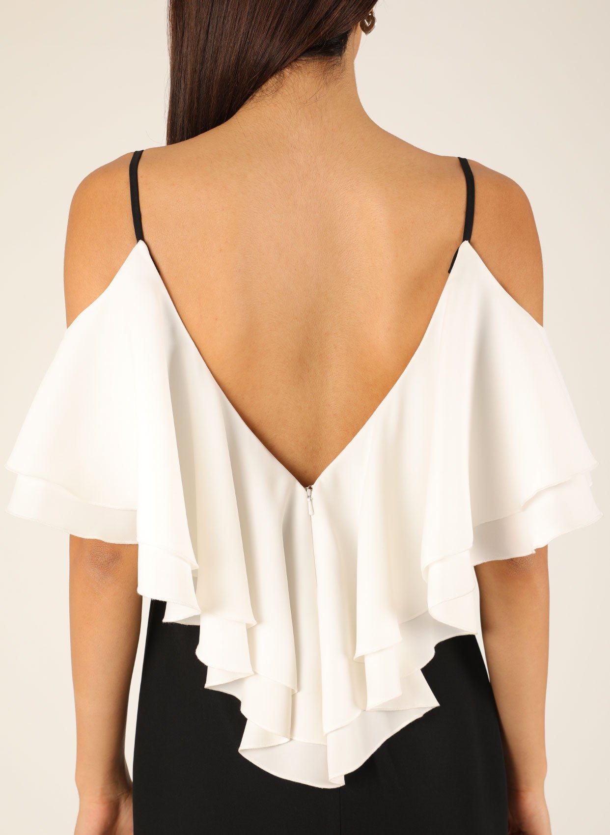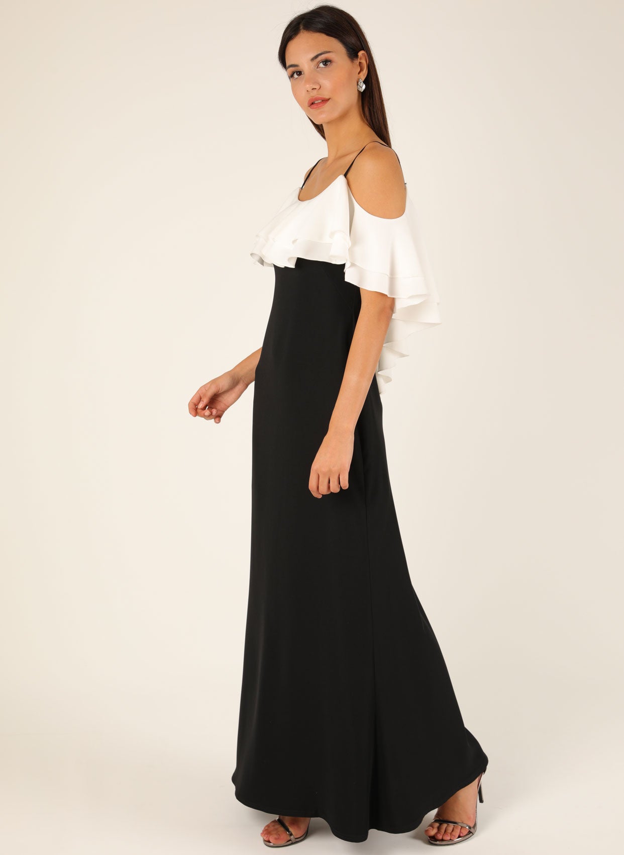 - Omuzlarda beyaz kumaşlar elbiseye bambaşka bir hava katmaktadır.
