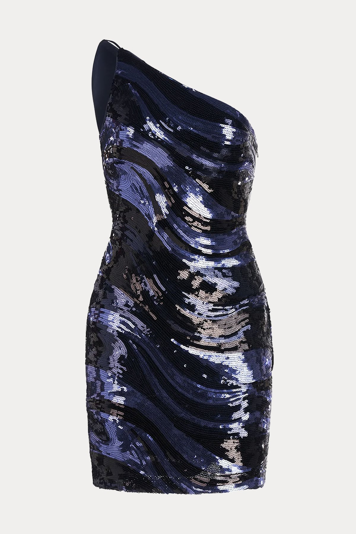 Halston Tek Omuz Payetli Mini Abiye ElbiseHalston Tek Omuz Payetli Mini Abiye Elbise