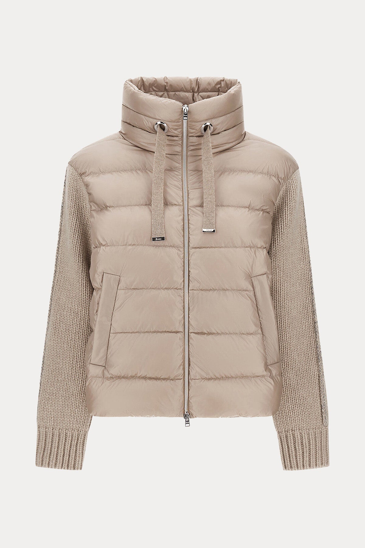 Herno Relaxed Fit Kapüşonlu Puffer Örgü Yün Triko Ceket