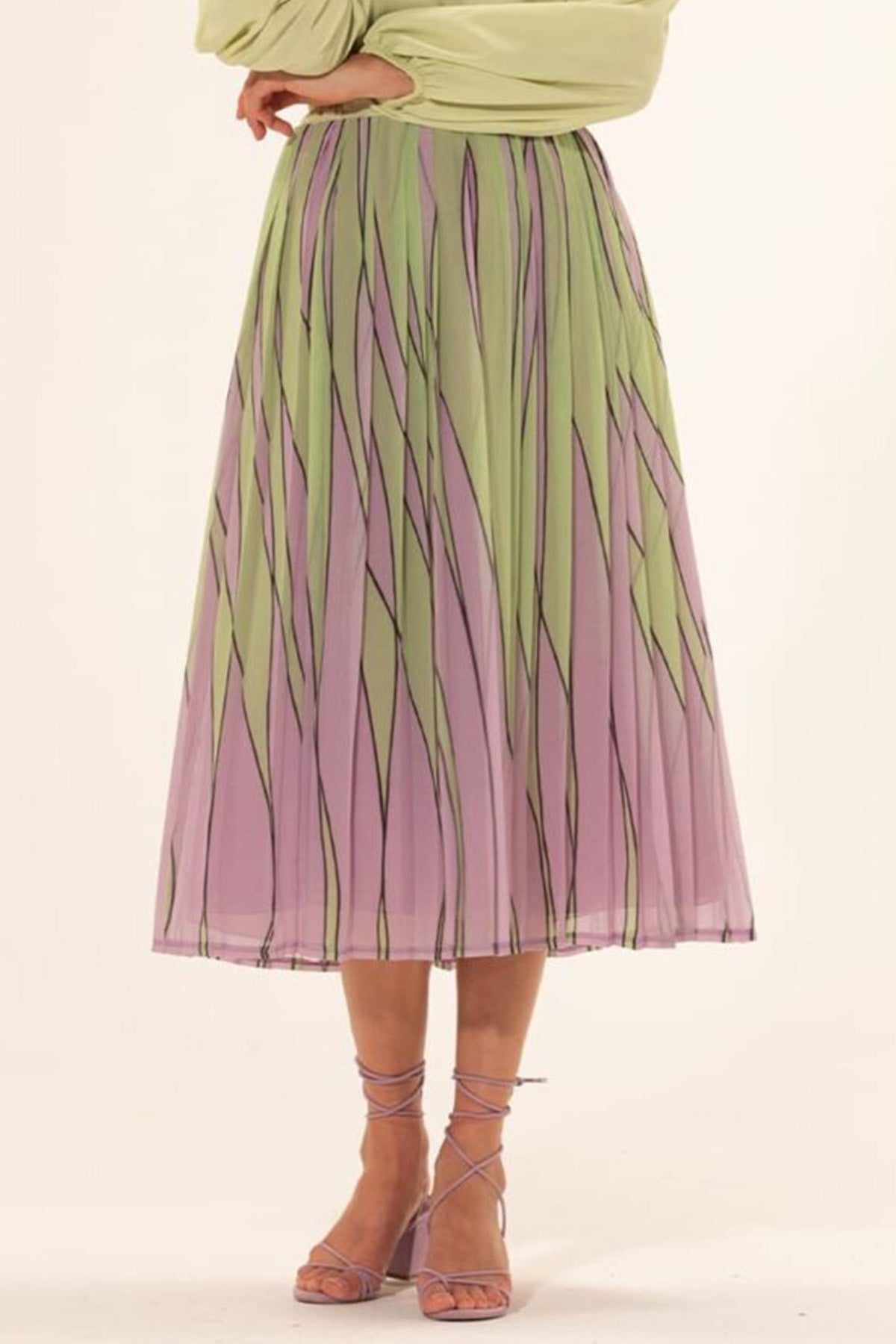 Rene Derhy Yırtmaçlı Desenli Midi EtekRene Derhy Yırtmaçlı Desenli Midi Etek