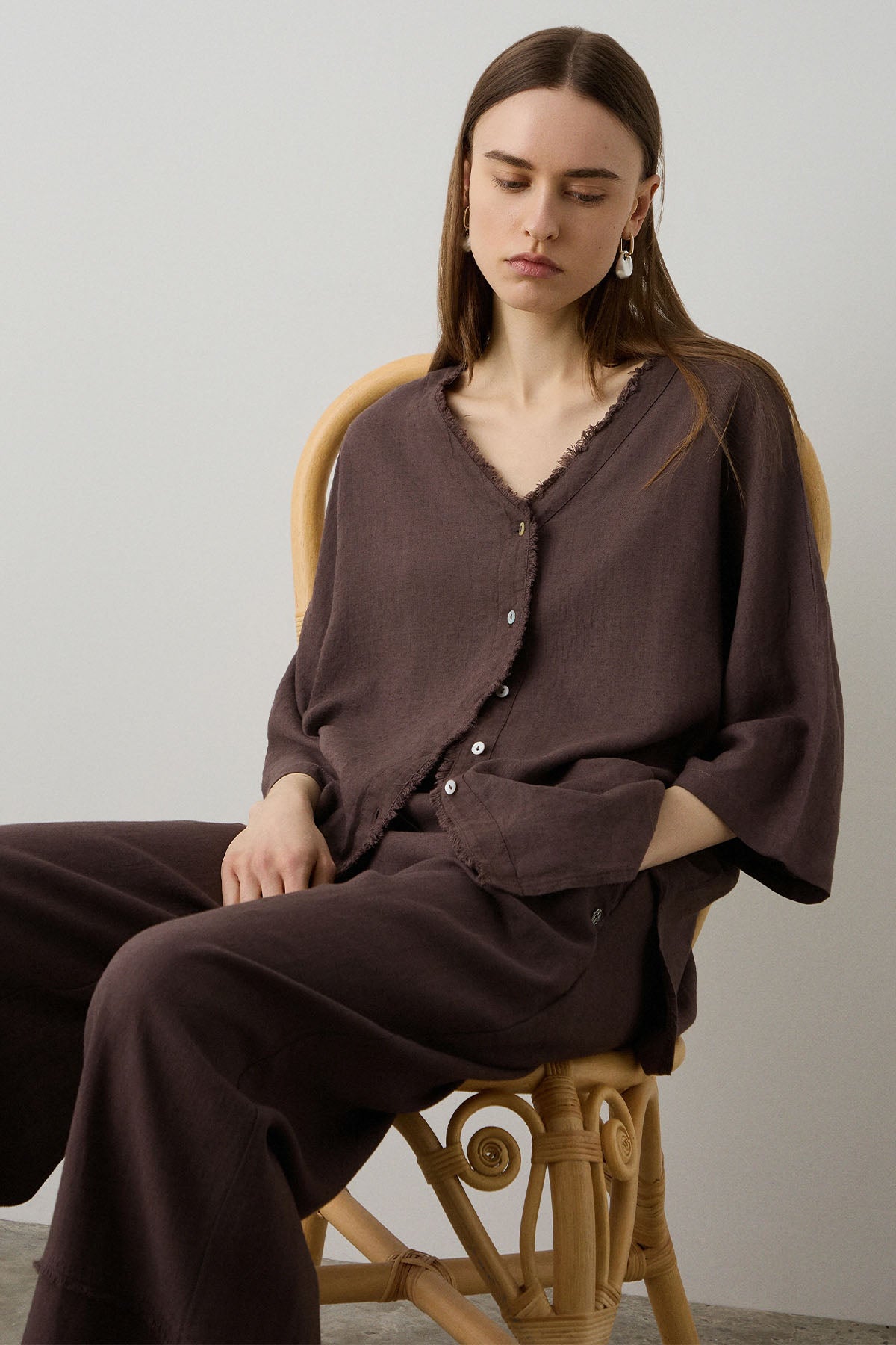 Transit Geniş Kesim Mikro Desenli Keten Gömlek