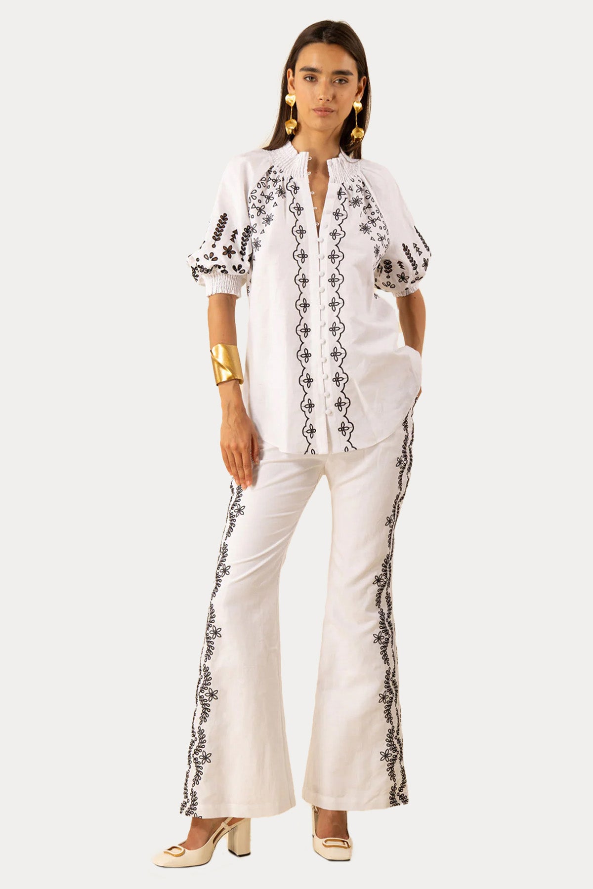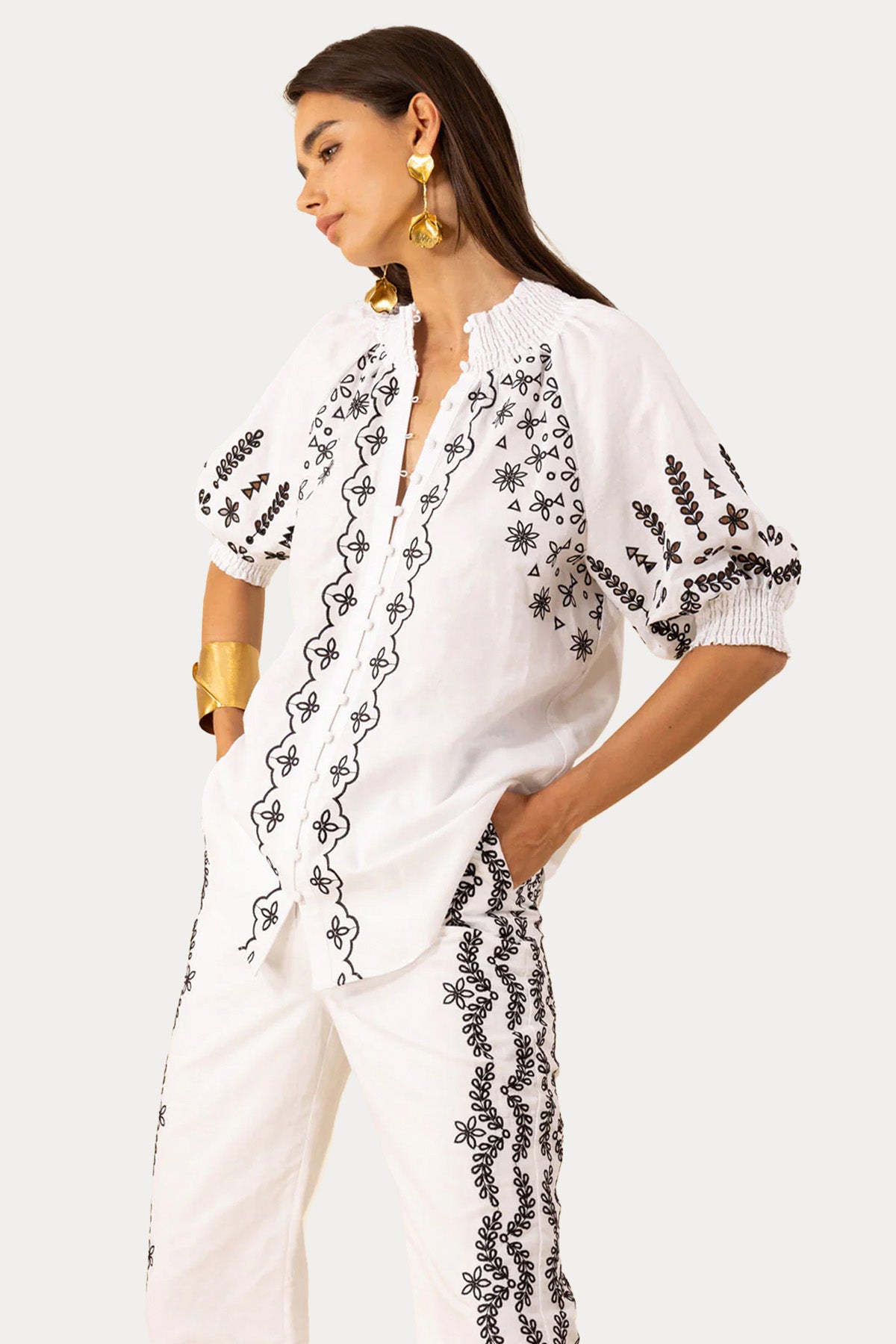 Zadig & Voltaire Relaxed Fit Dantel Nakış Desenli Keten Gömlek