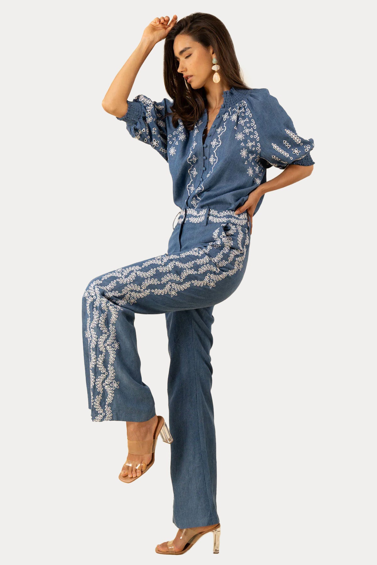 Liu Jo Relaxed Fit Dantel Nakışlı Denim Gömlek