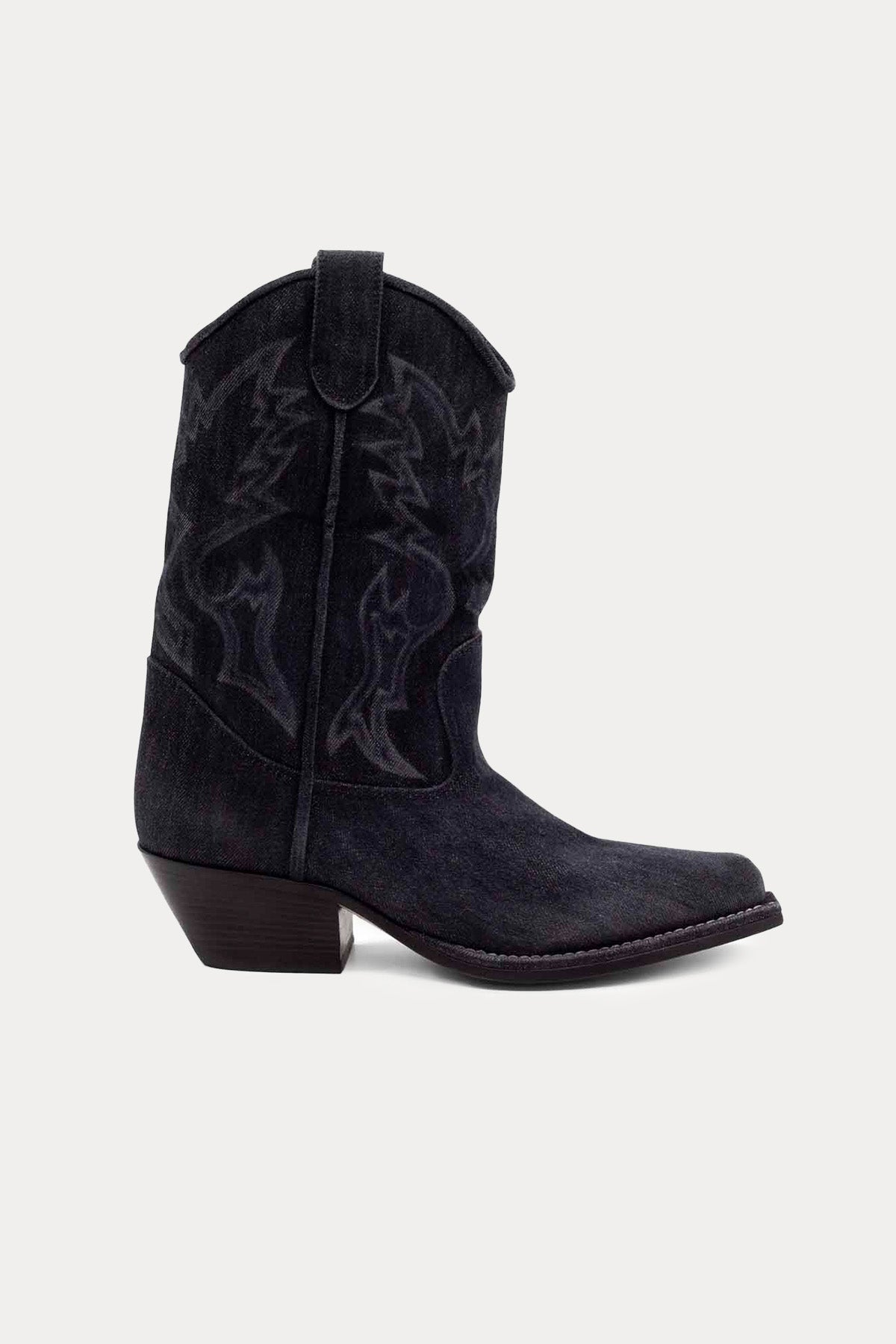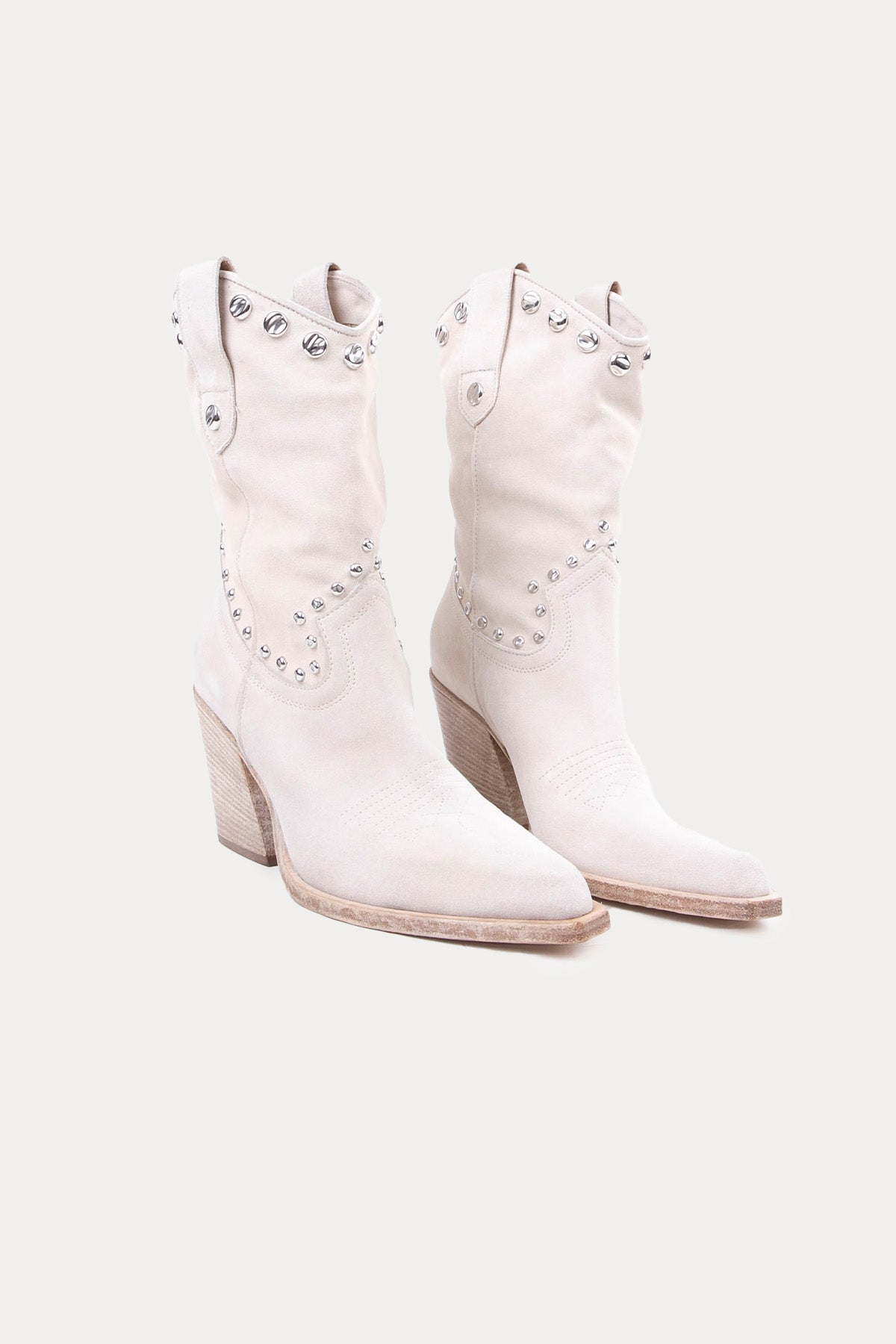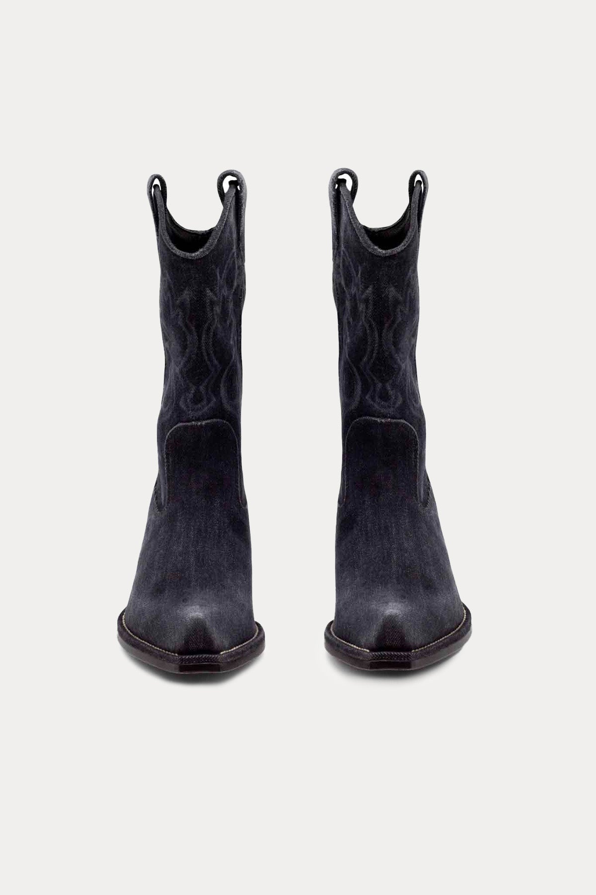 Vic Matie Nubuk Deri Sivri Küt Burunlu Western Çizme