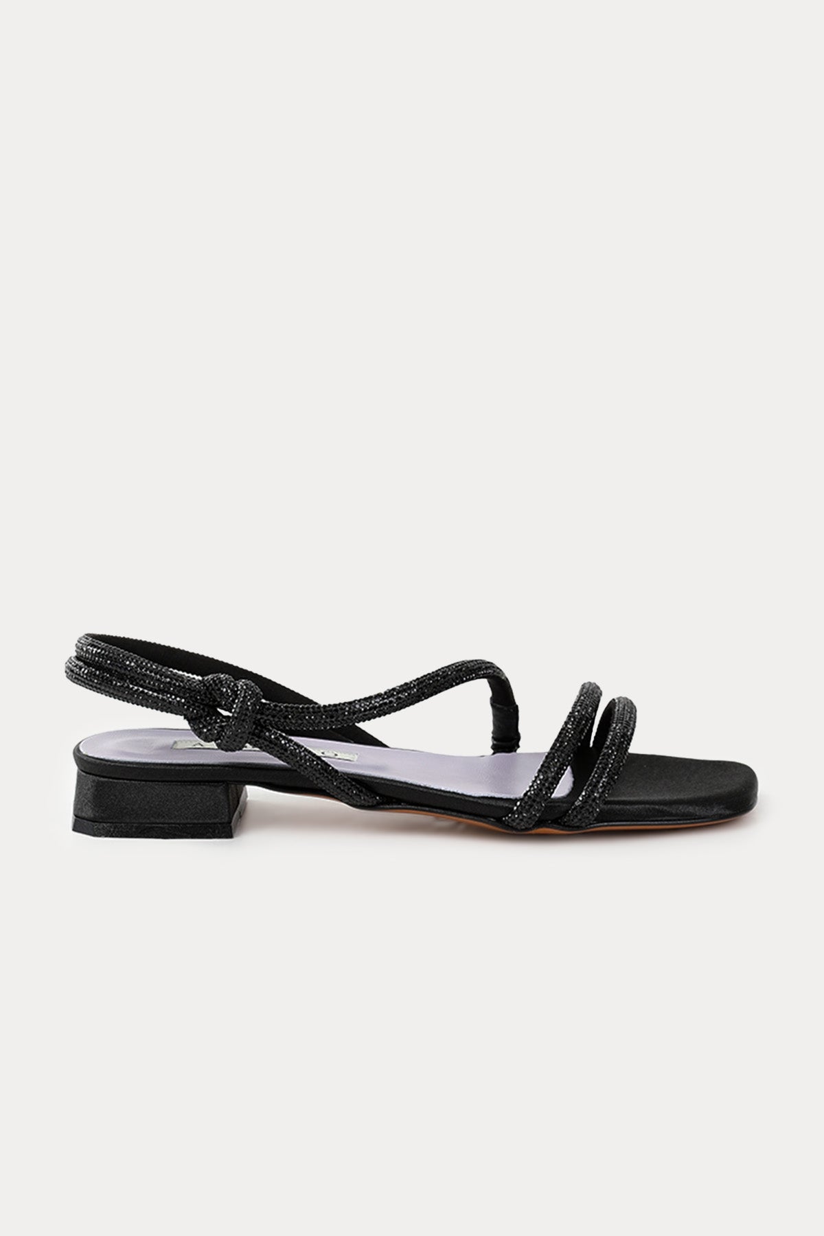 Stuart Weitzman Küt Burunlu Örgü Deri Sandalet