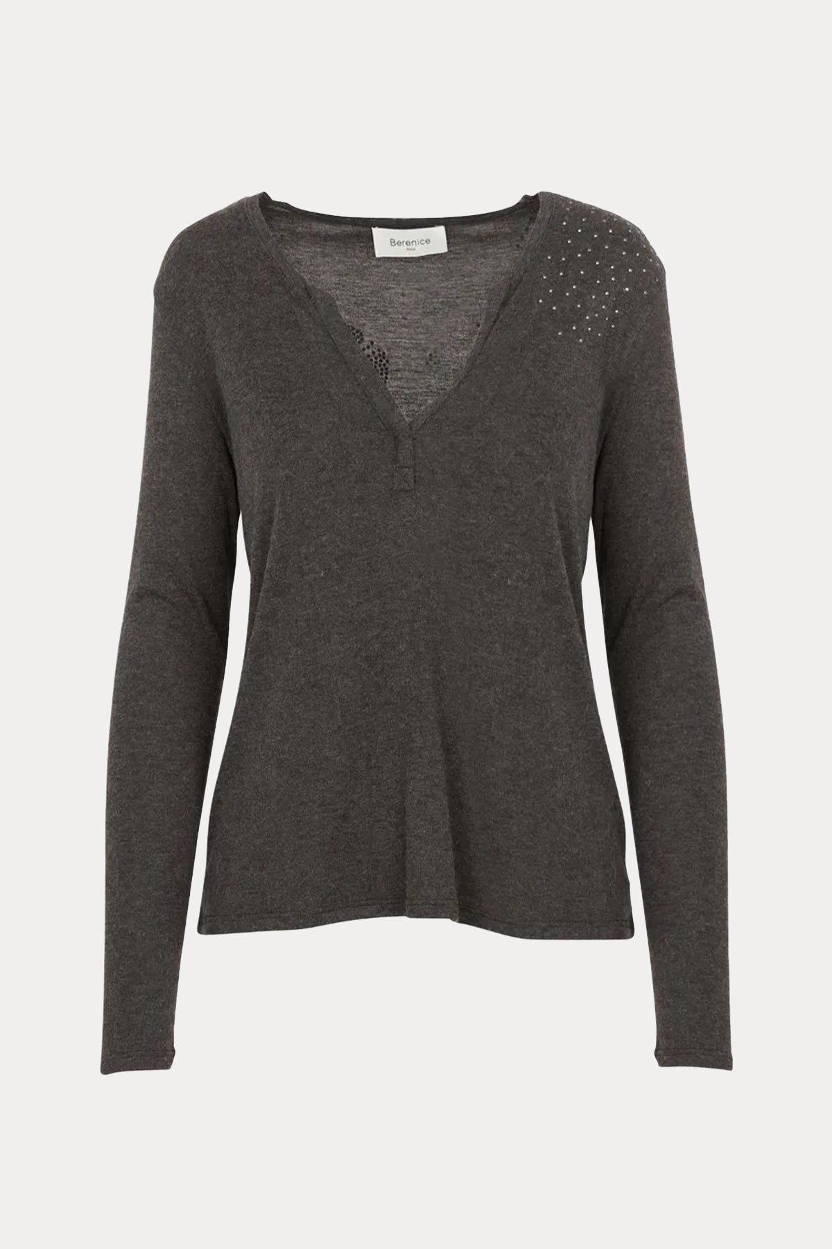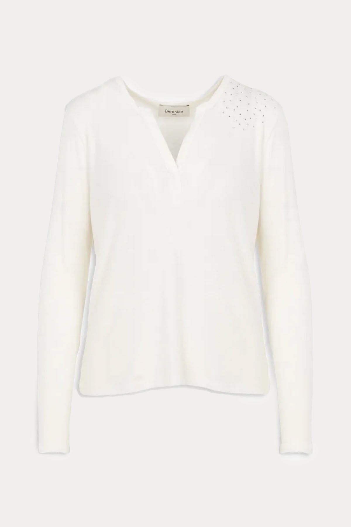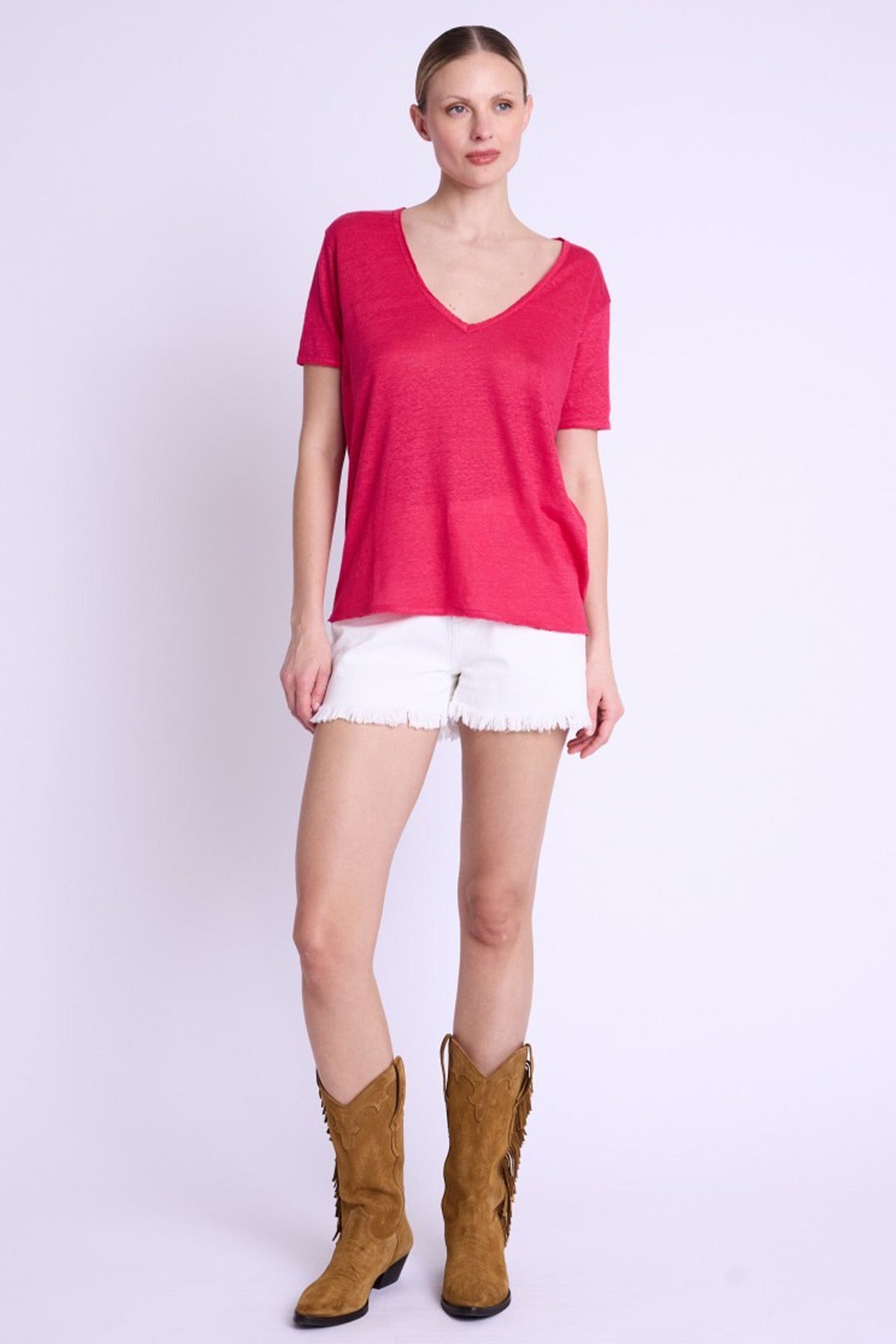 Berenice Tevaailes Kanat Desenli V Yaka Keten T-shirt