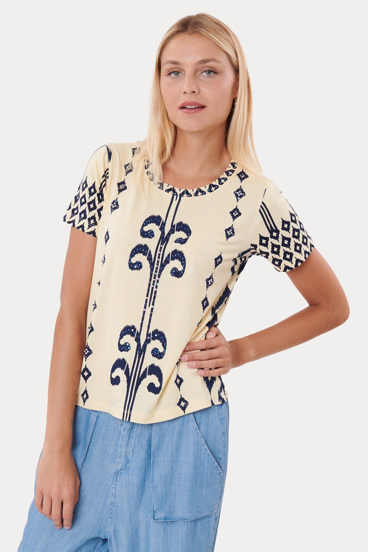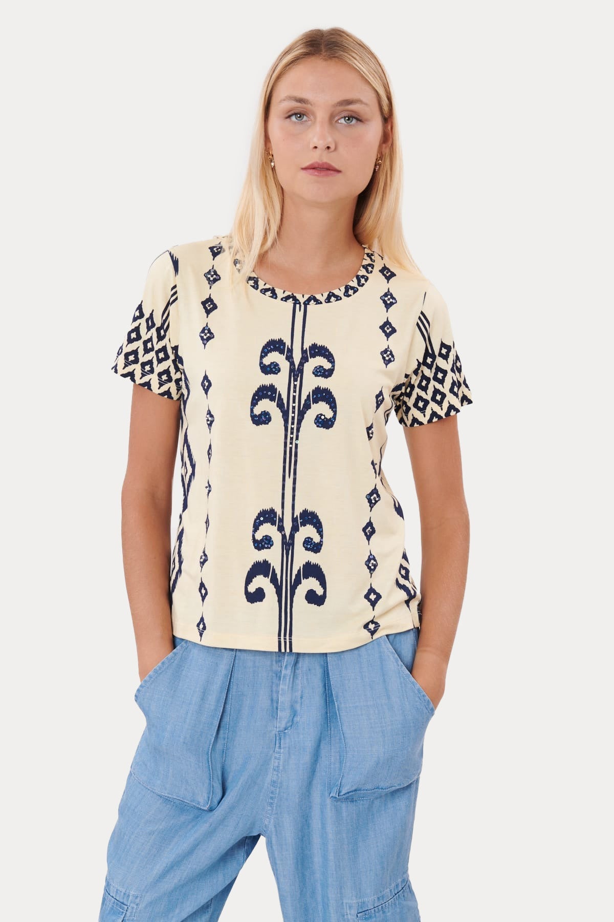 Rene Derhy Yuvarlak Yaka Etnik Desenli T-shirt