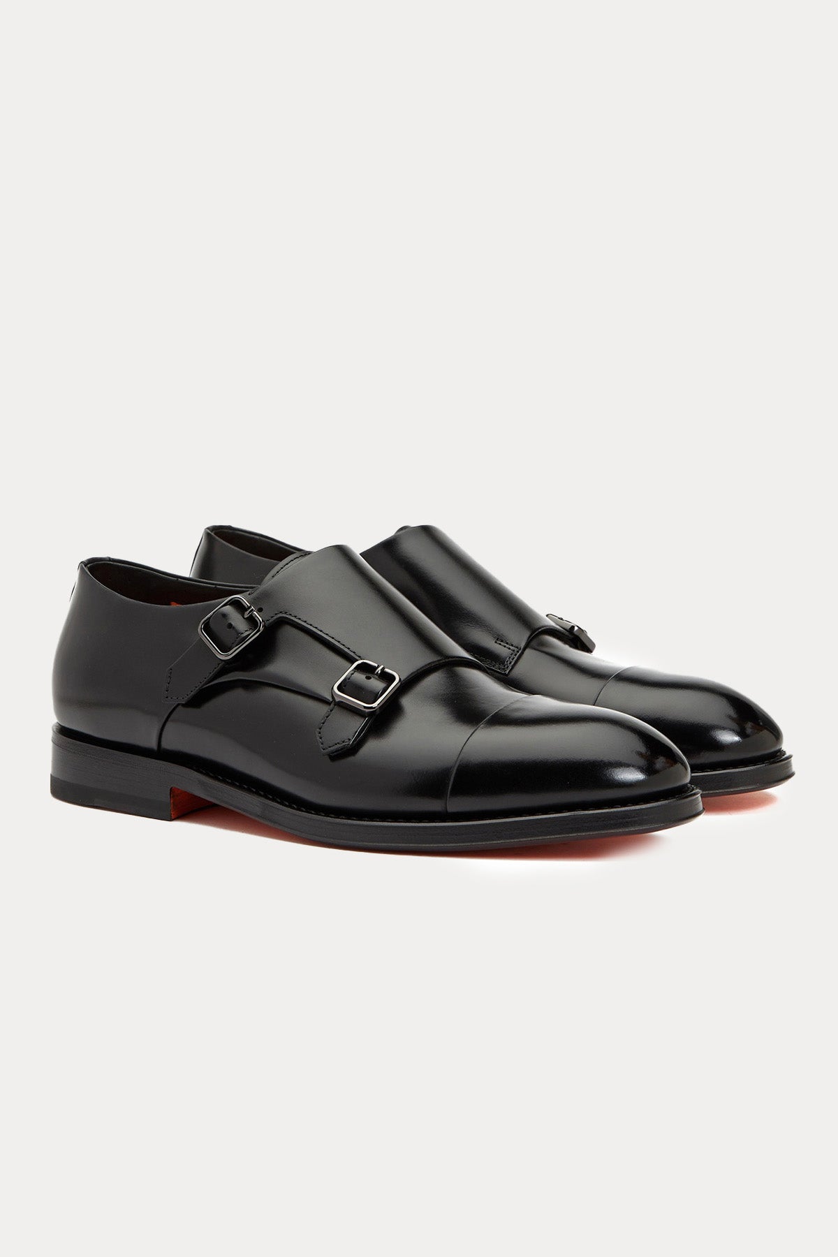 Santoni Çift Tokalı Deri Loafer Ayakkabı