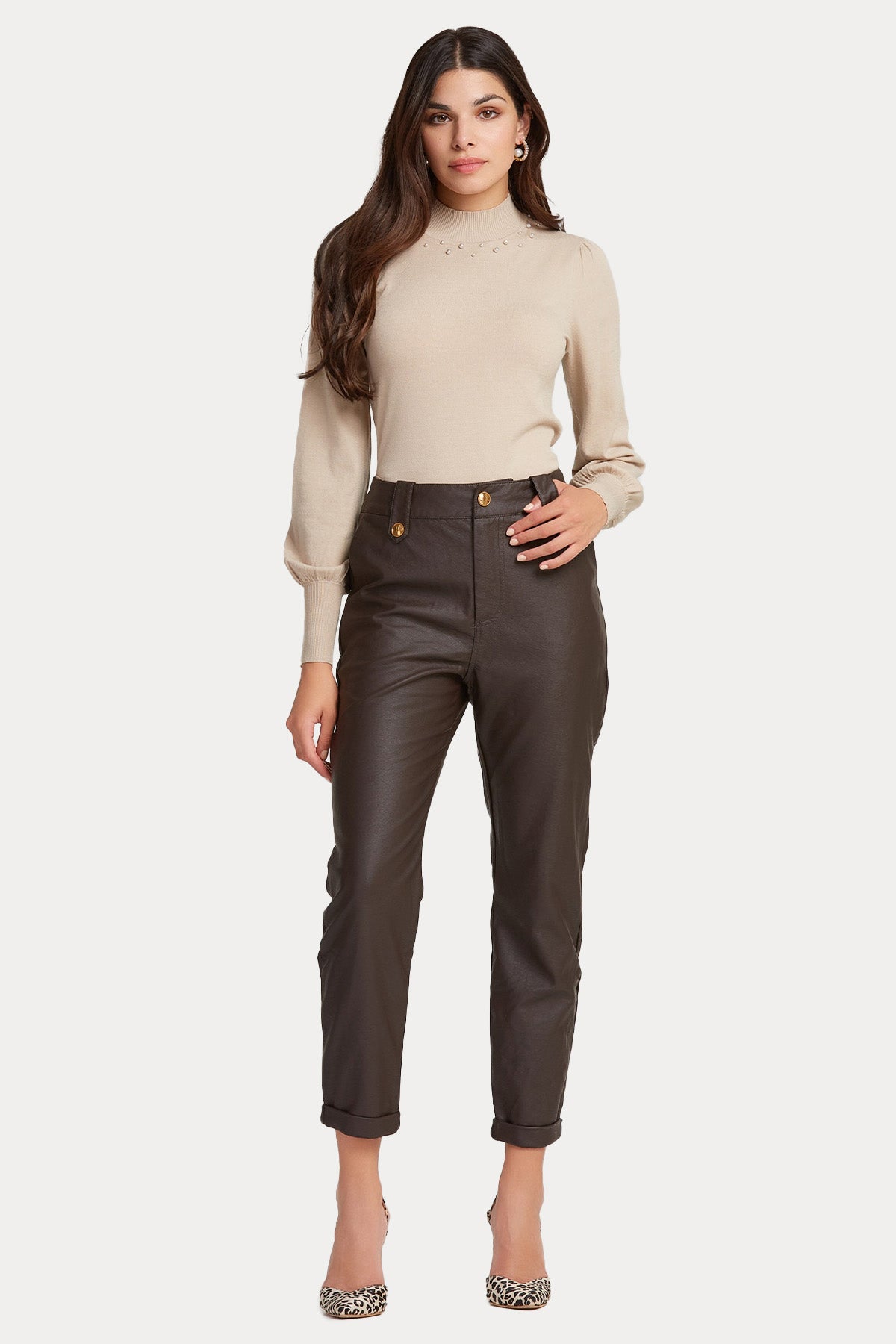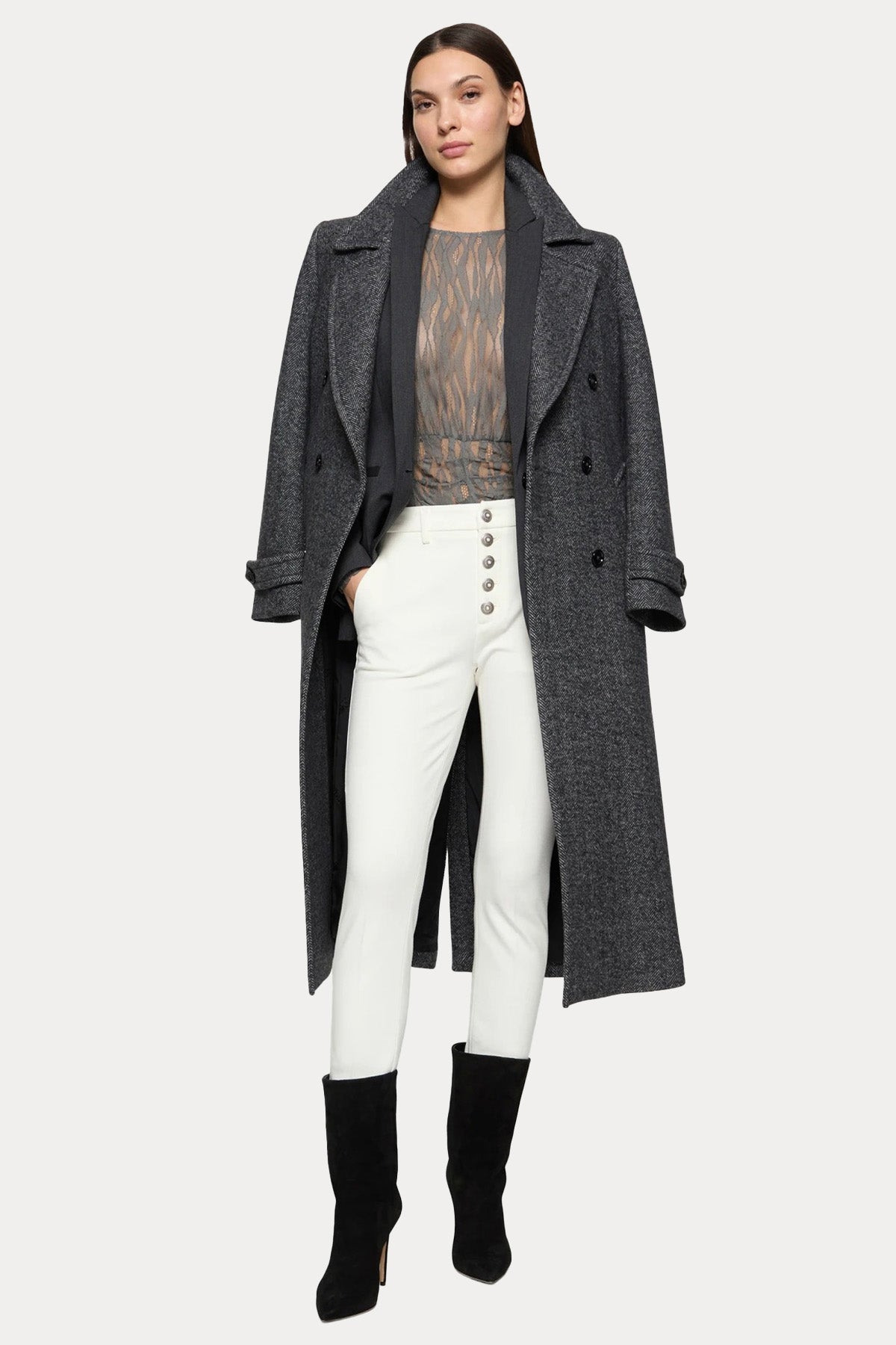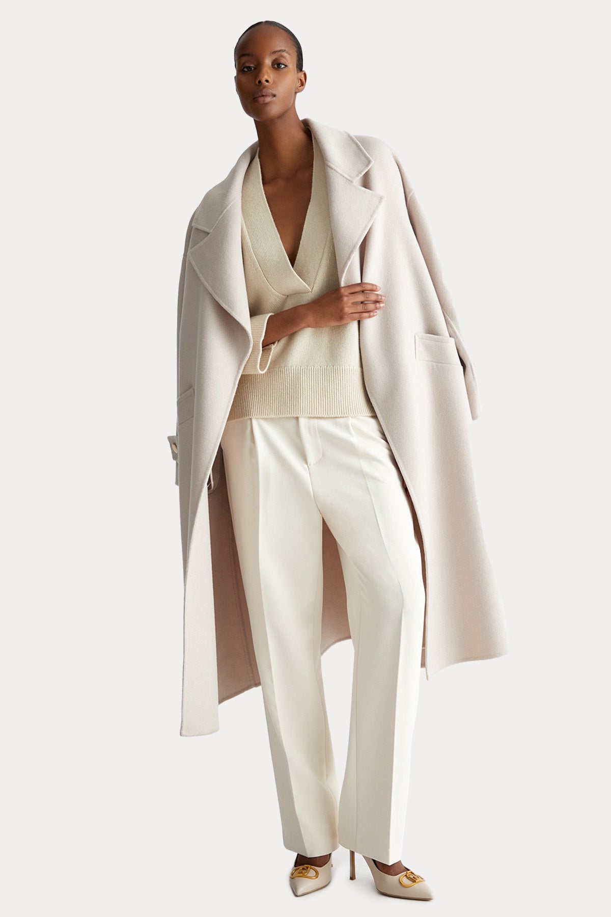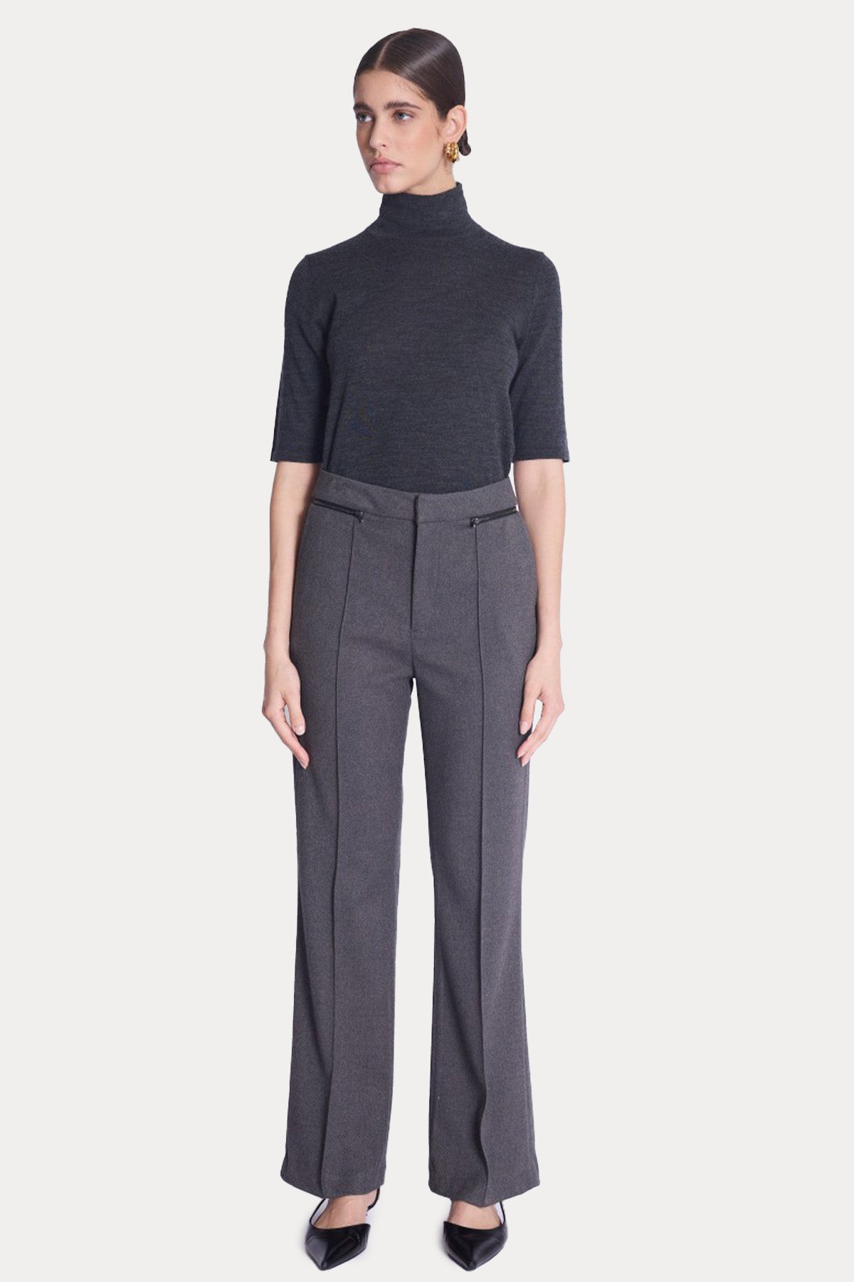 Semicouture Regular Fit Yüksek Bel Tek Pile Flanel Yün Pantolon