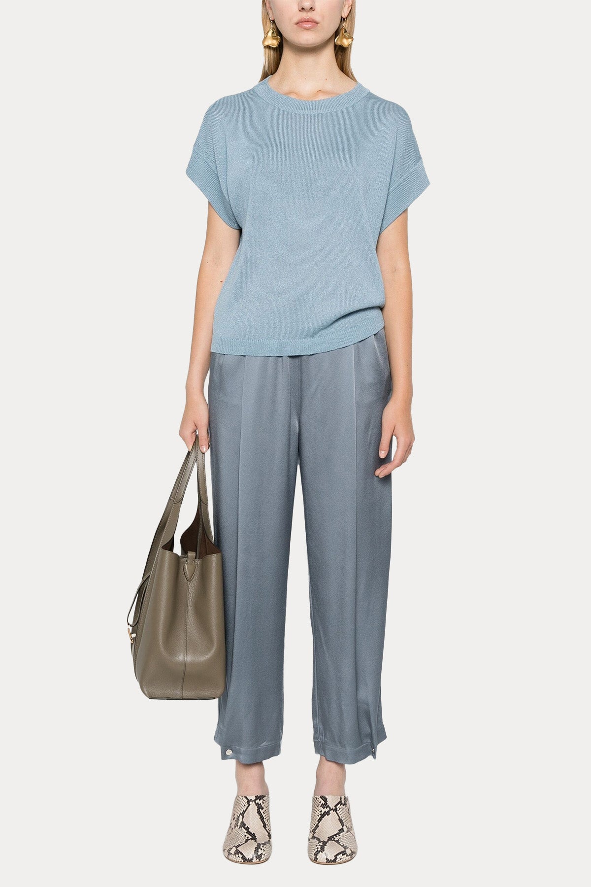 Semicouture Beli Lastikli Crop Paça Flanel Yün Pantolon