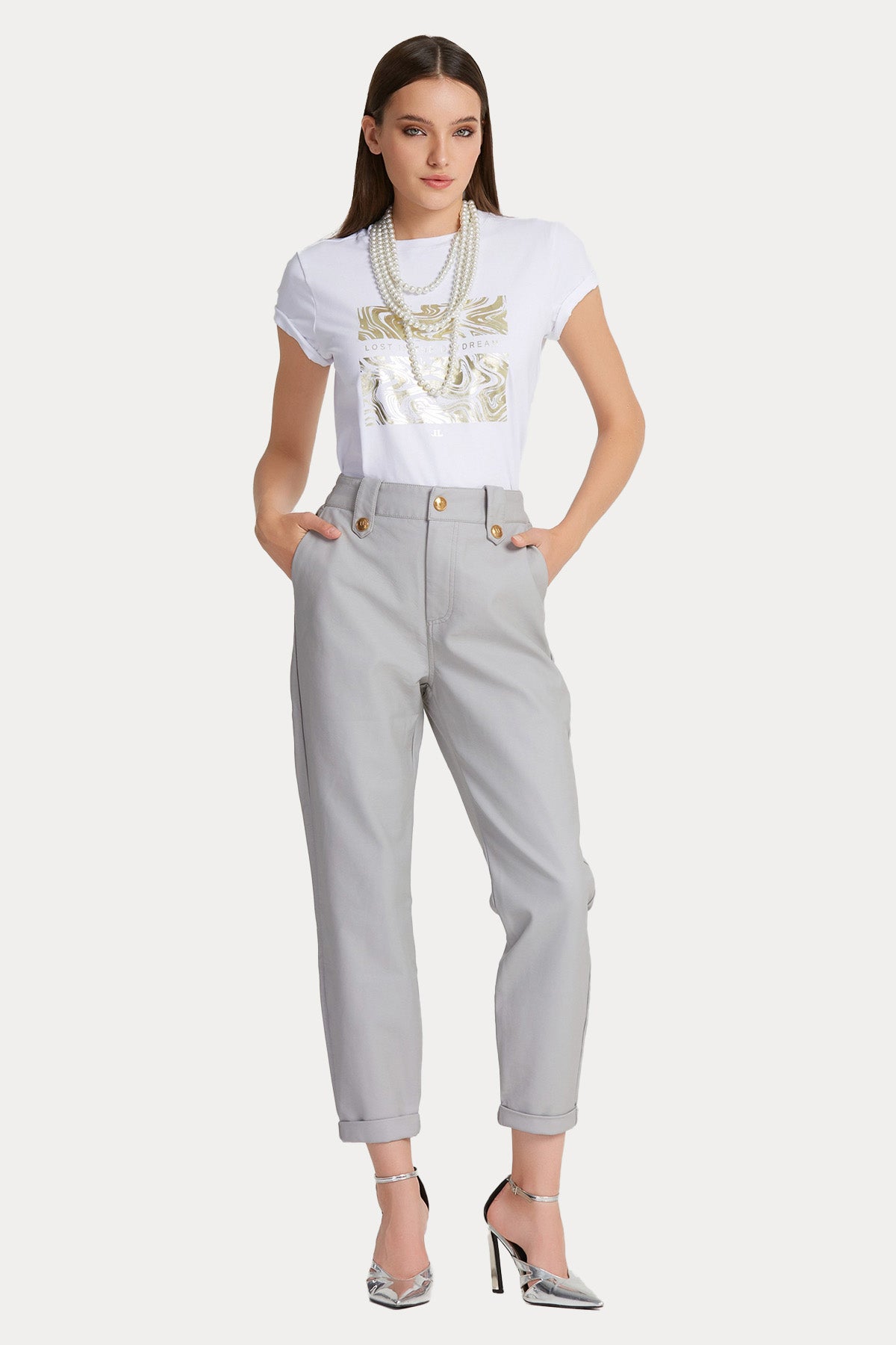 Liu Jo Regular Fit Yüksek Bel Yandan Cepli Buklet Pantolon