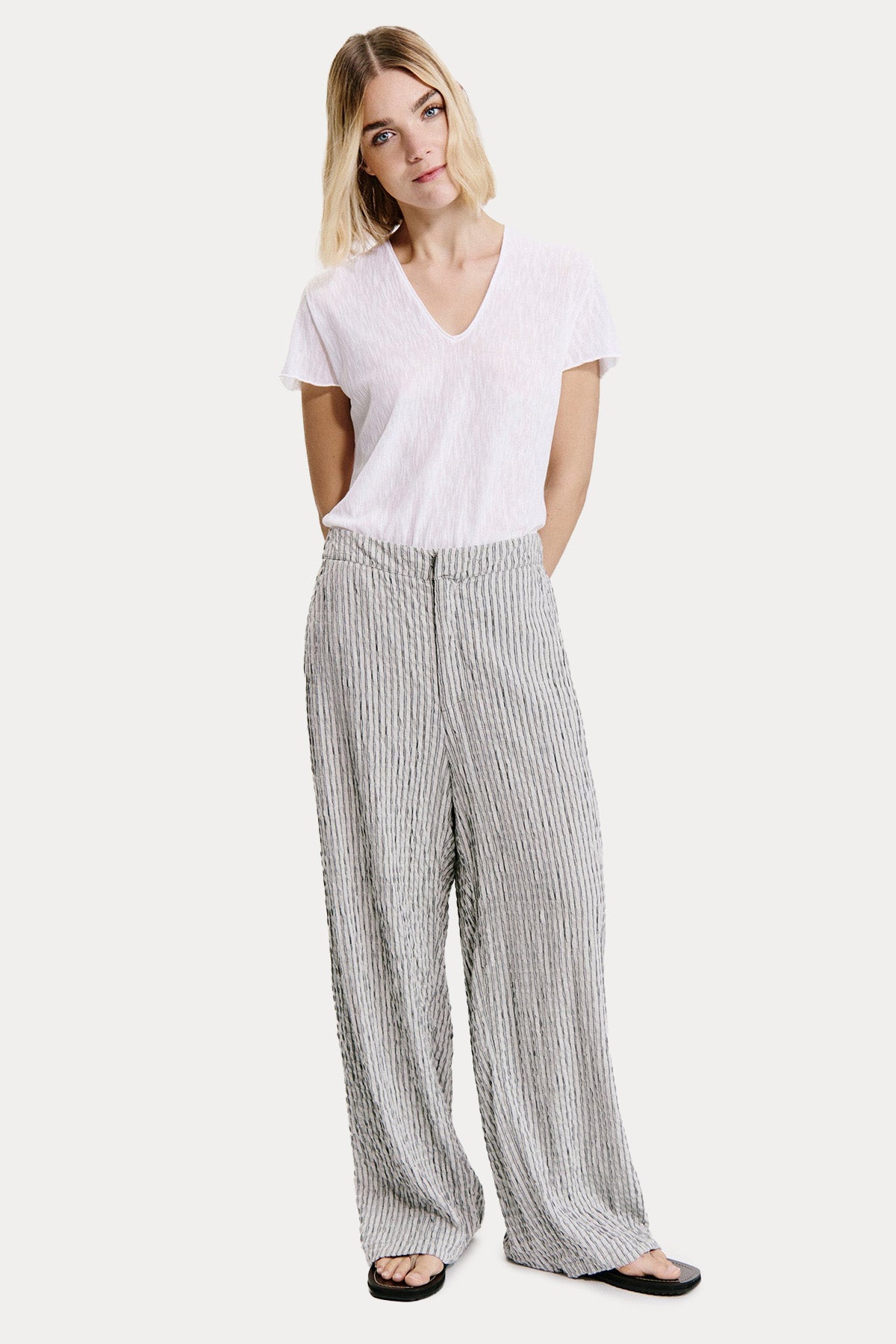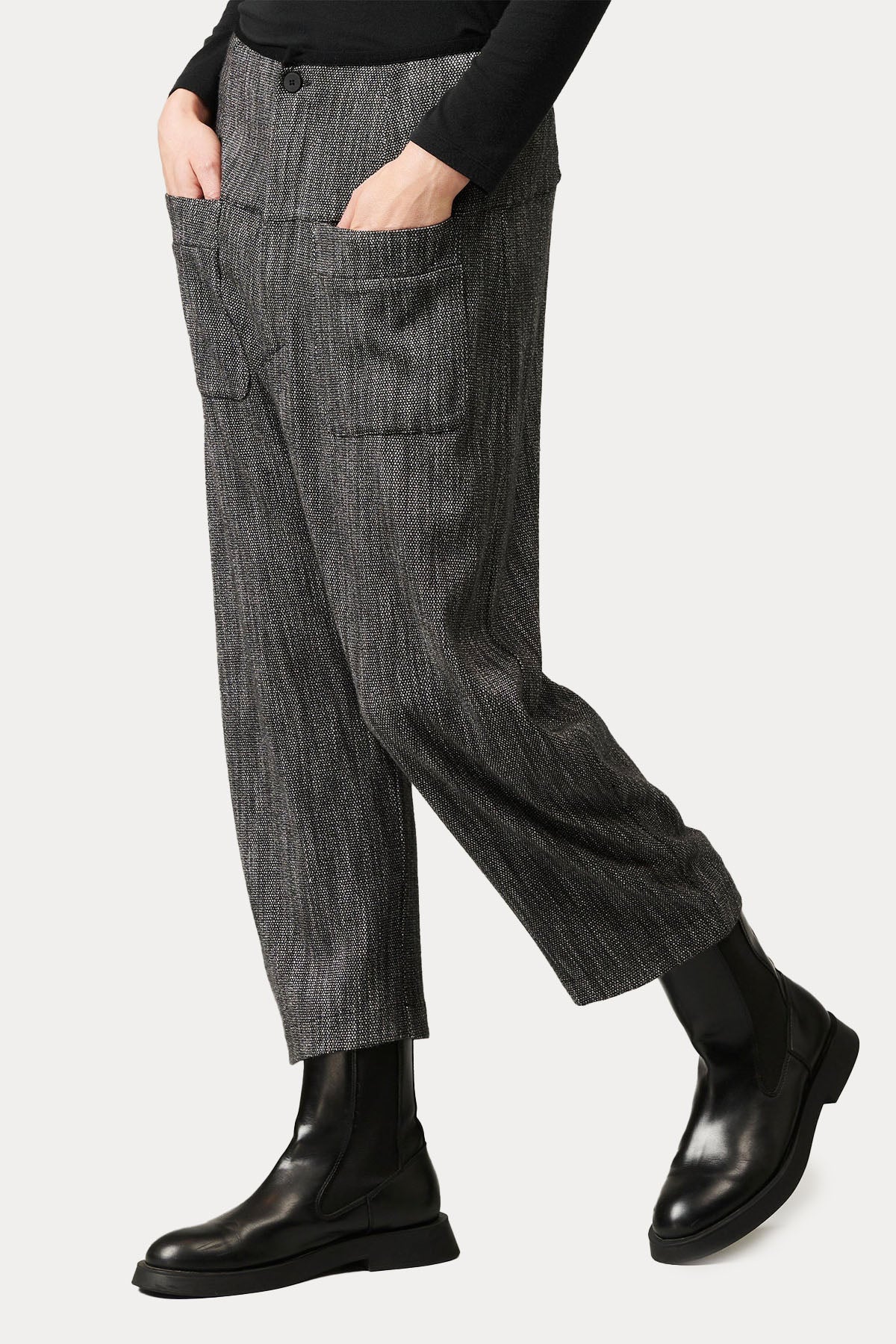Transit Relaxed Fit Balıksırtı Desenli Keten Örgü Yün Pantolon