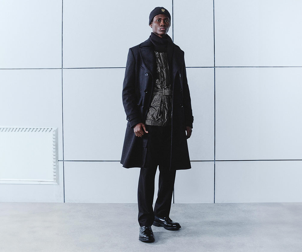 Belstaff Milford Geniş Kesim Ekose Desenli Yün Kaban