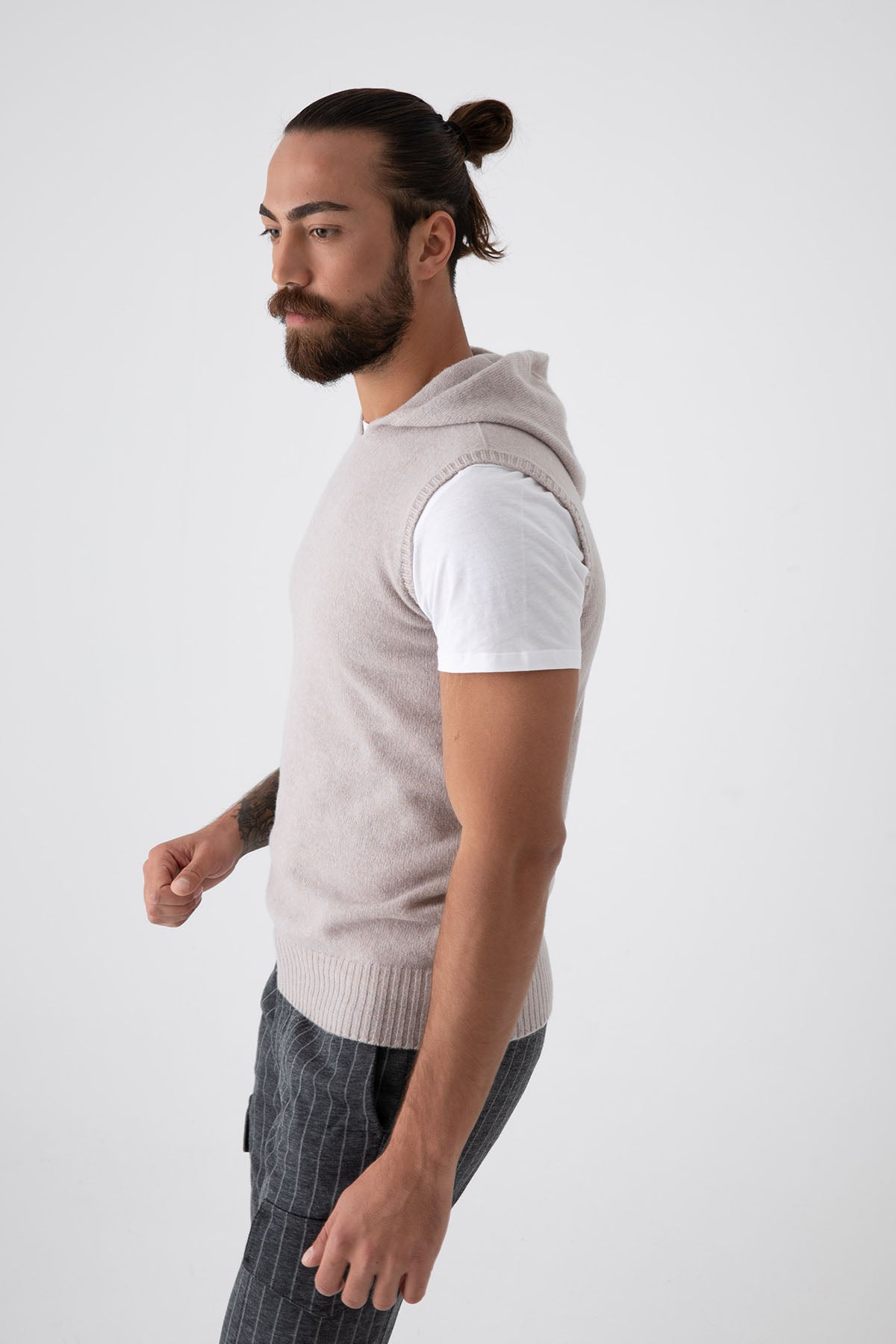 Fradi Kapüşonlu Kolsuz Yün Triko