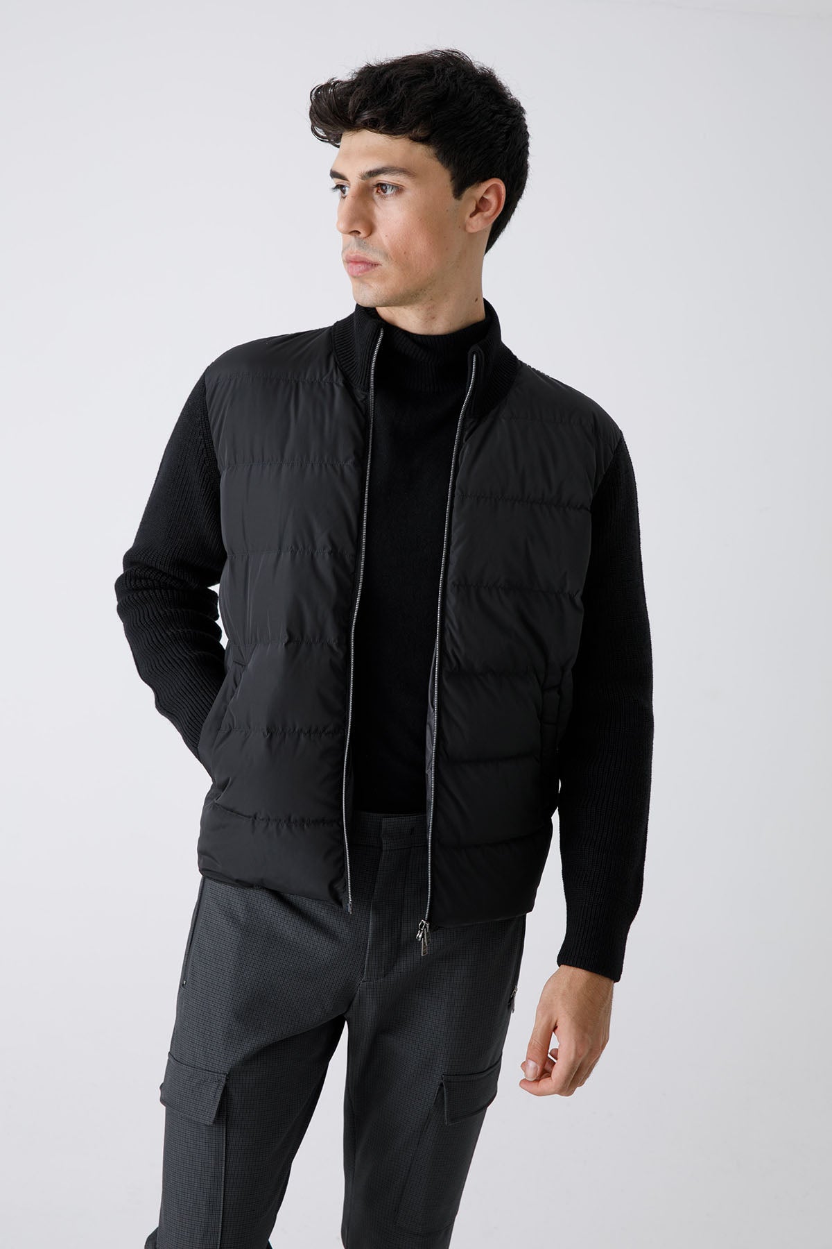 - Örgü triko yaka, kollar ve sırt kısmı.