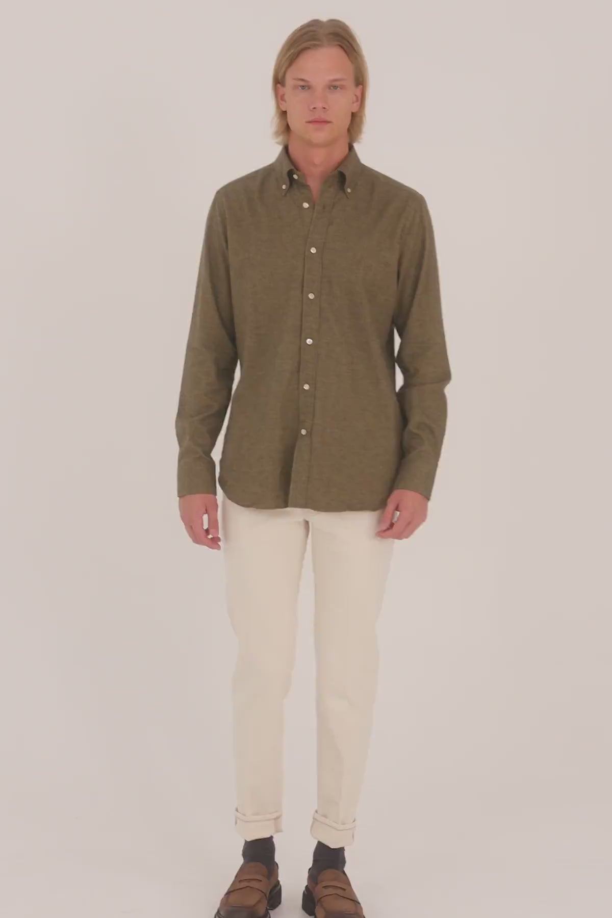 - Düğmeli klasik yaka, uzun kollu gömlek.