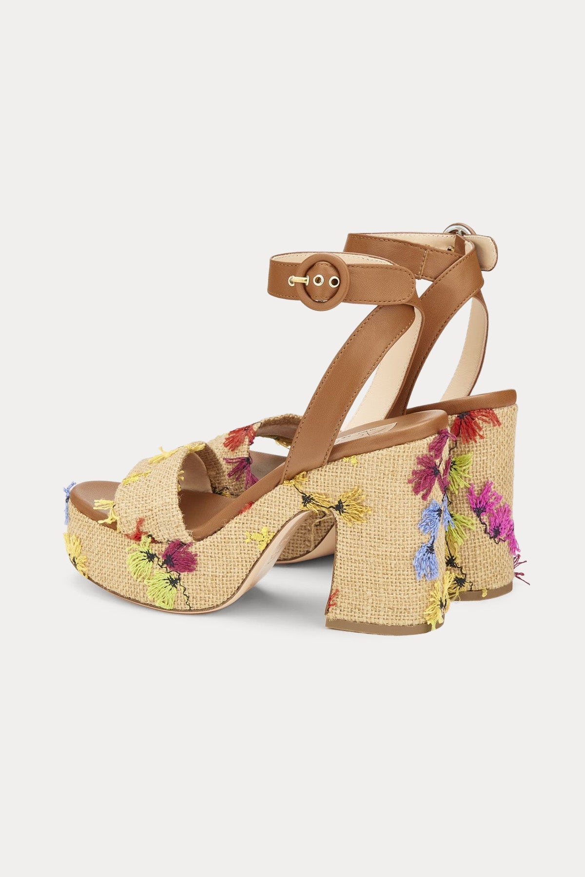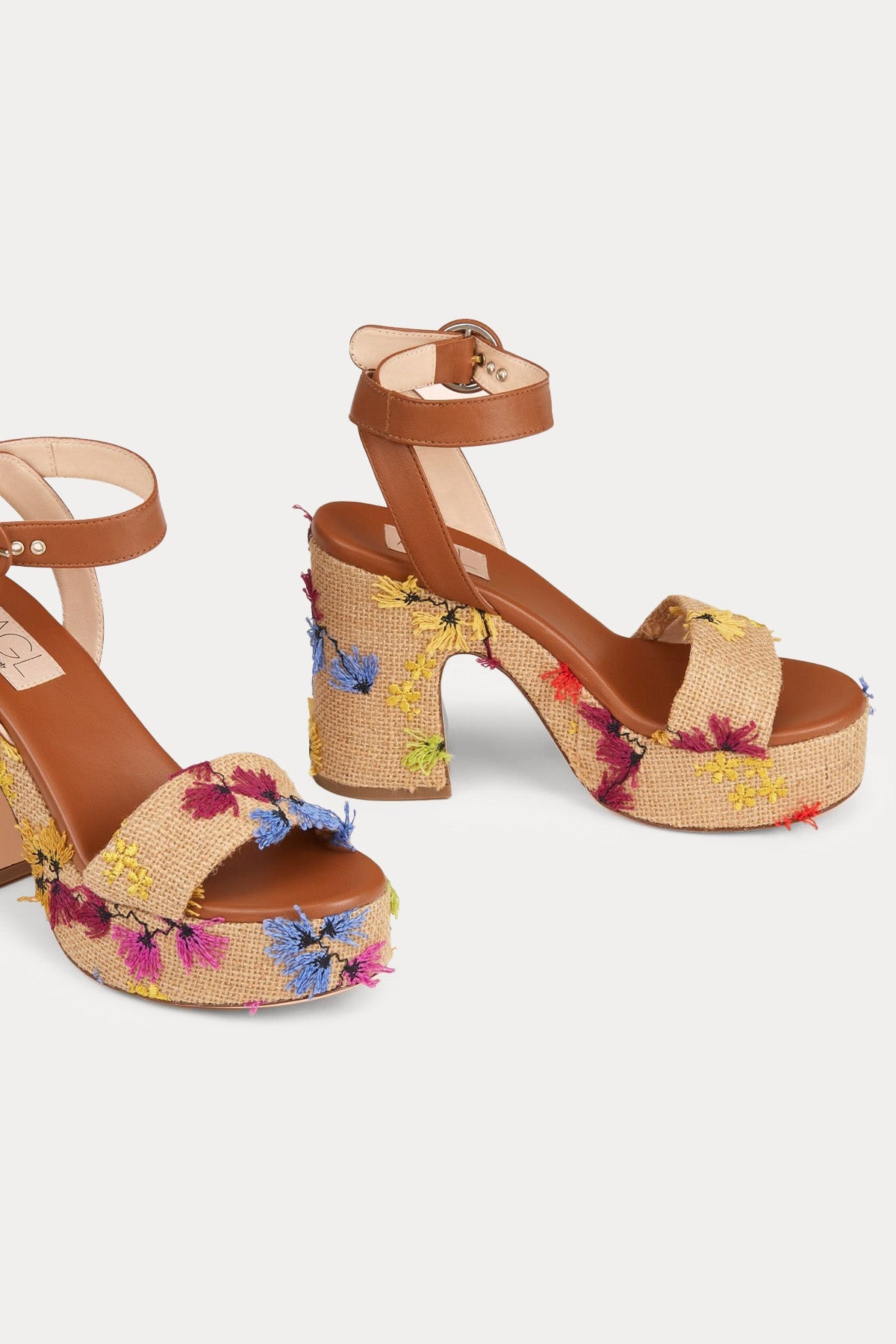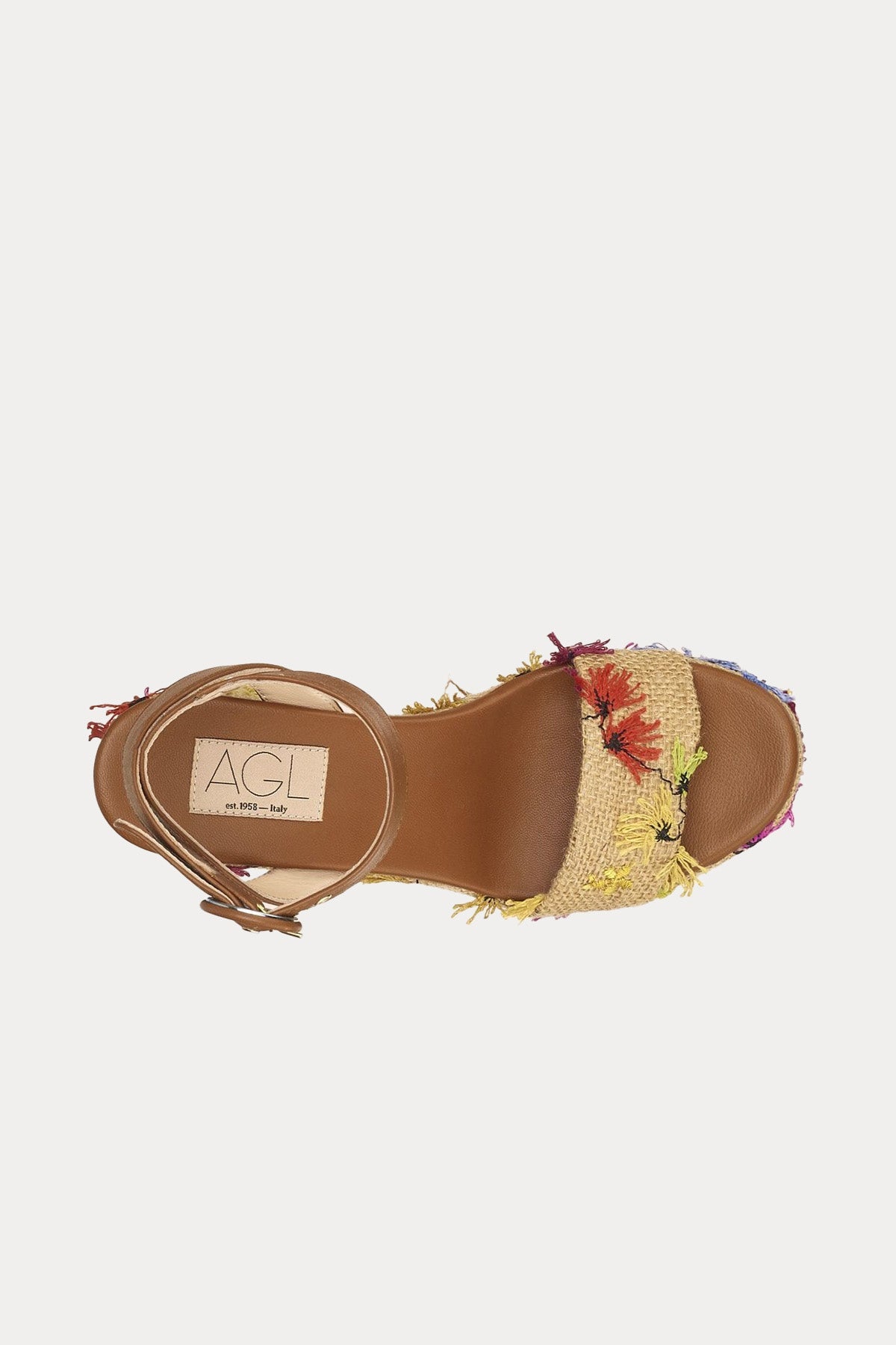 - Ayak üst ve taban çevresinde rafya örgü kumaş ve üzerinde nakış çiçekler.