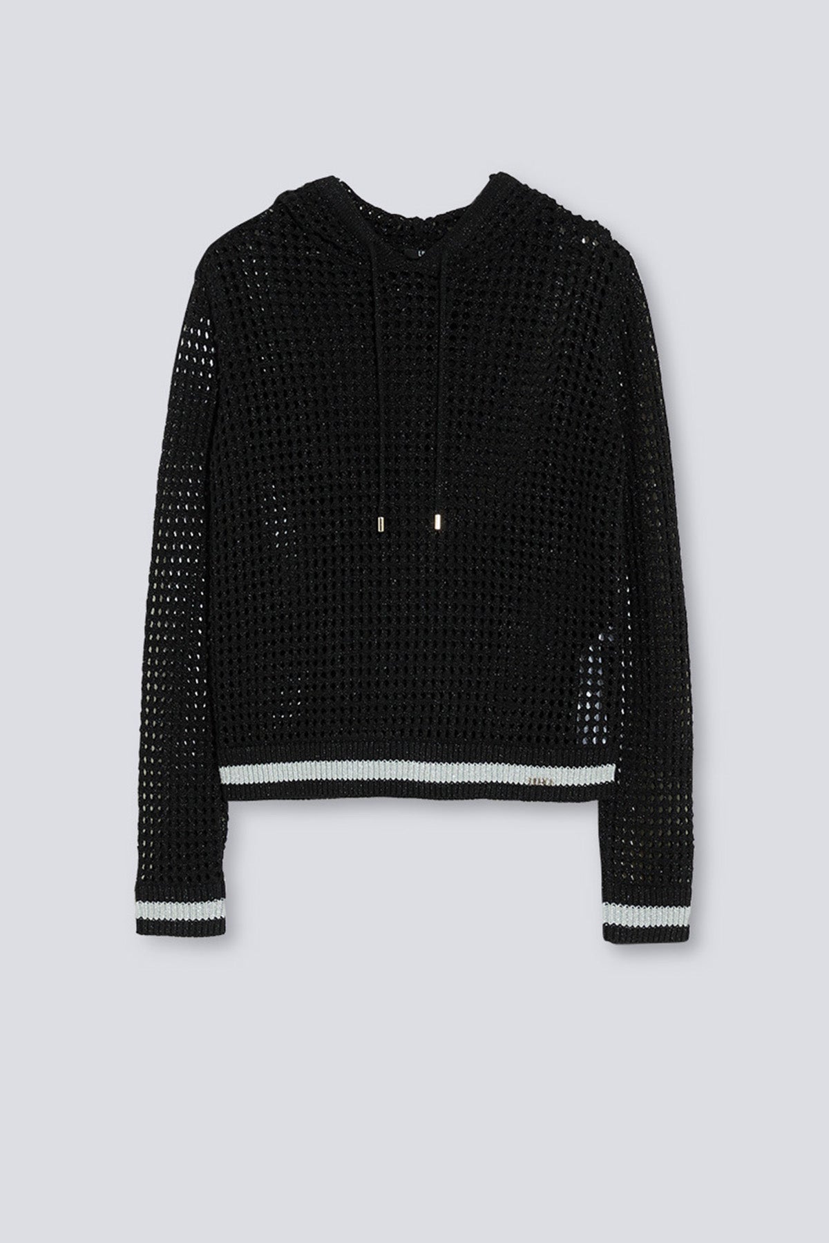 - İp bağlamalı, büzgülü sabit kapüşon.