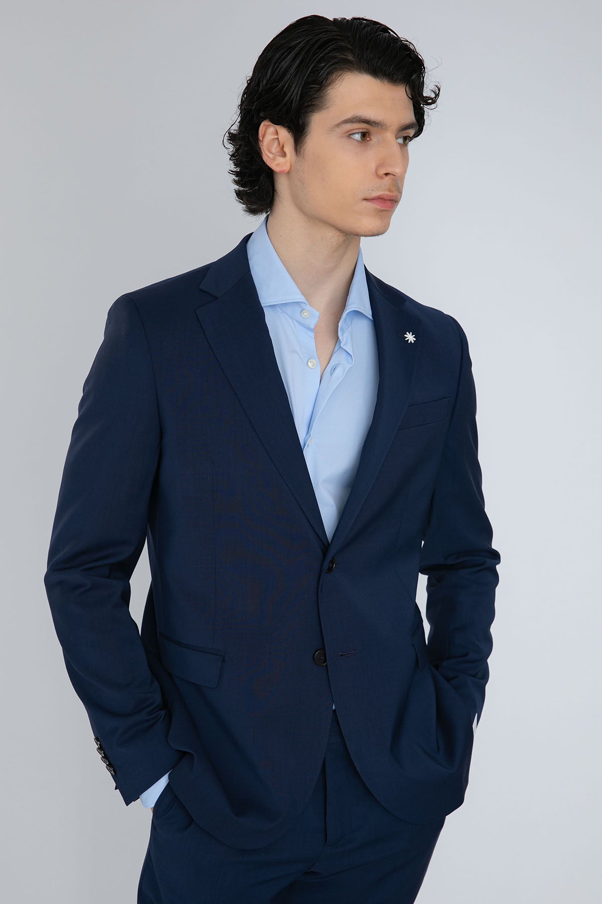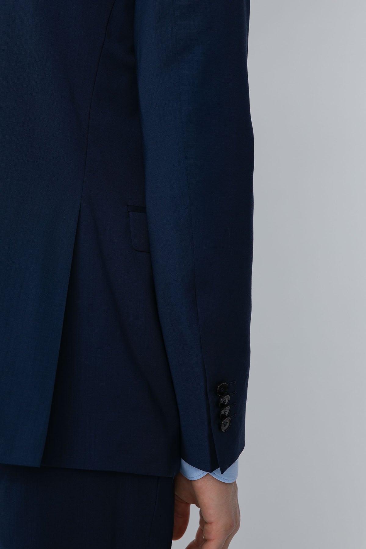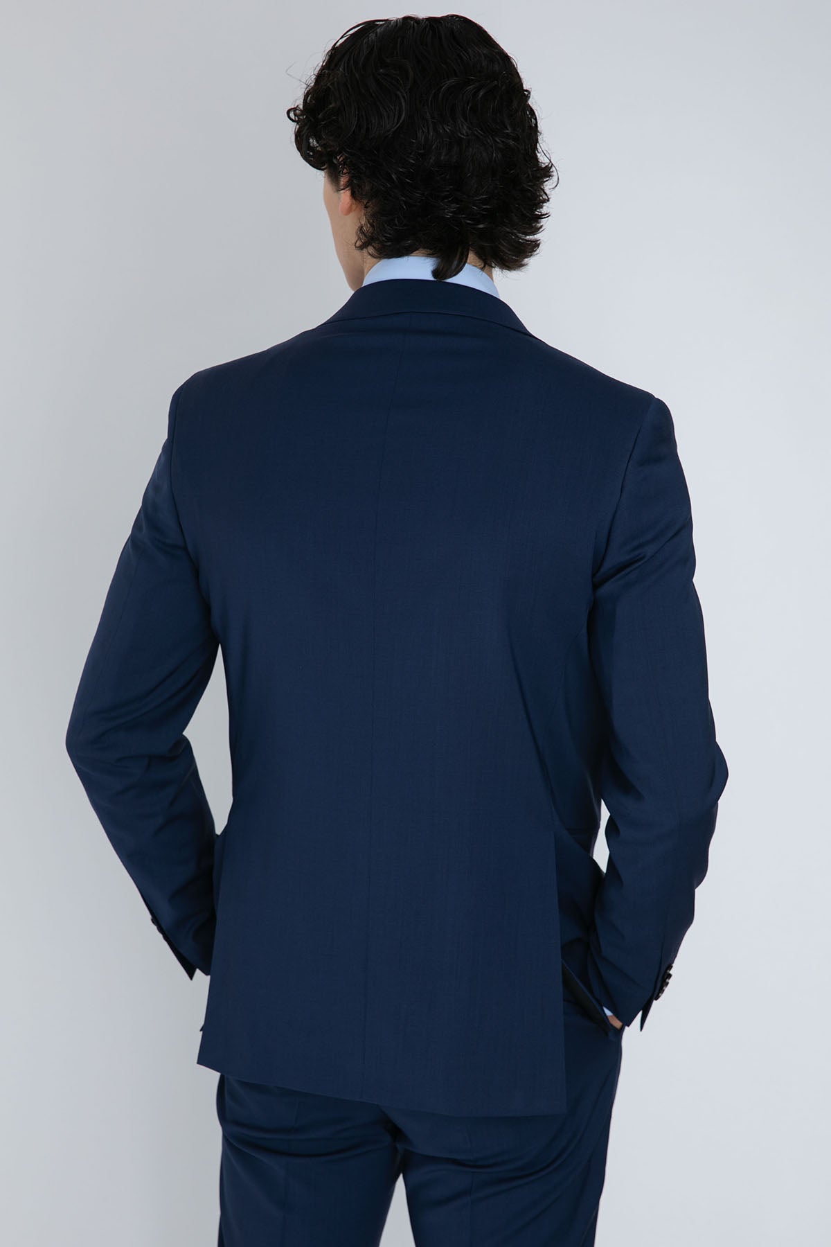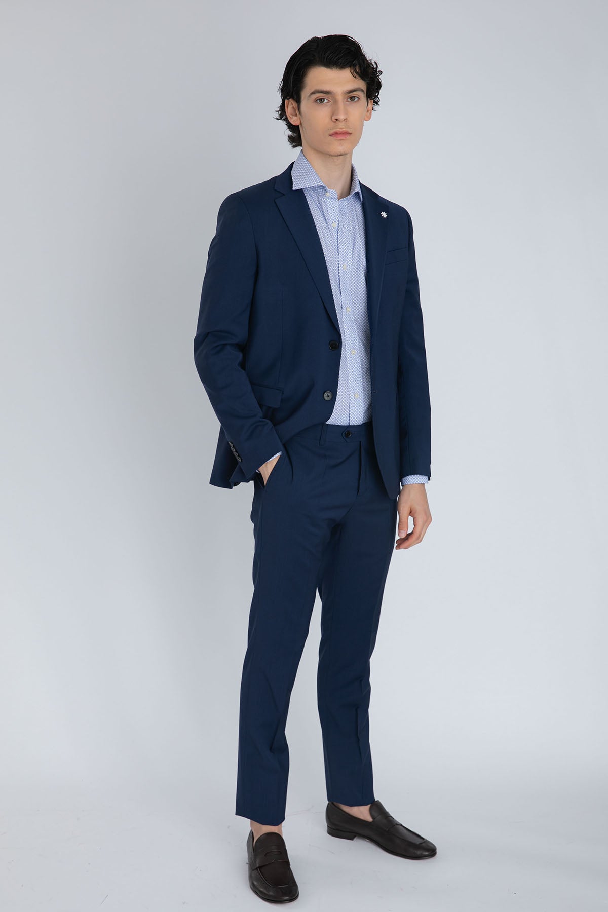 Çift düğme, metal kanca ve fermuar kapatmalı bel kısmı.