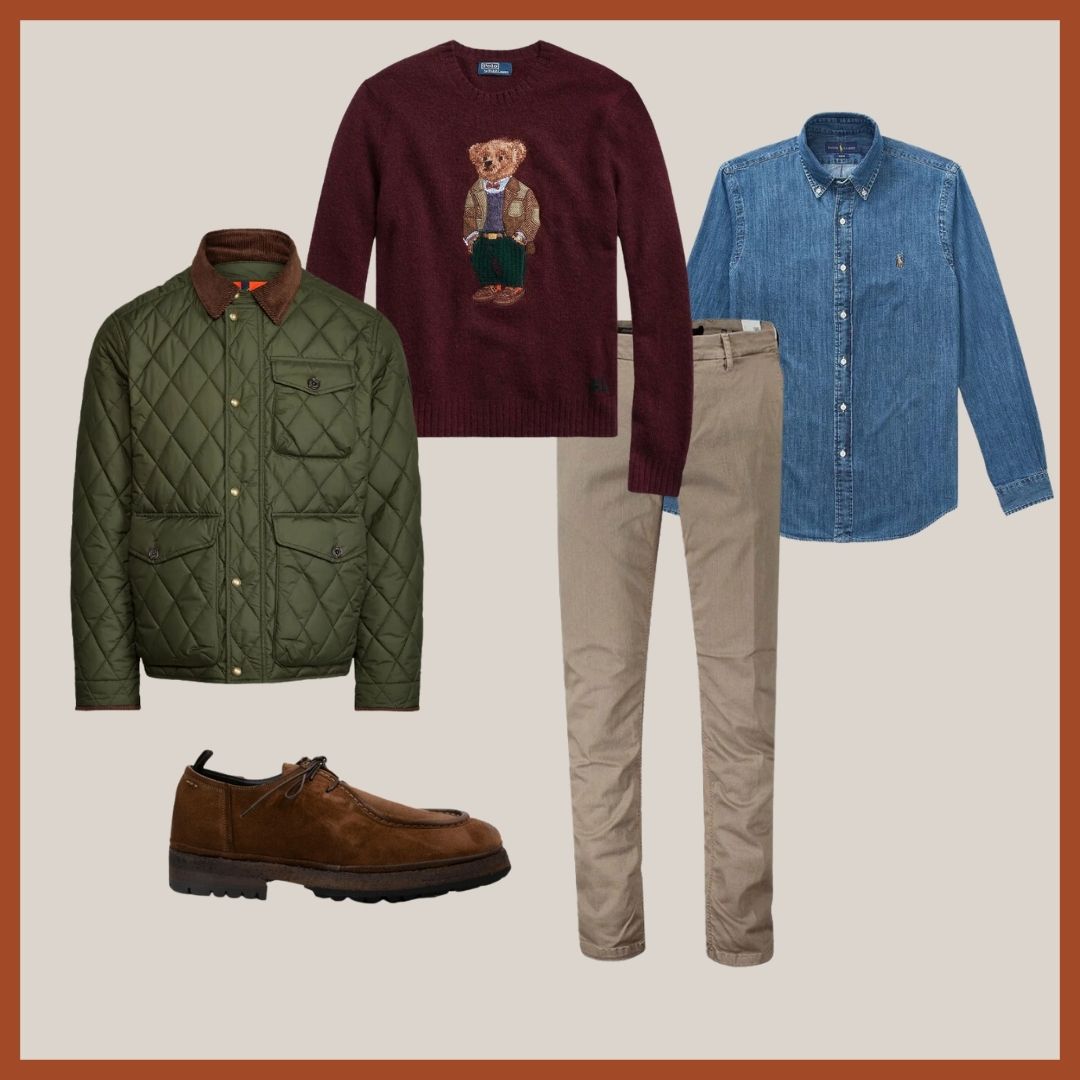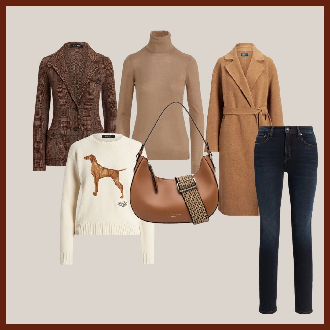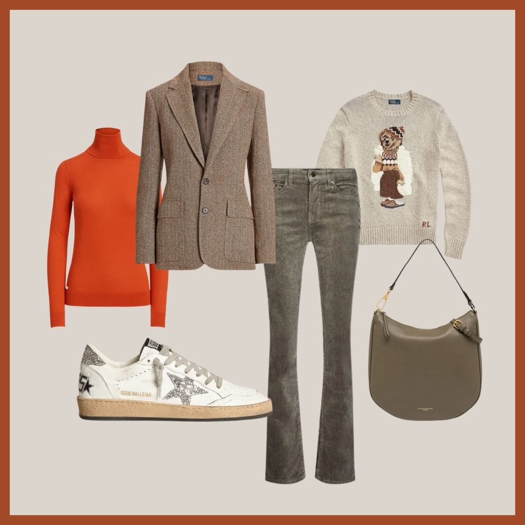 Doku ve tonların uyumunu bir araya getirdiğimiz, çoğunlukla Ralph Lauren'den seçtiğimiz parçalar ile bir kombin hazırladık. Bu sene kadife aksesuarları çokça göreceğiz