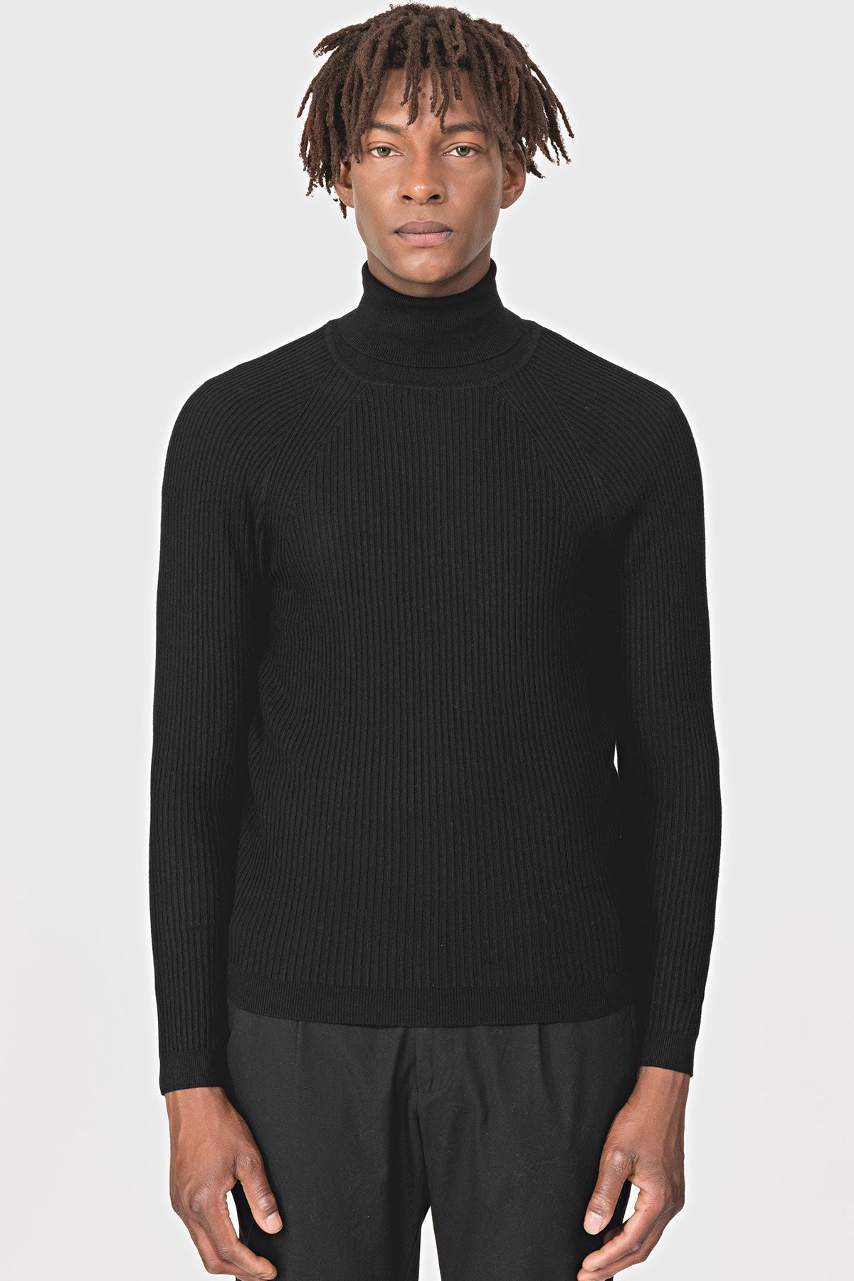 - Katlanabilir boğazlı yaka, uzun kollu triko.