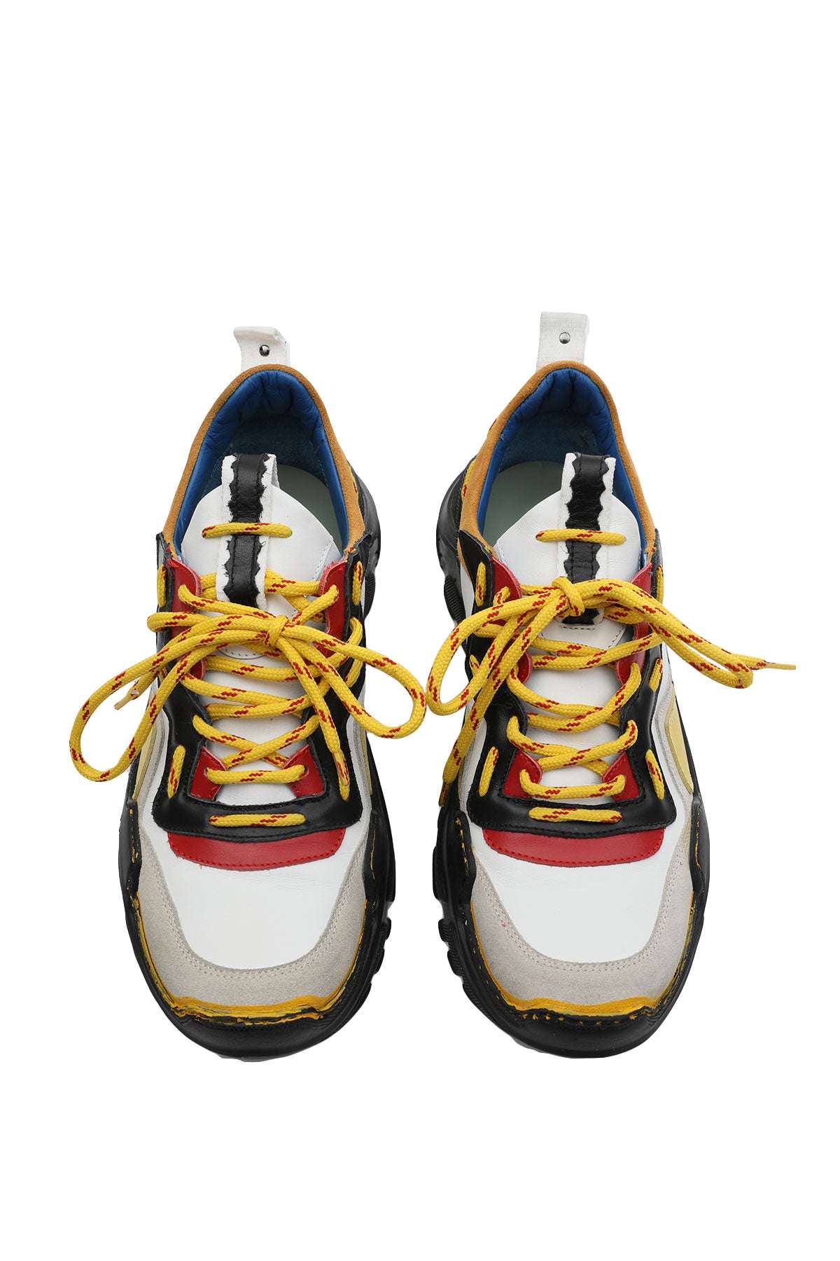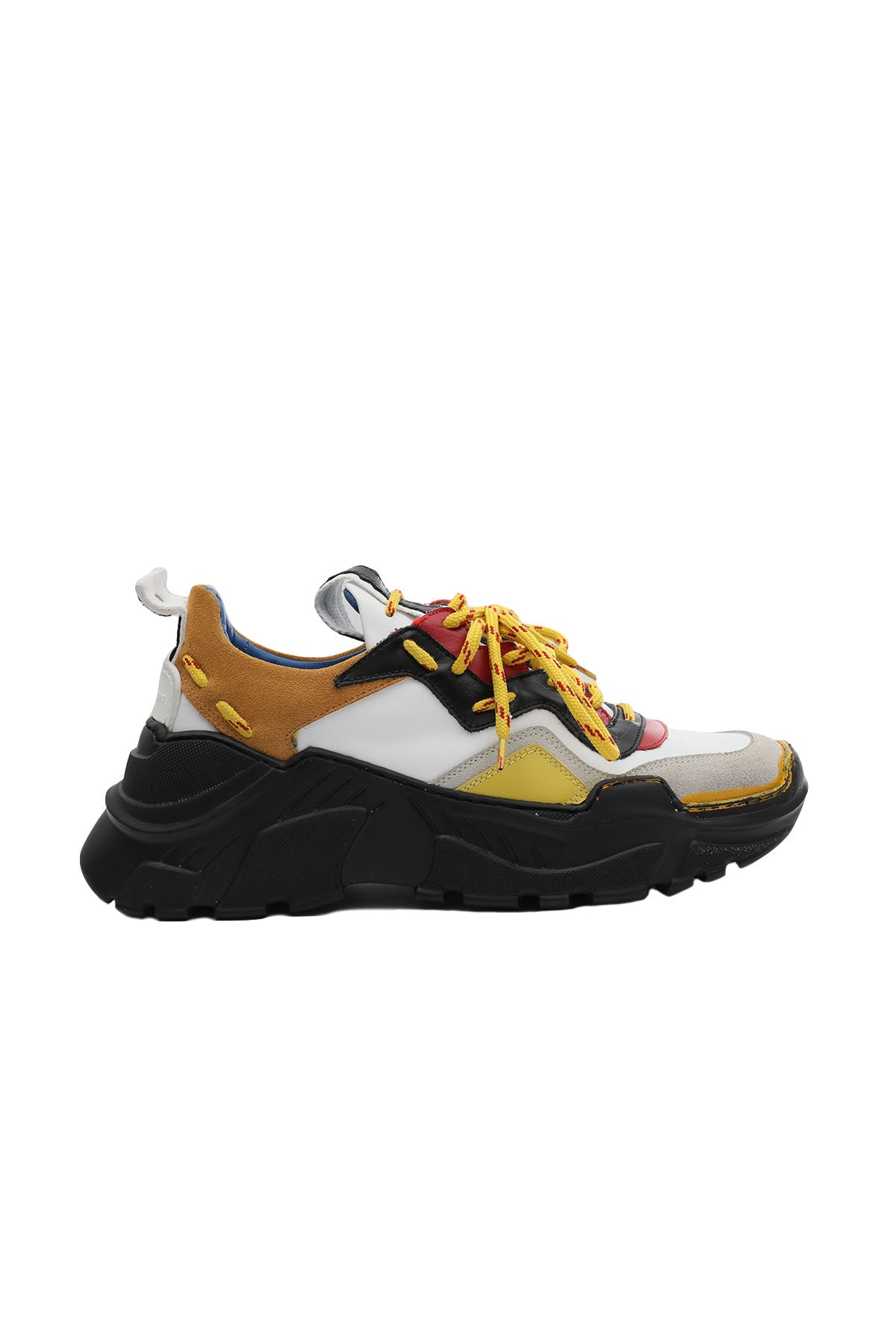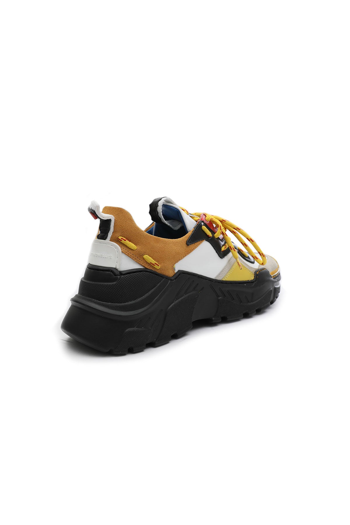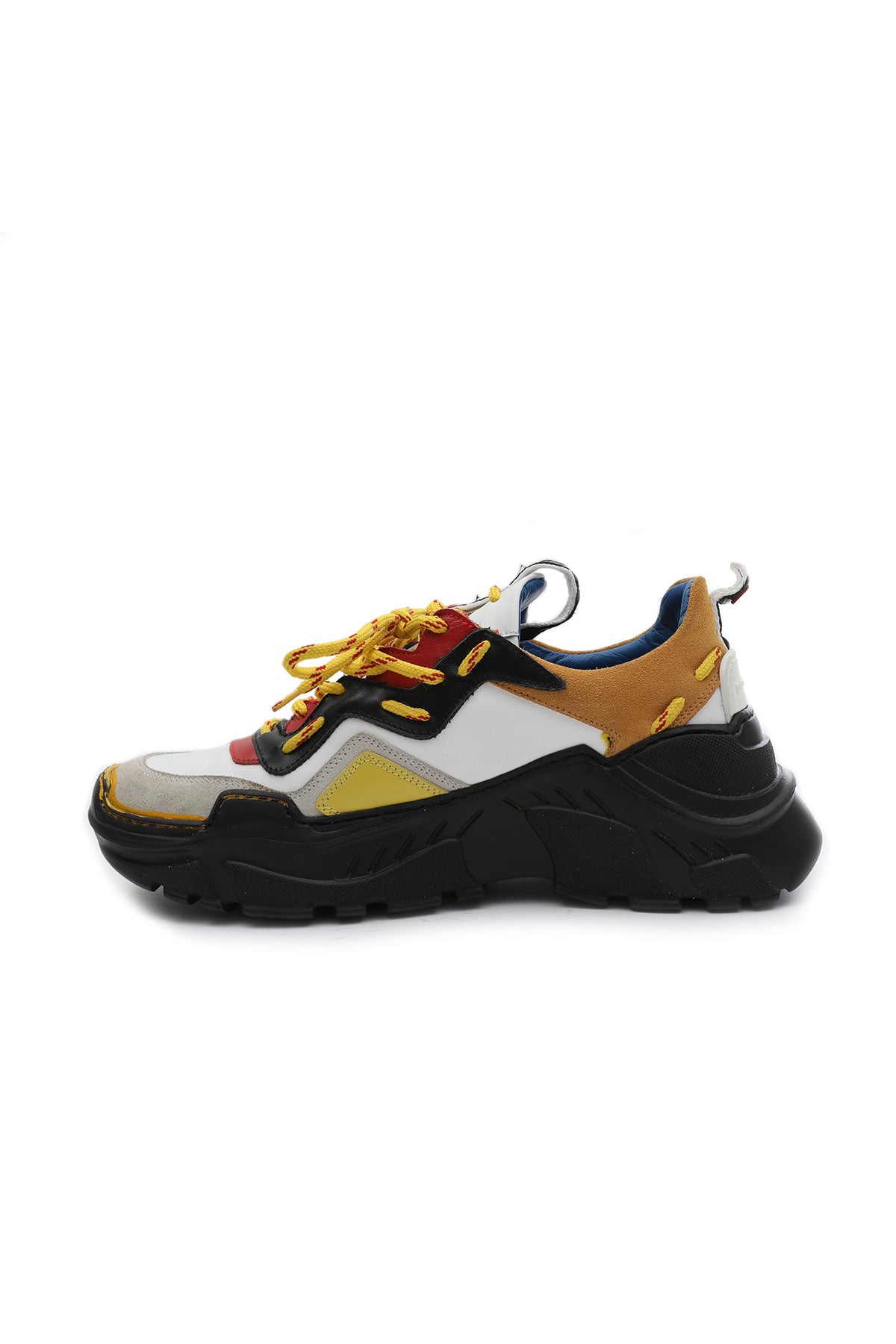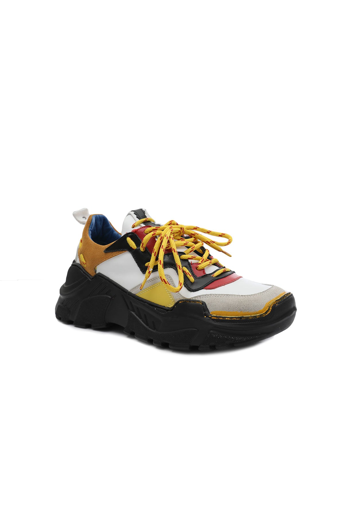 - Tutma yerinde ve dil kısmında kumaş üzerine işlenmiş diyagonel deri parça.