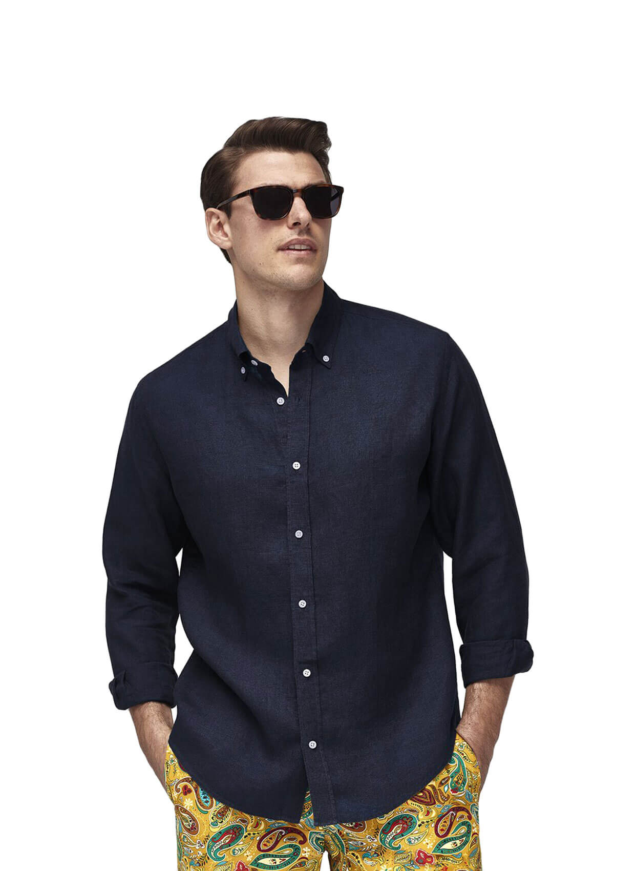 - Saf, Fransız yıkanmış keten uzun kollu gömlek.