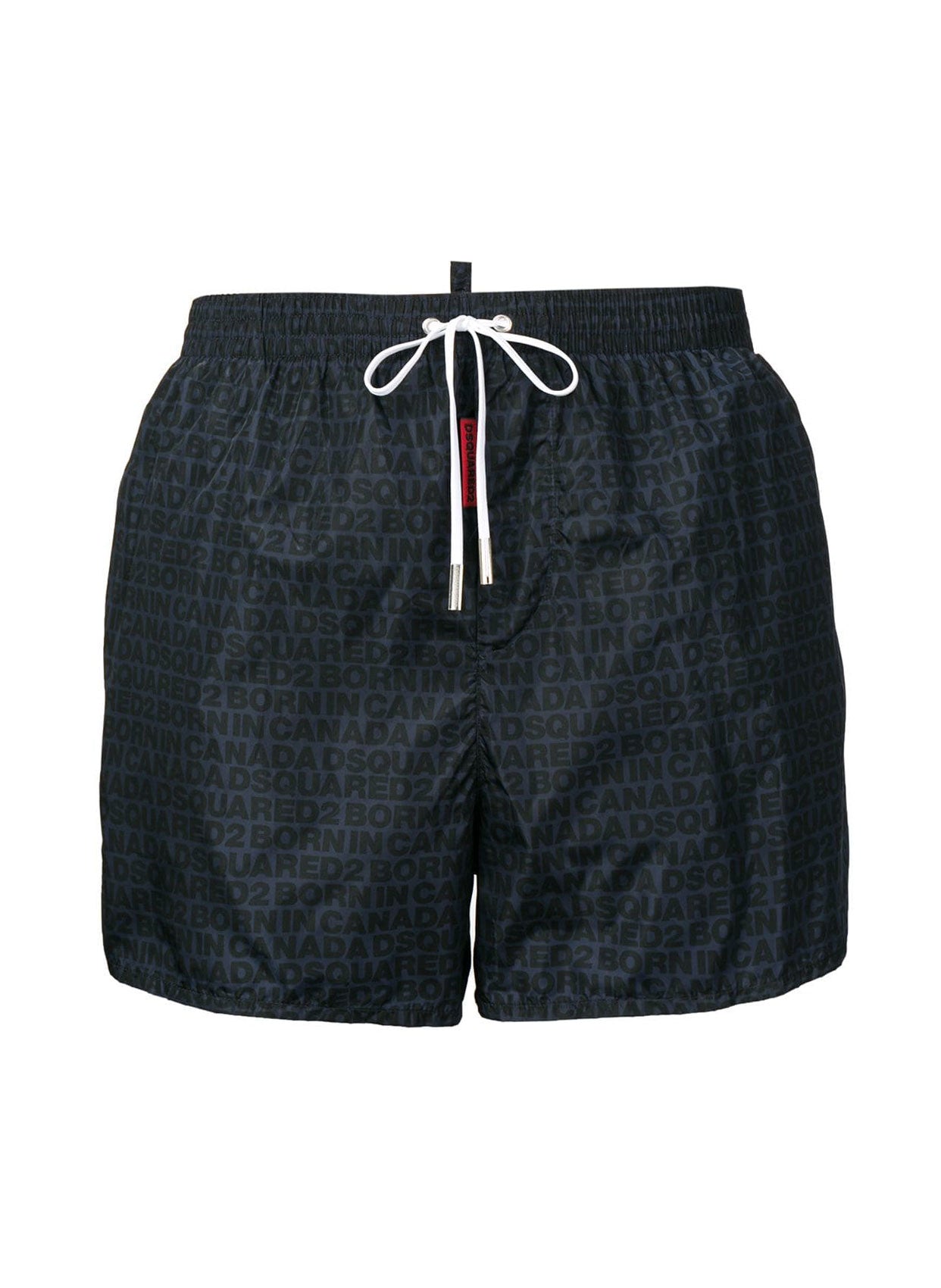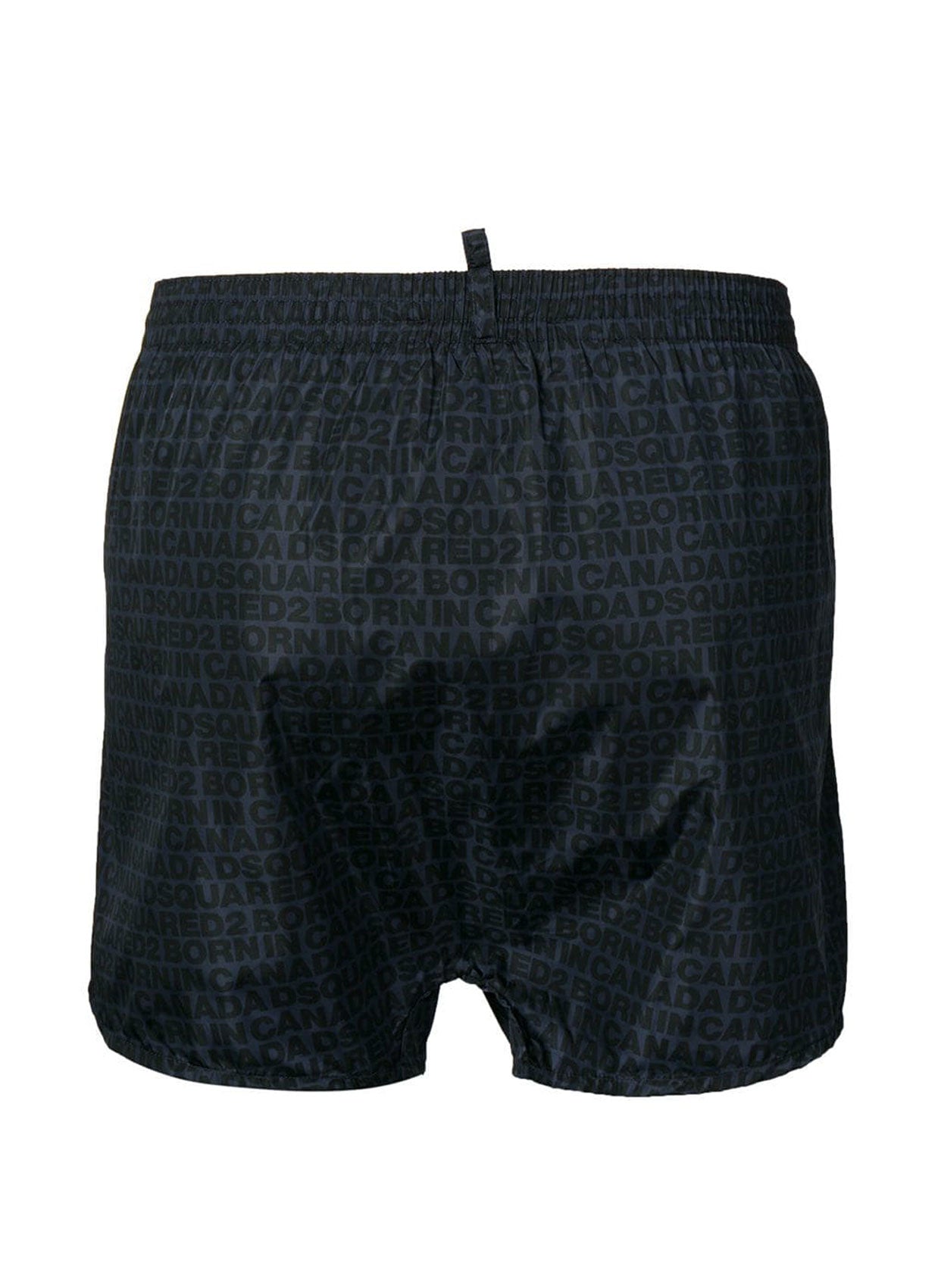 - Gömük desende şort mayoyu komple çevreleyen marka yazısı.