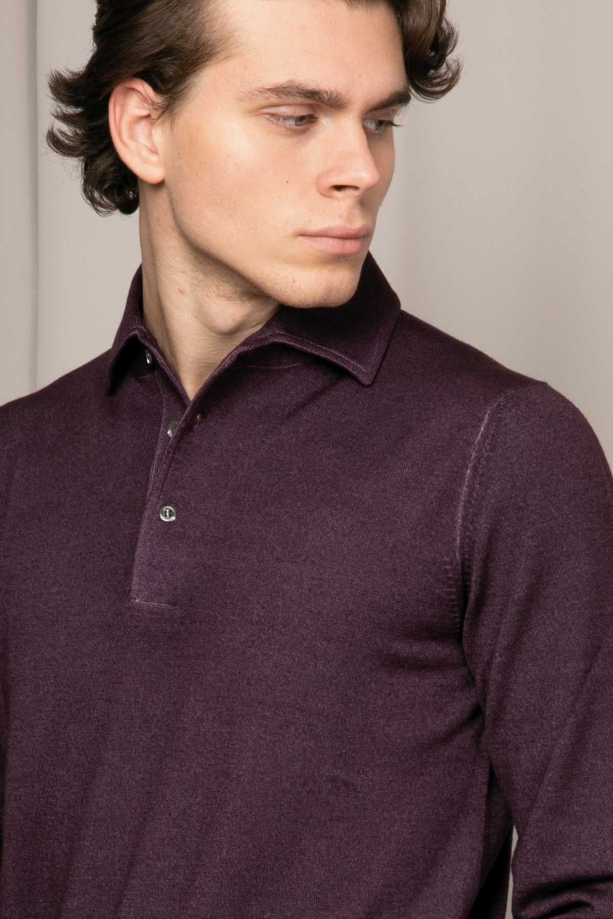 Polo yaka uzun kollu yün triko.