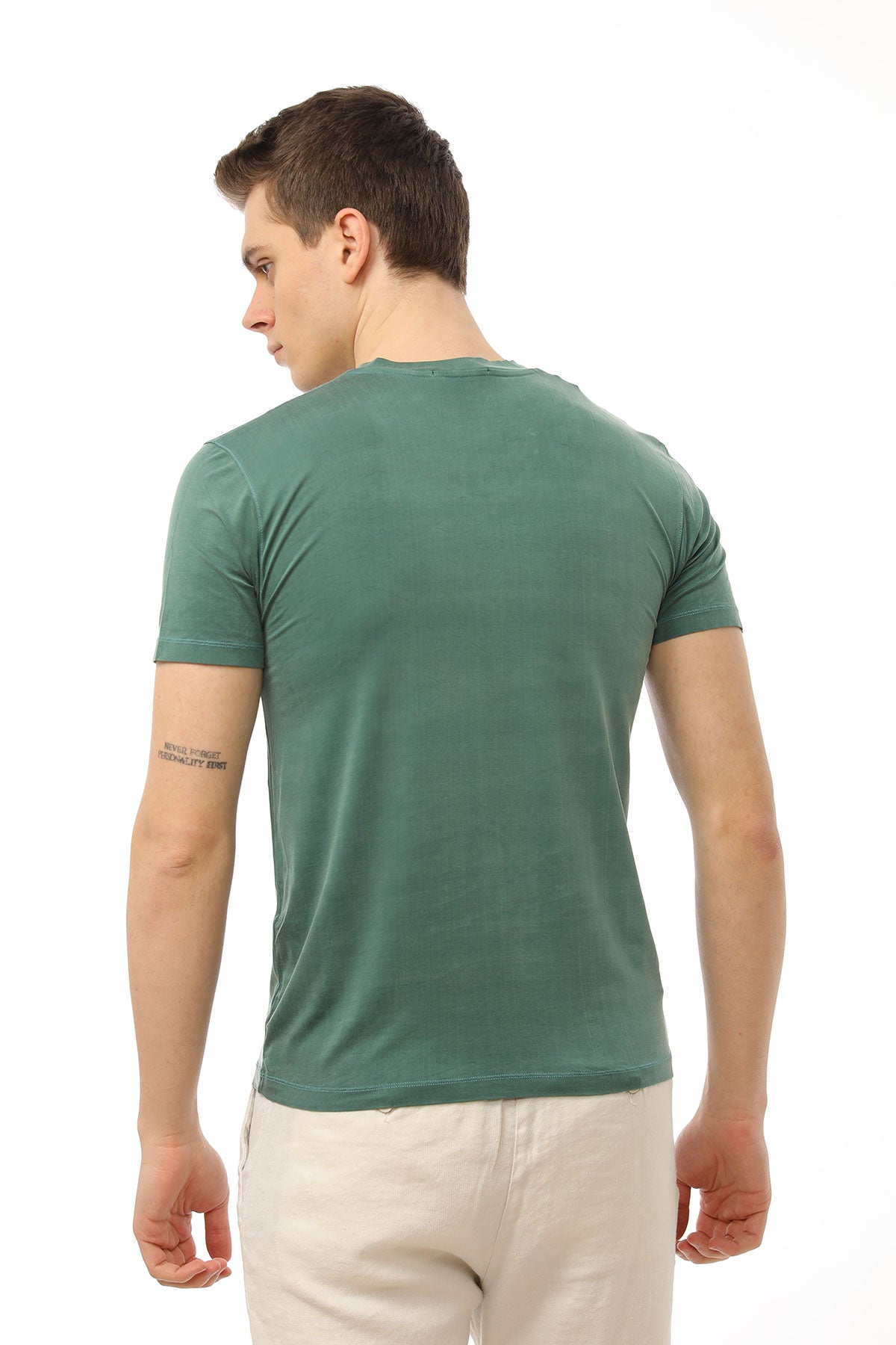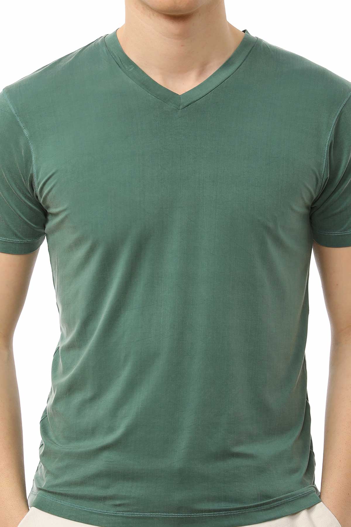 - V yaka, kısa kollu t-shirt.