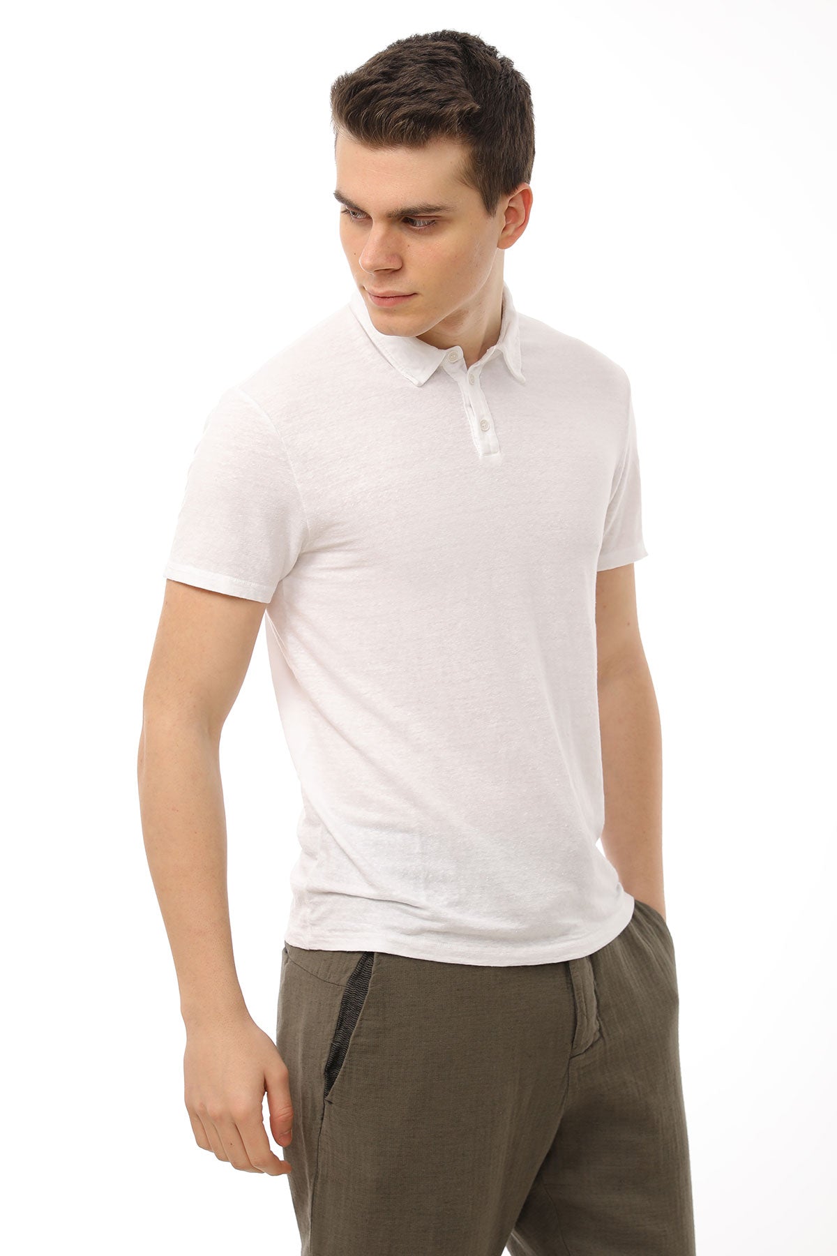 Manifattura Stretch Keten Polo Yaka T-shirt