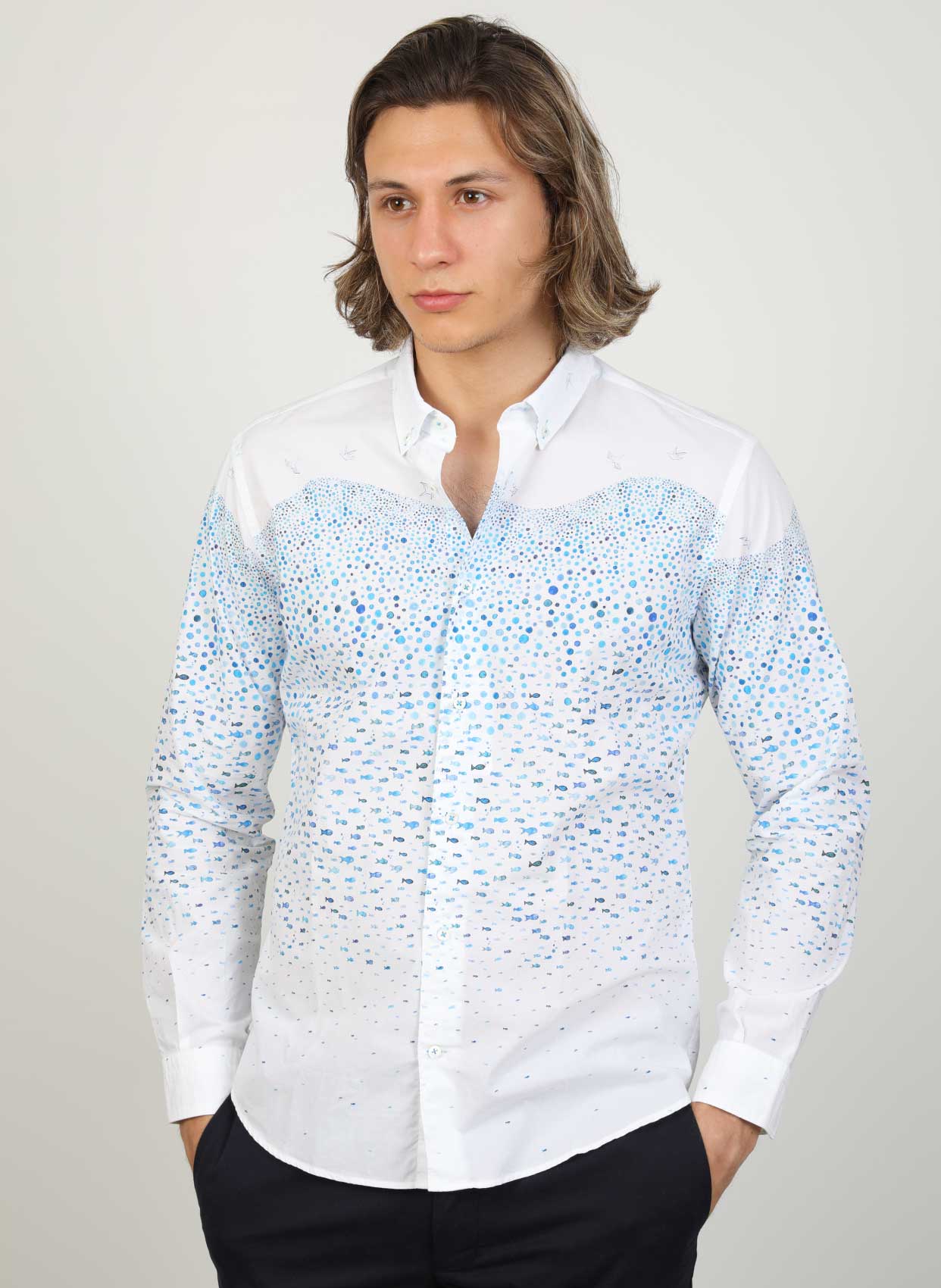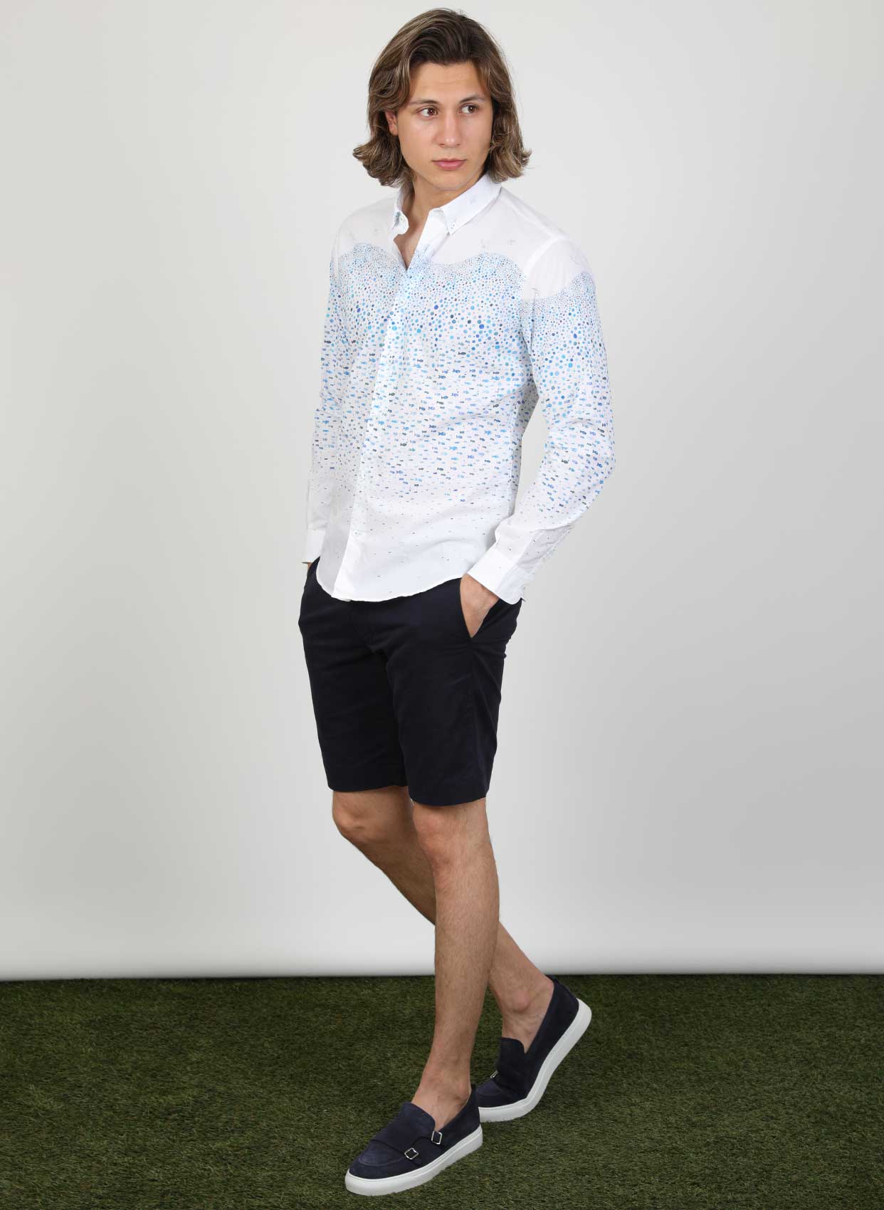 - Düğme kapatmalı ön kısım, yaka ve manşetler.