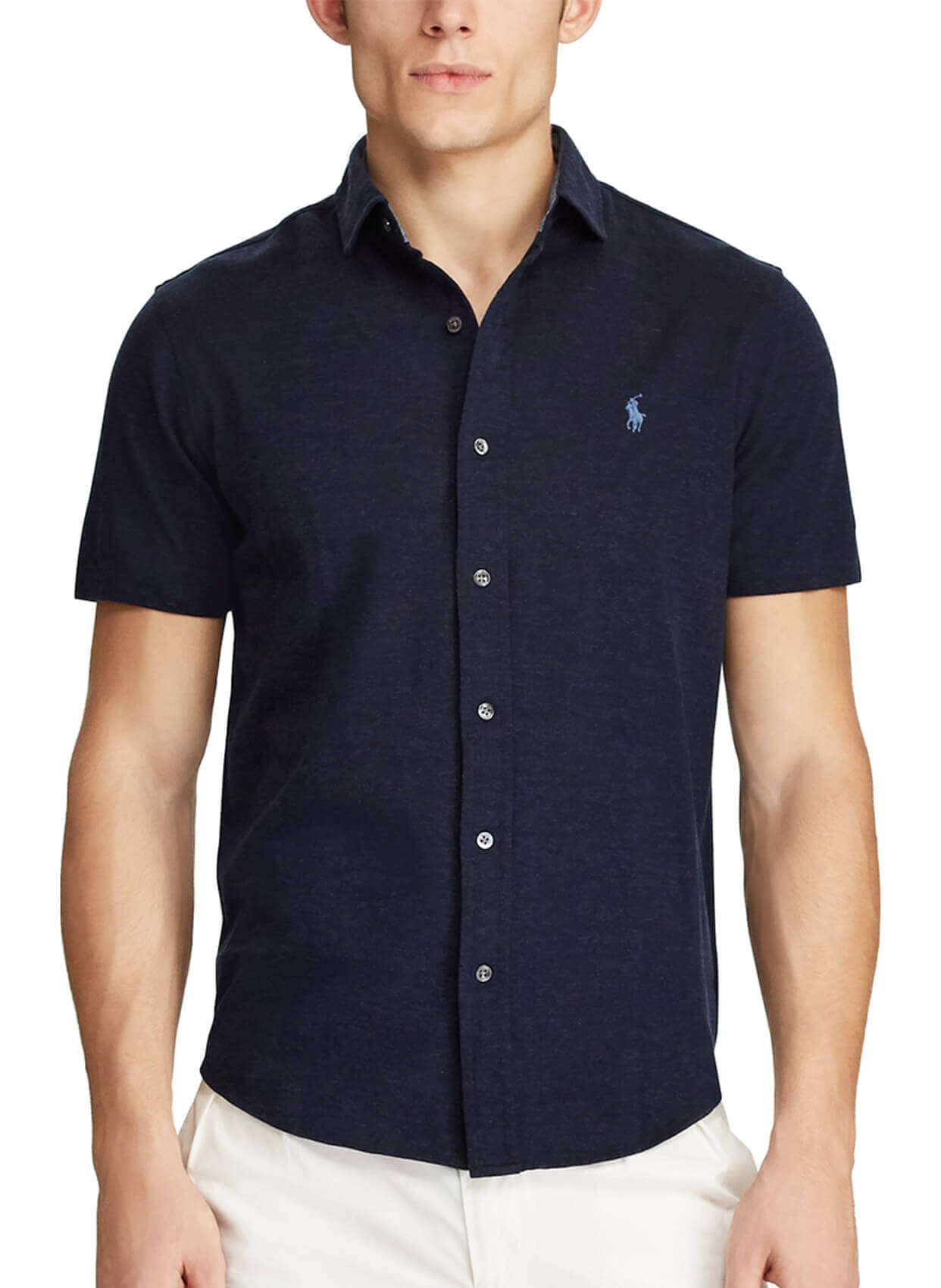 - Polo Ralph Lauren t-shirt lacivert pamuk standart kesim ile klasik yaka özellikleri, düğmeli kapatmalı ve kısa kollu. Bu model göğsünde işlemeli bir logoya ve yuvarlak bir tabana sahiptir.