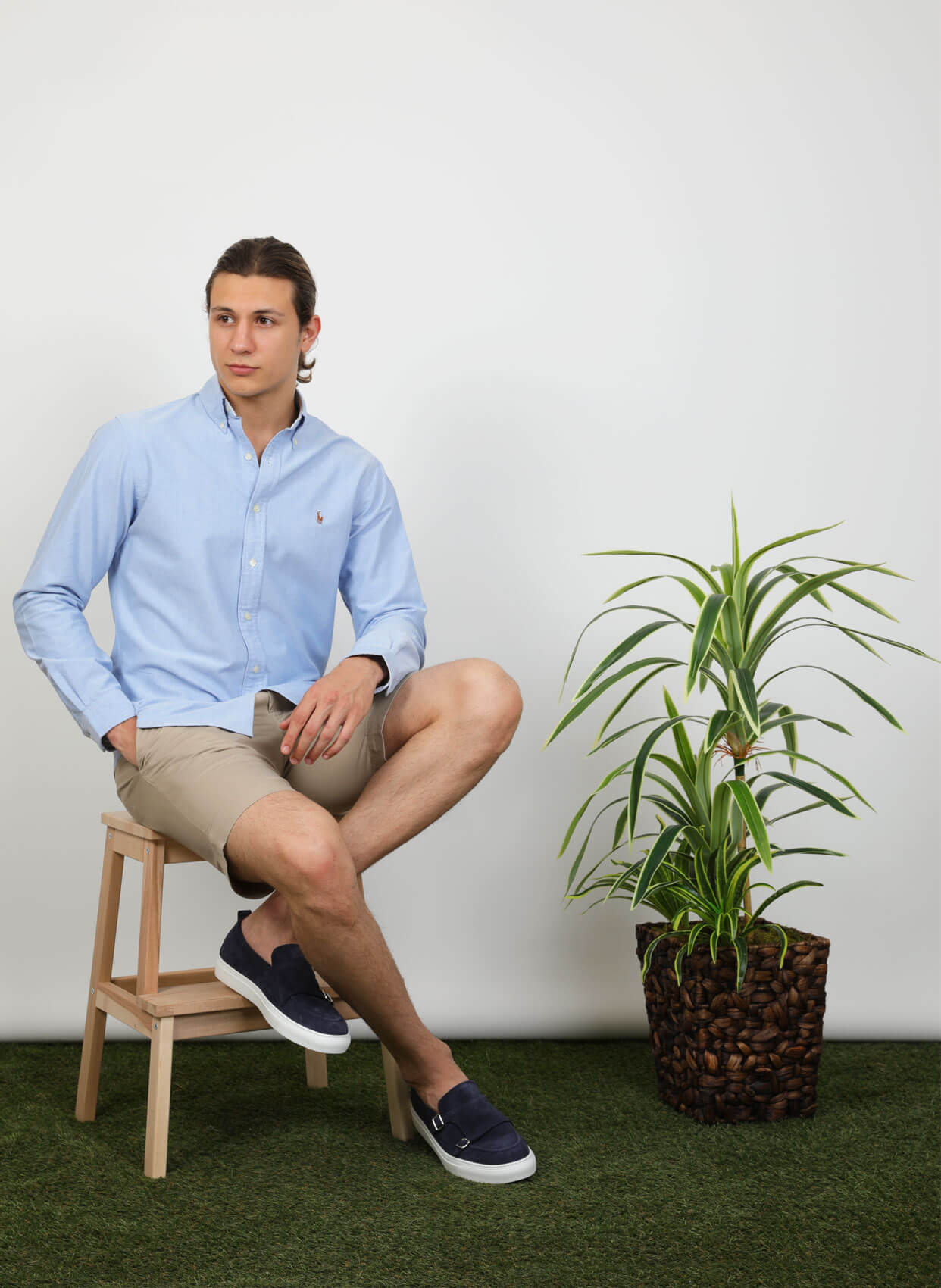 - Düğme kapatmalı ön kısım, yaka ve manşetler.