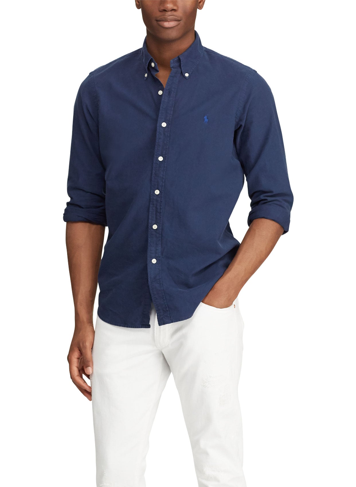 - Düğme kapatmalı ön kısım, yaka ve manşetler.