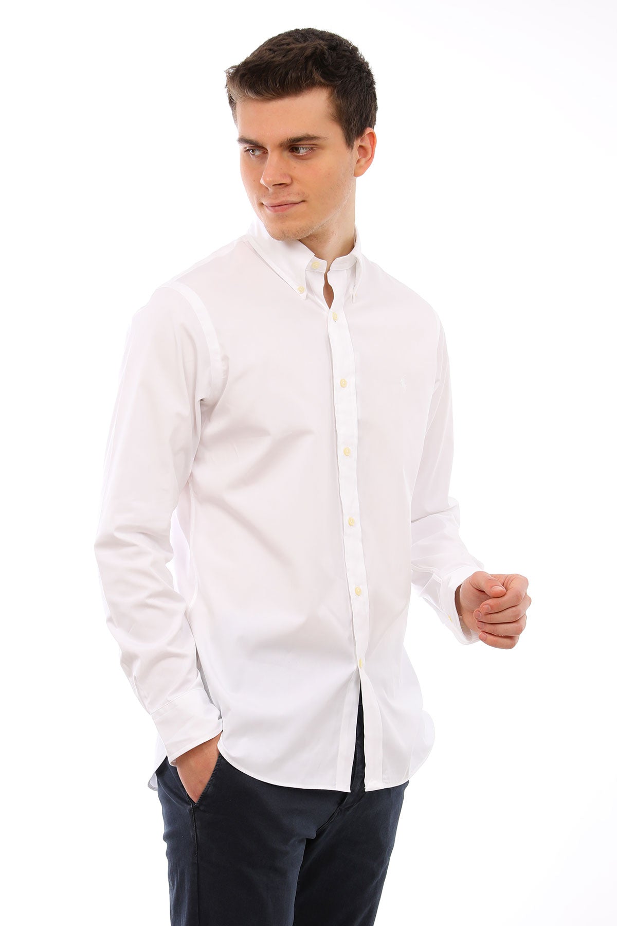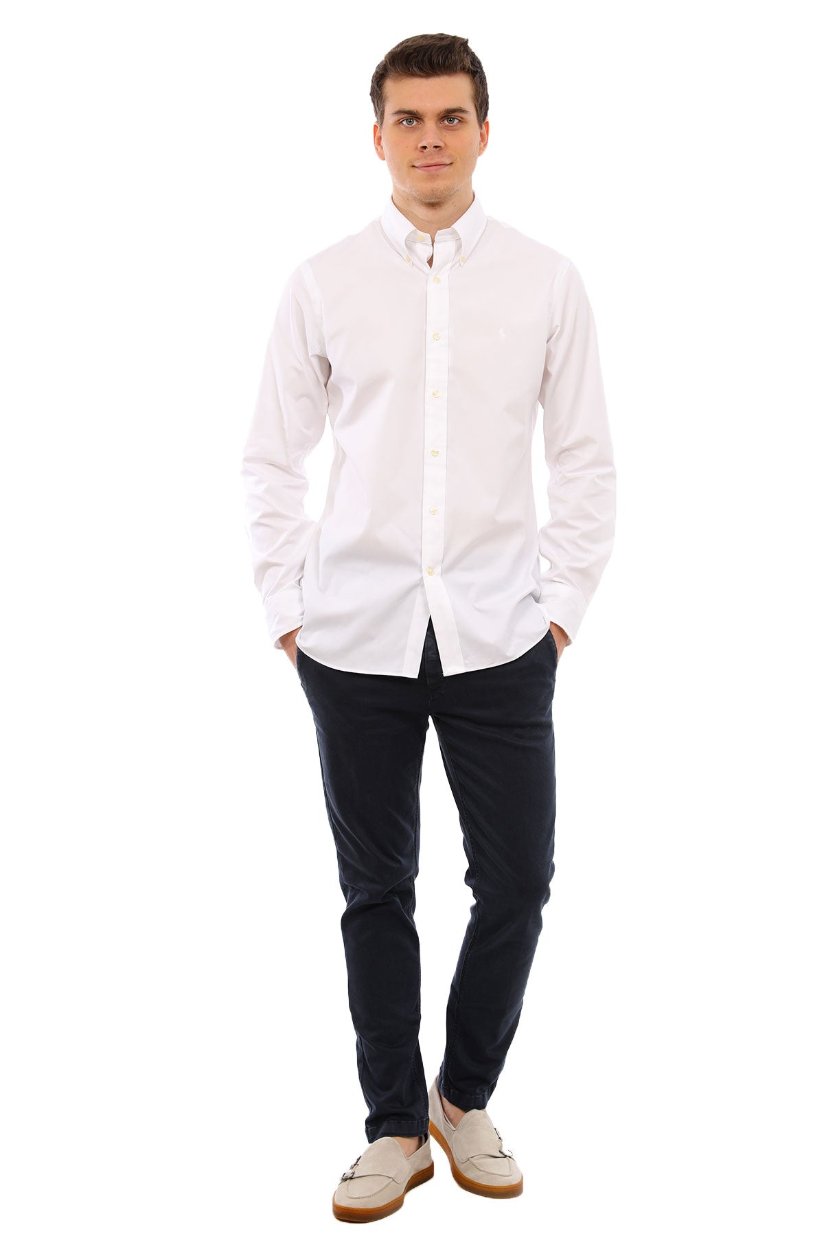 - Sol göğüs üzerinde beyaz nakış işlemeli marka logosu.
