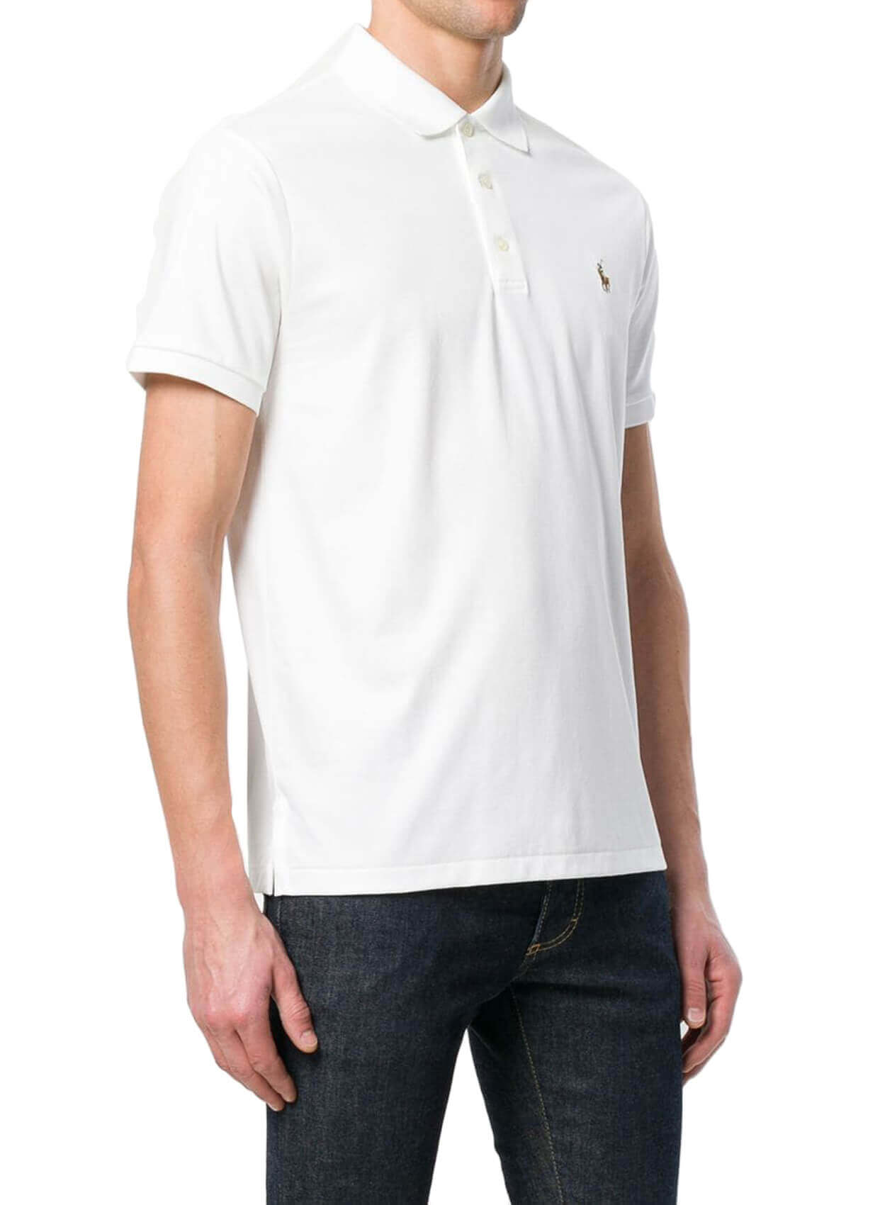 - Çok renkli logolu beyaz pamuklu Polo t-shirt. Klasik polo yaka, göğüs üzerinde kontrast işlemeli logo, kısa kollu.