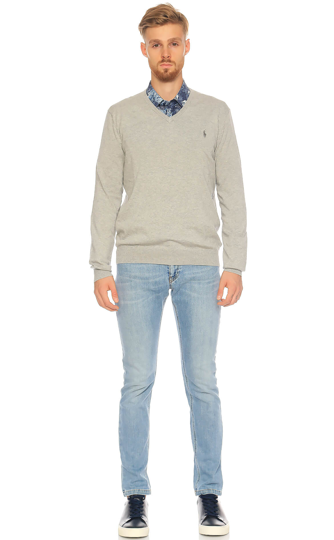 Saf, doğal olarak nefes alabilen pamuktan üretilen V yaka triko