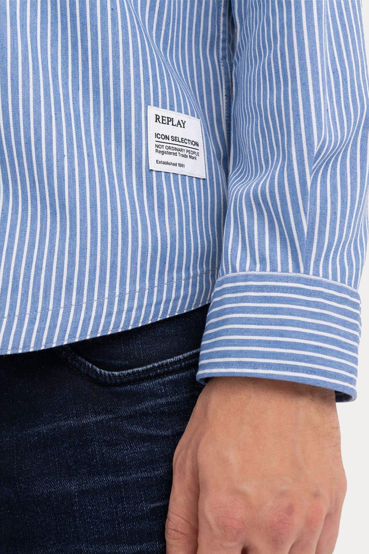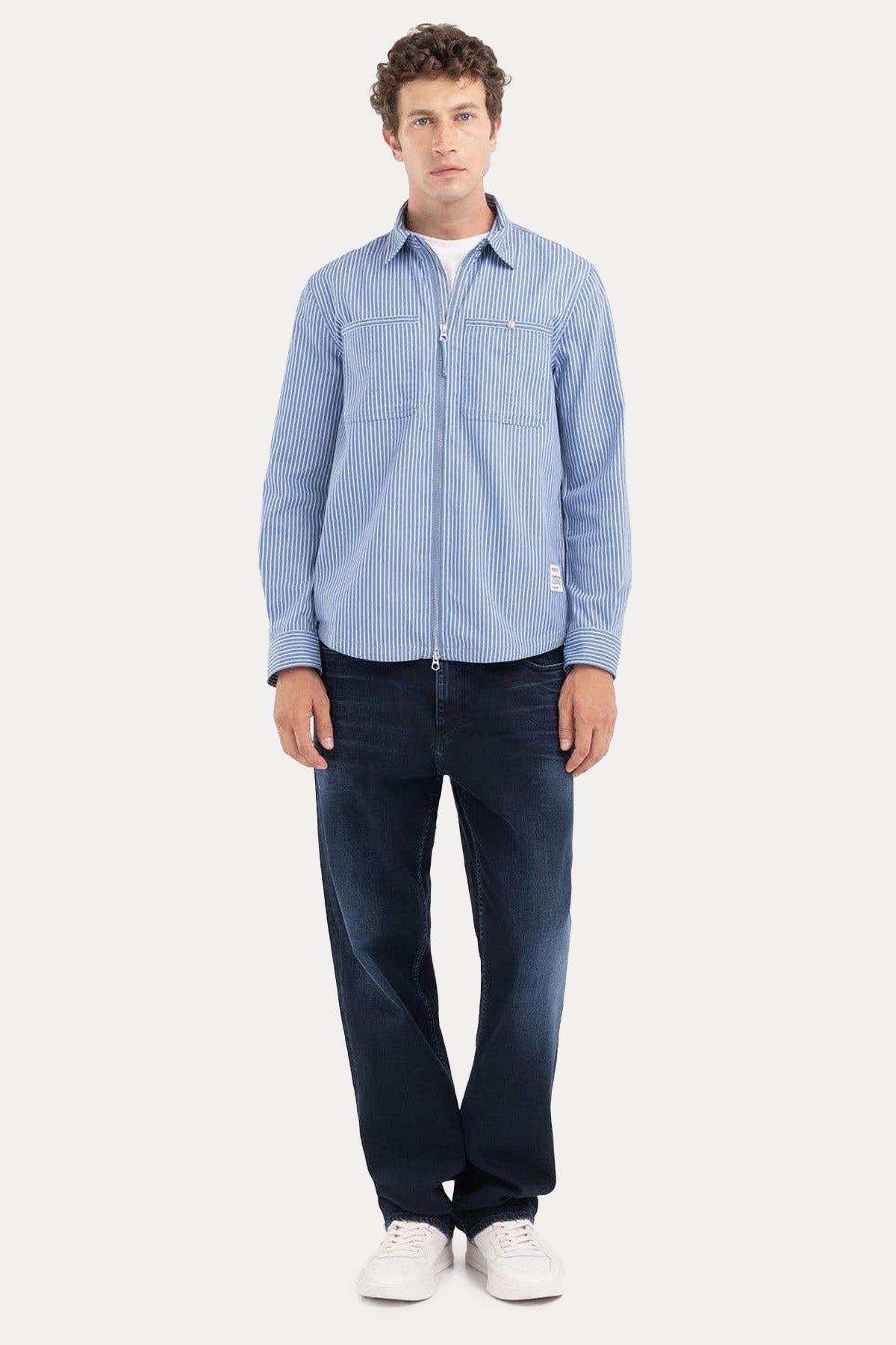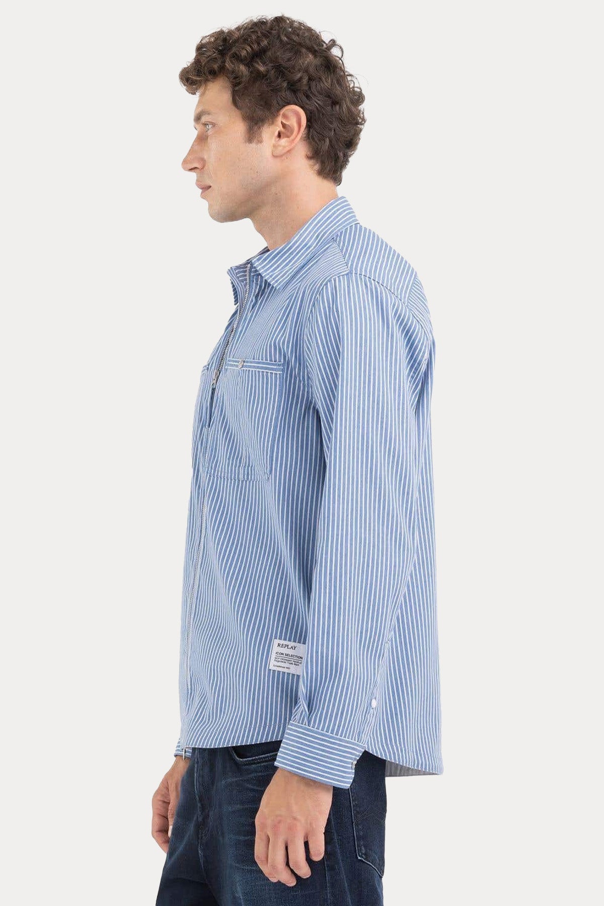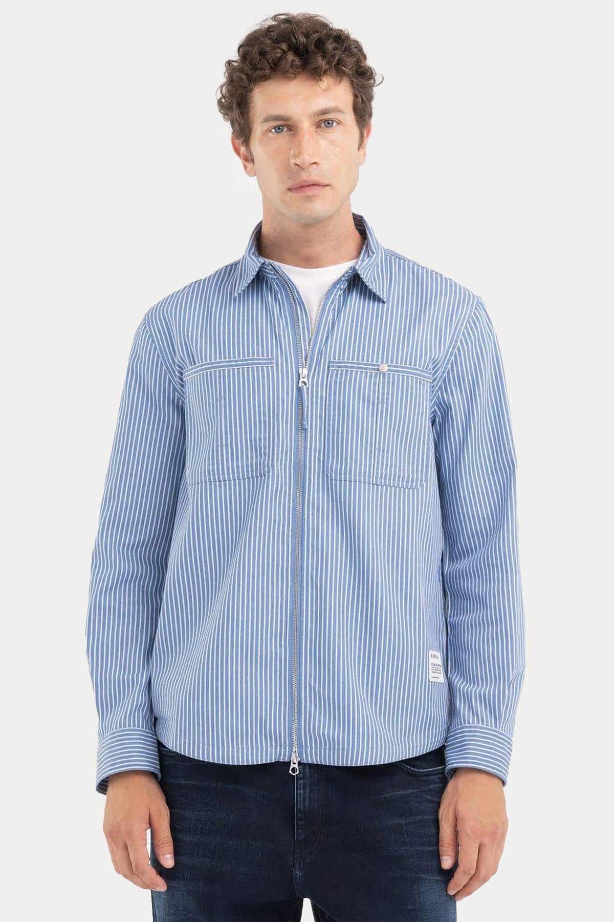 Replay Klasik Yaka Cep Detaylı Çizgili Gömlek Ceket