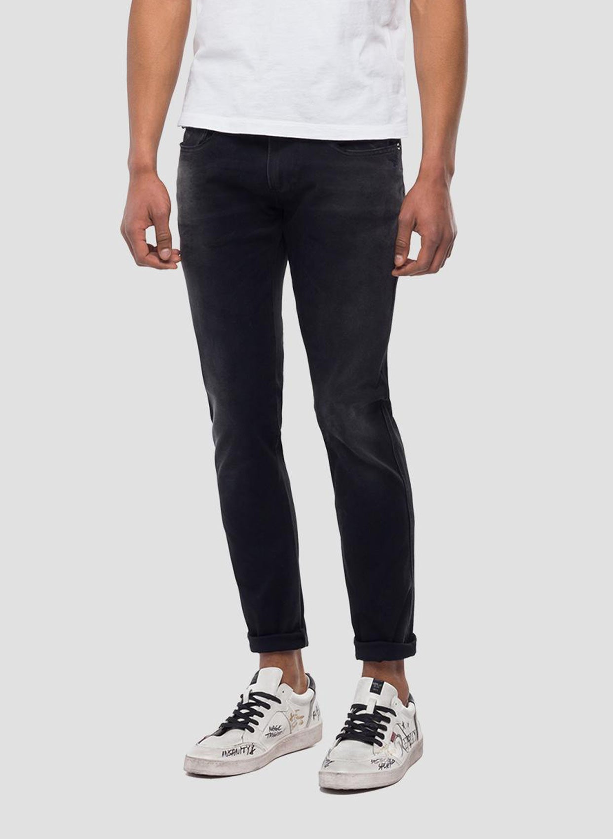 - Arka kemer kısmında Replay marka yazılı deri parça.