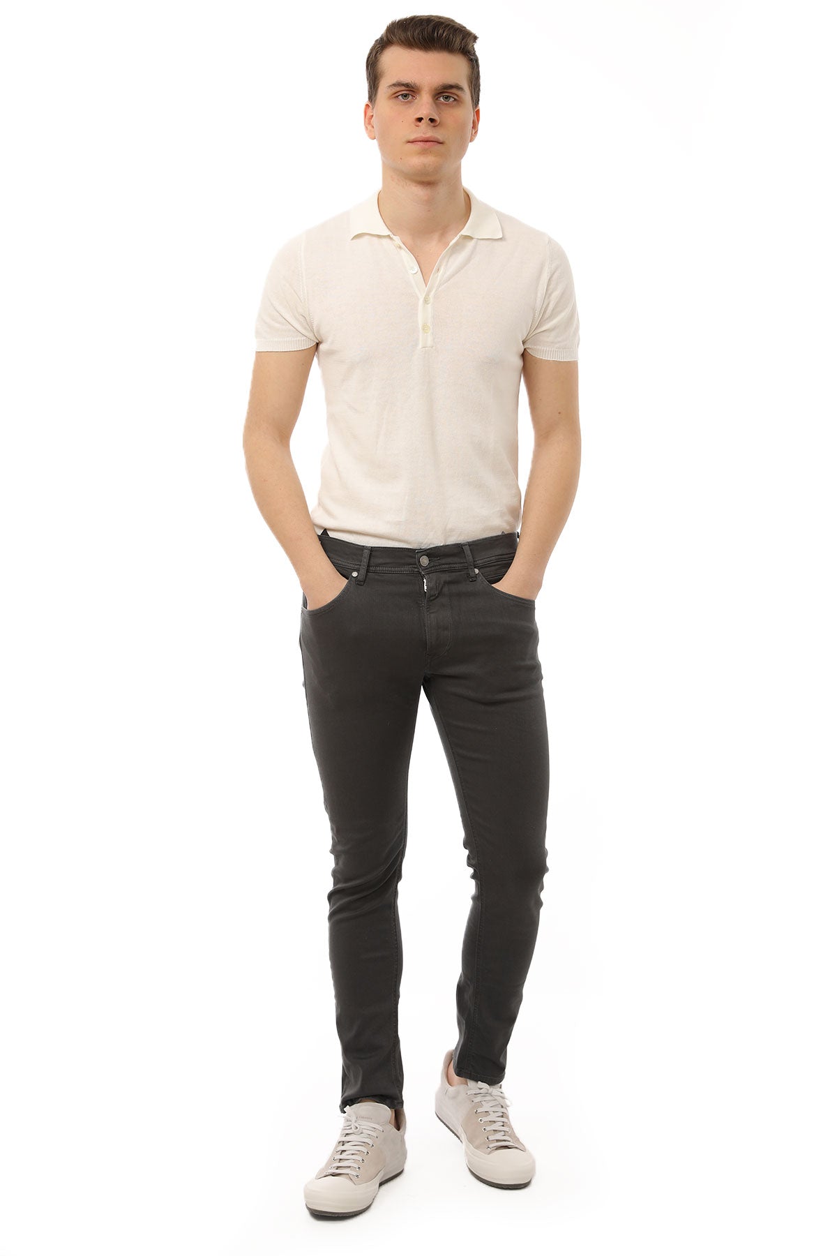 - Metal düğme ve fermuar kapatmalı bel kısmı.