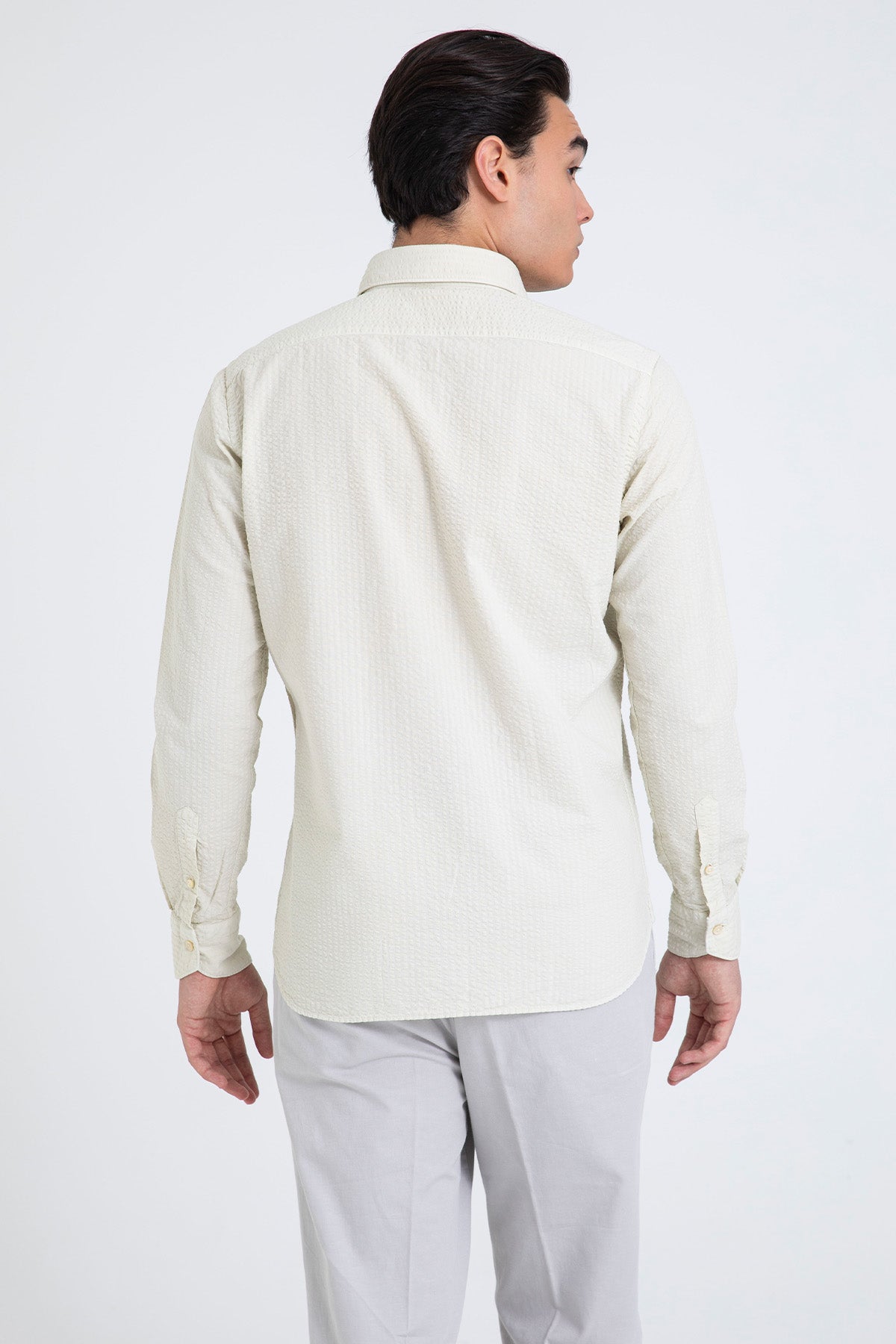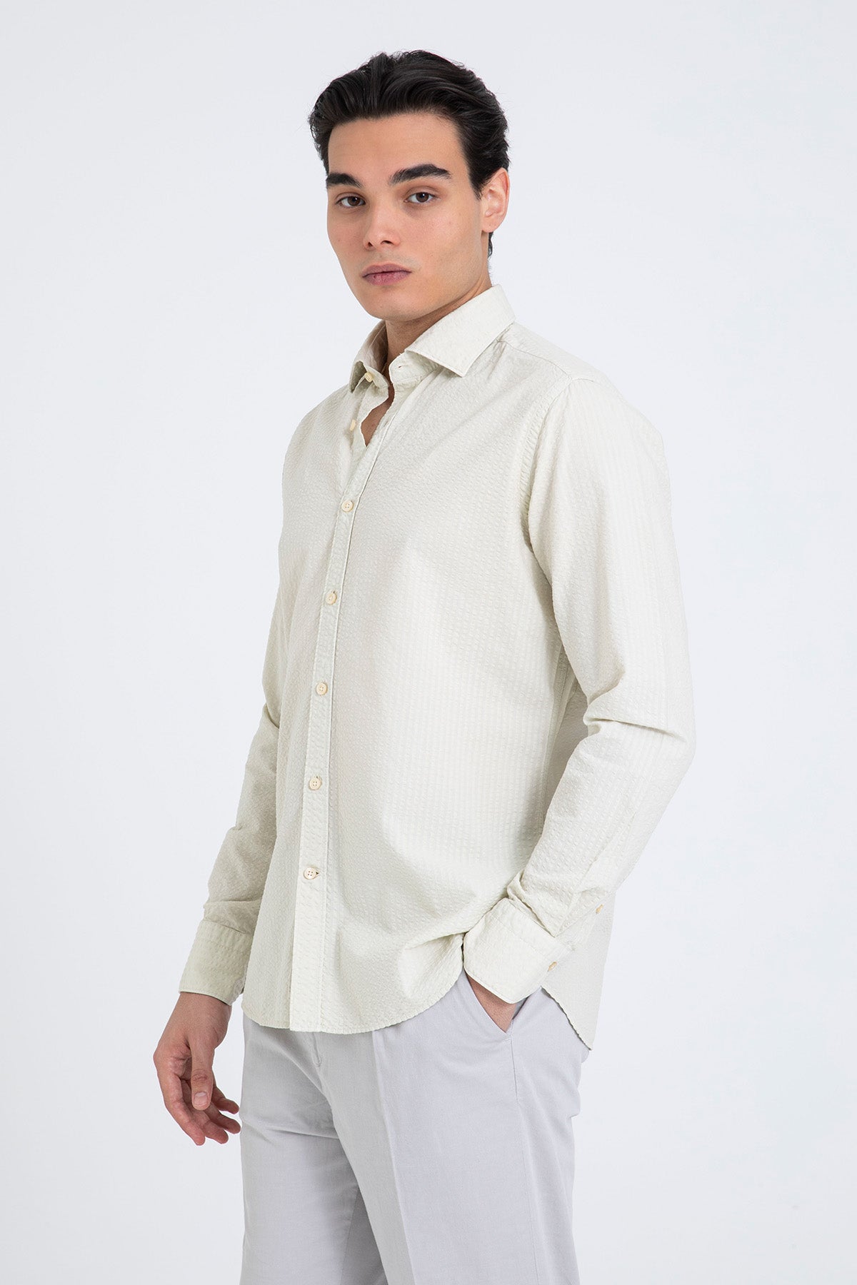 - Klasik yaka, uzun kollu gömlek.