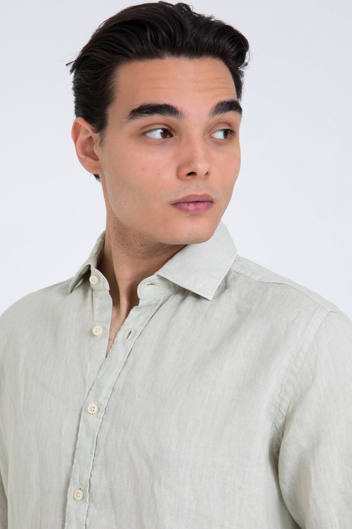 - Hafif dokulu %100 keten kumaştan üretilen, nefes alabilen yapısıyla yaz sezonu için ideal, haki renkli uzun kollu gömlek. Lacivert chino pantolonlar veya beyaz şortlarla kombinleyerek ferah ve zarif bir yaz stili yaratın.