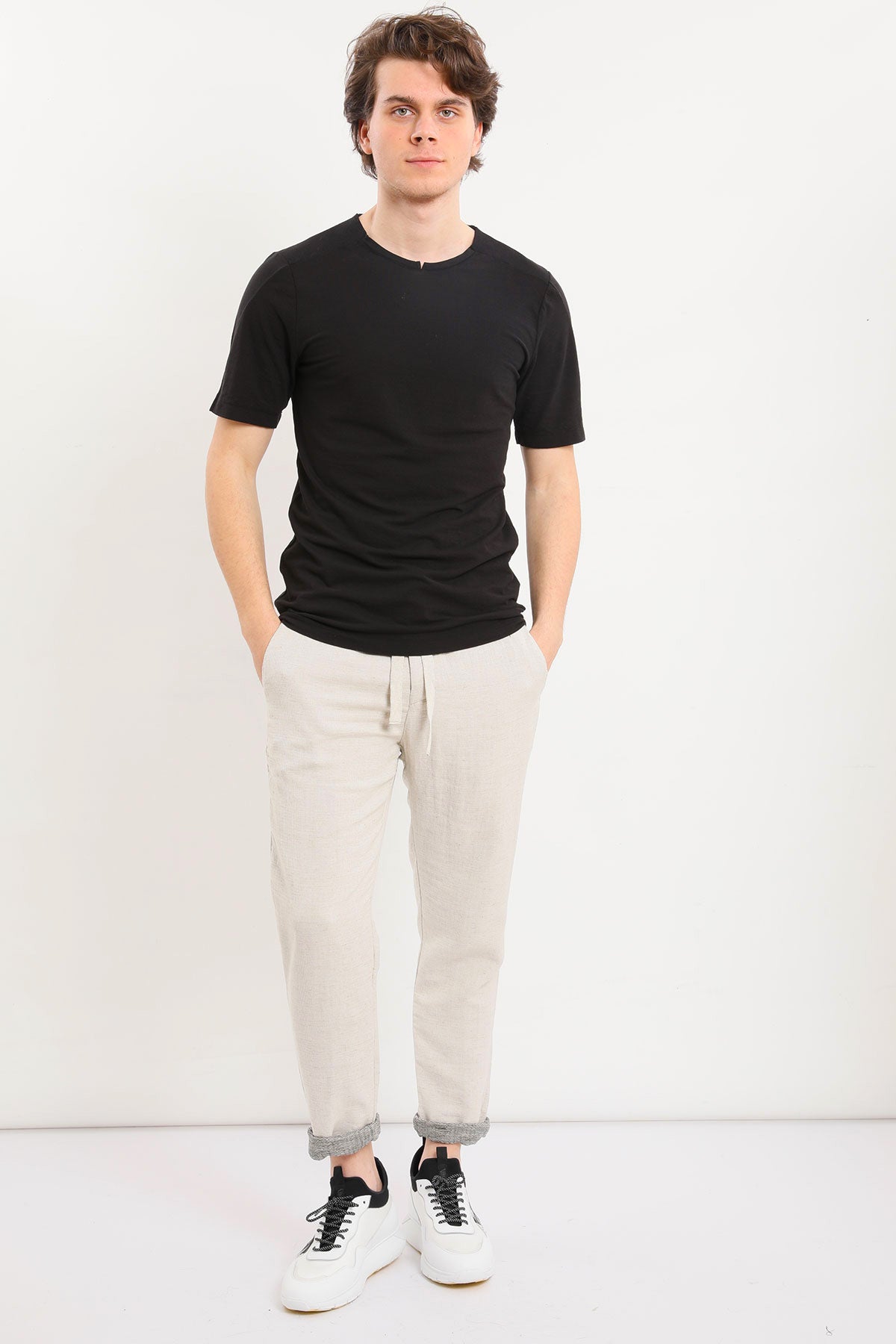 - Yuvarlak yaka, kısa kollu t-shirt.