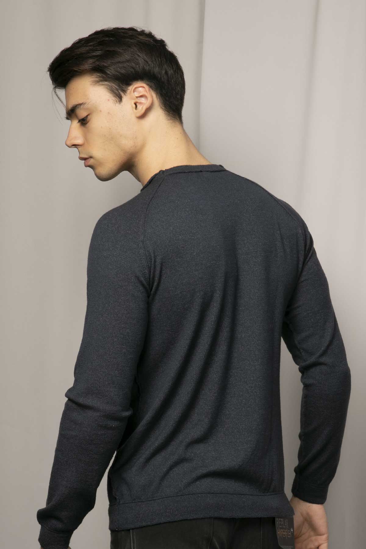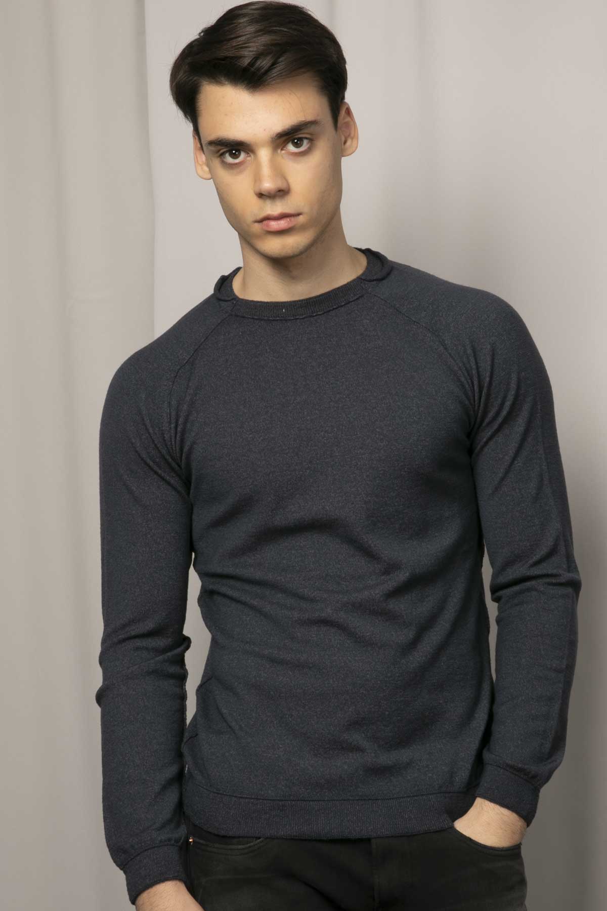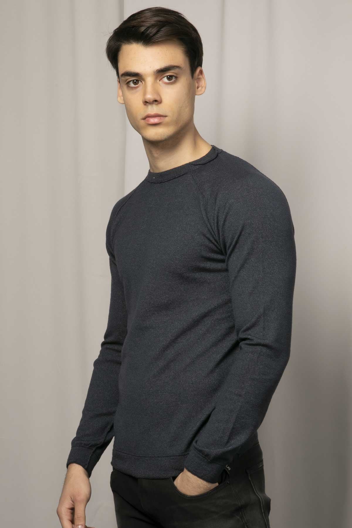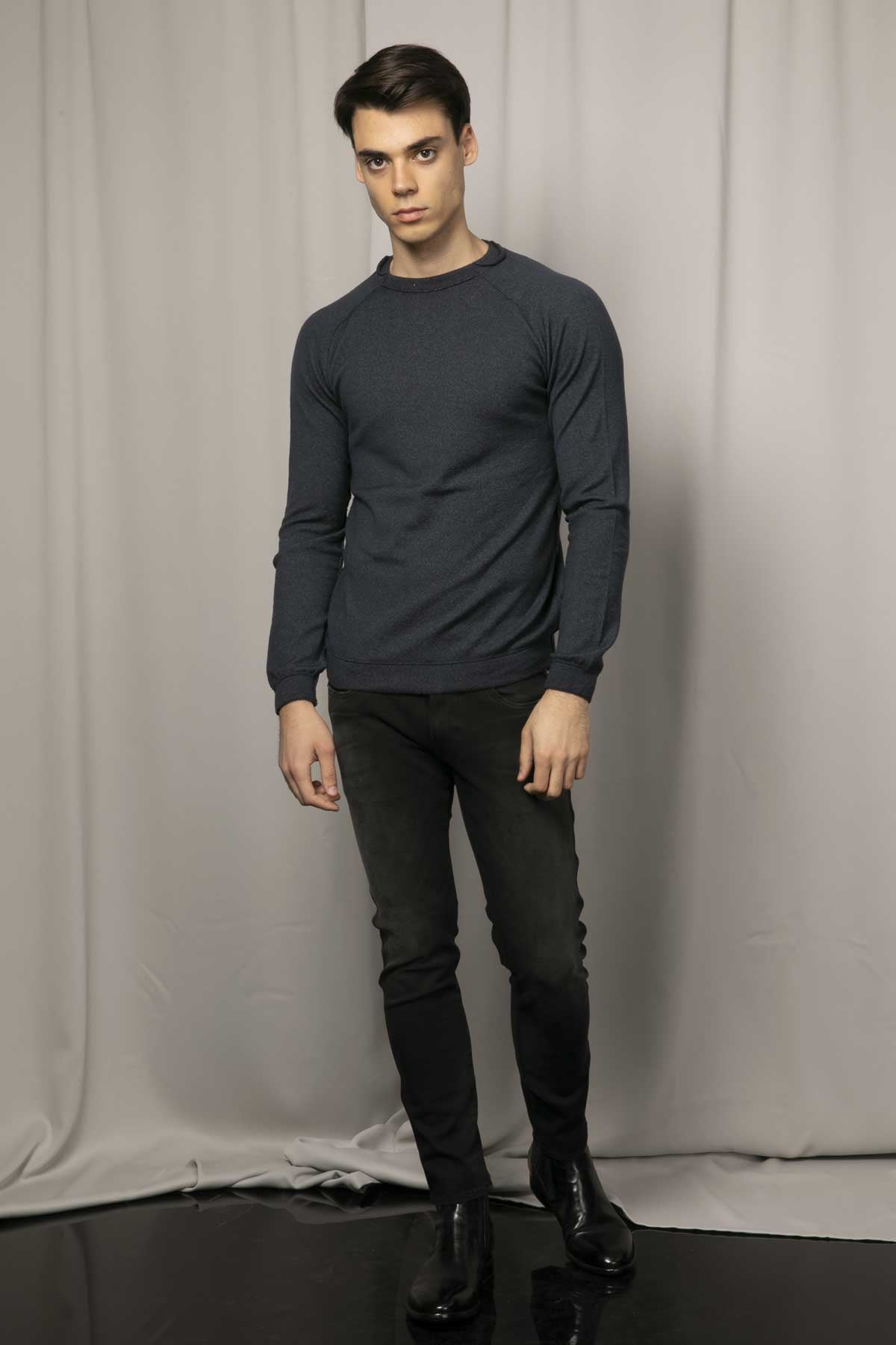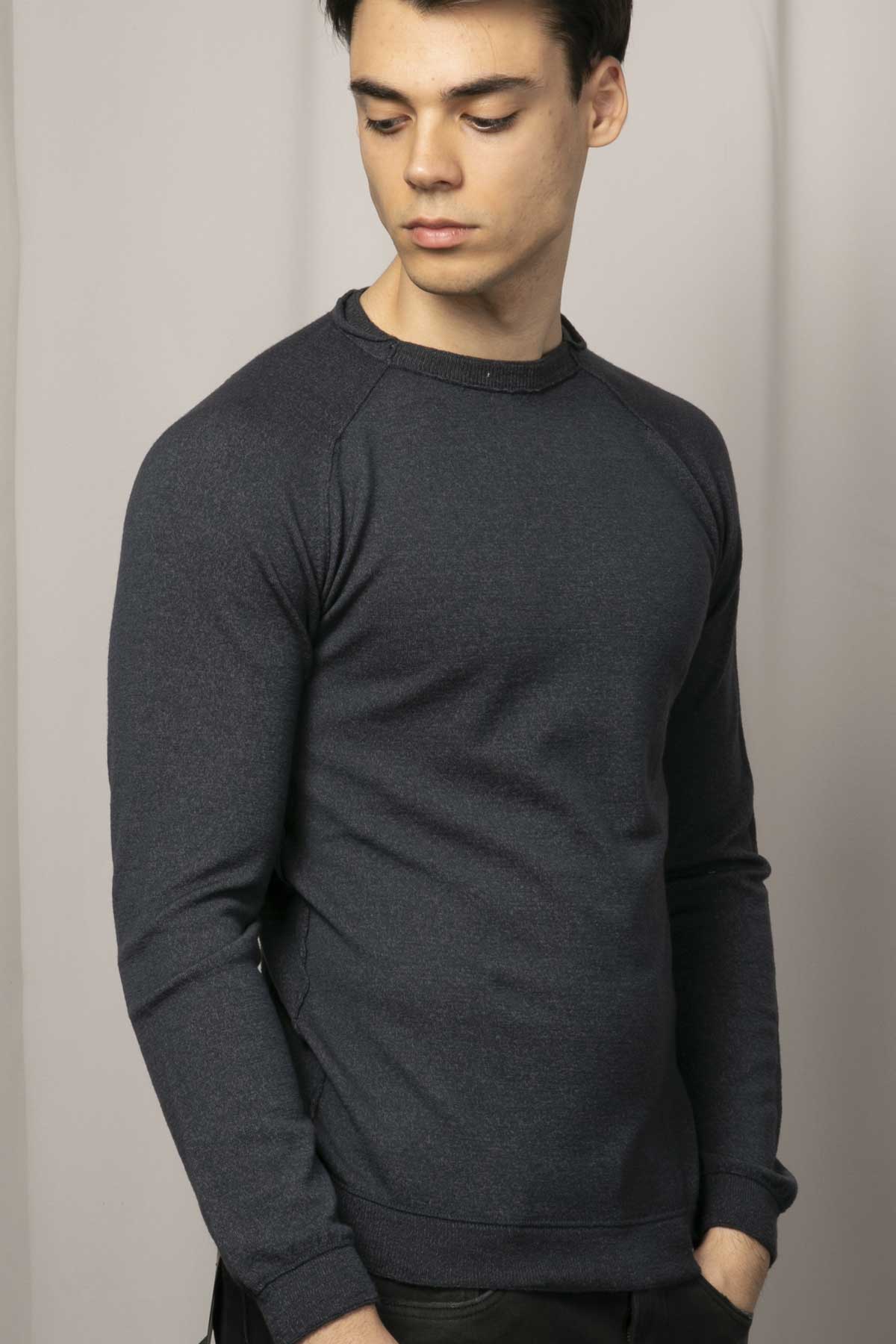 - Yuvarlak yaka uzun kollu yün triko.