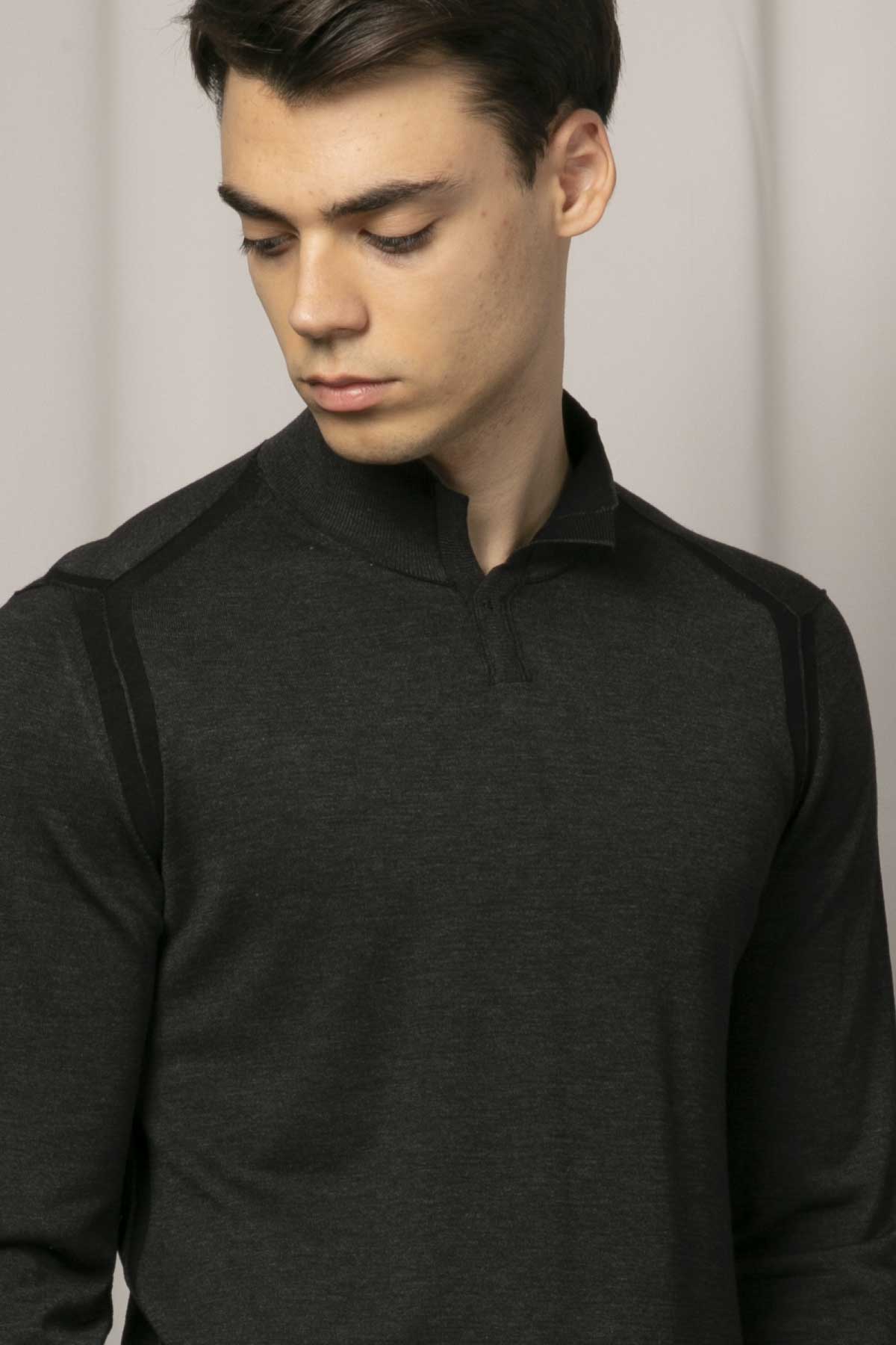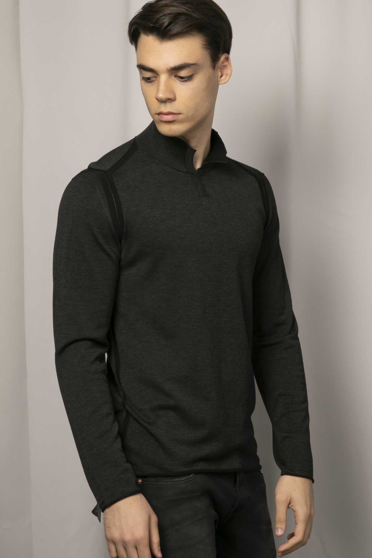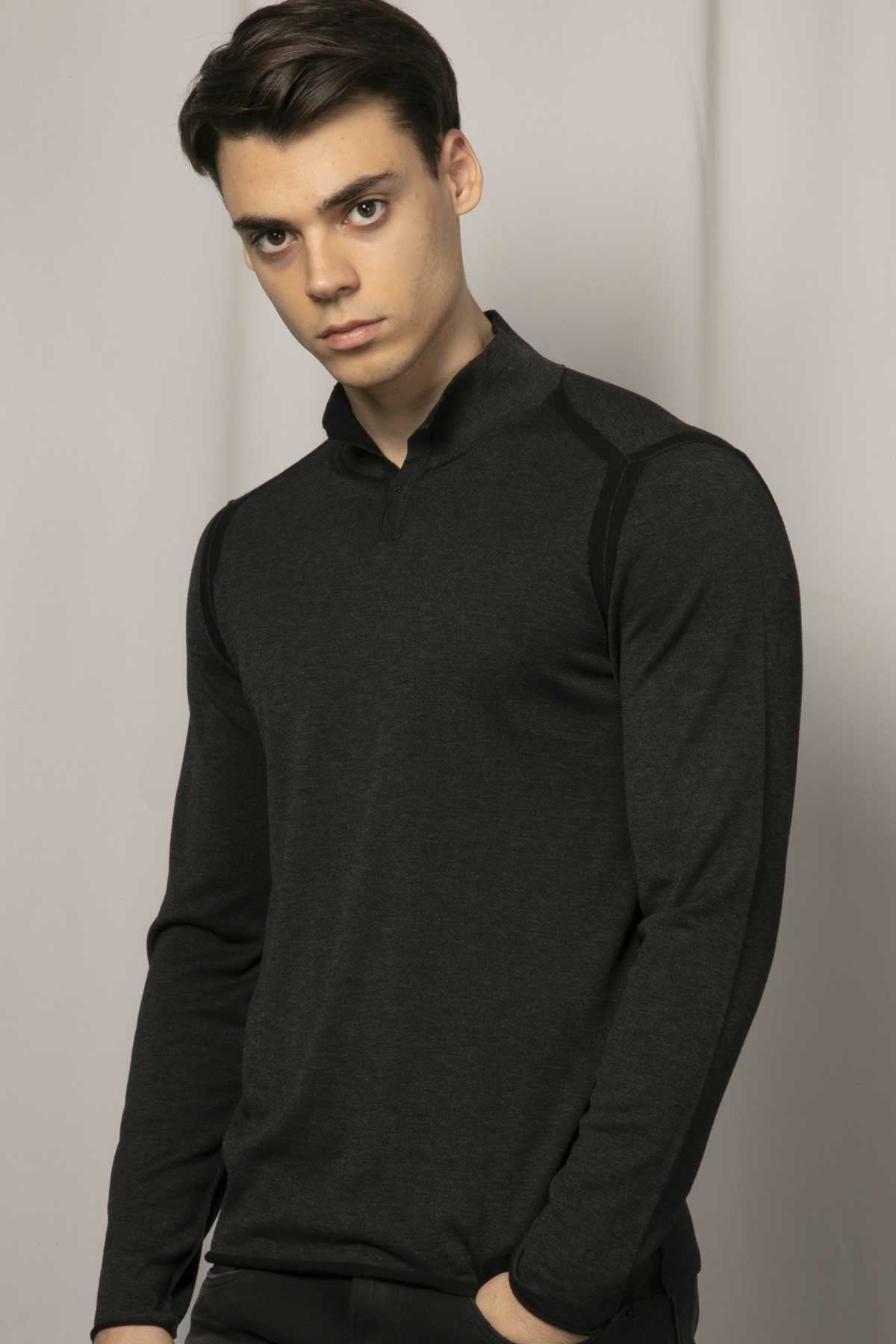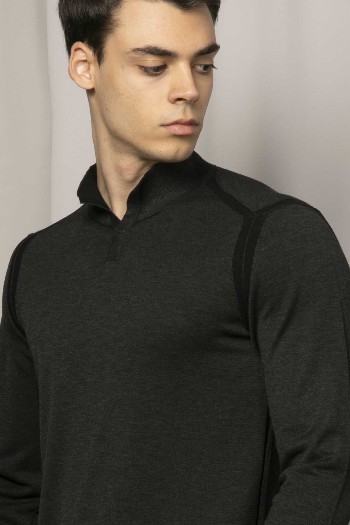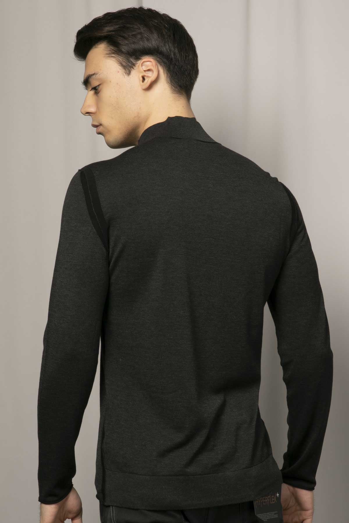- Dik yaka uzun kollu triko.