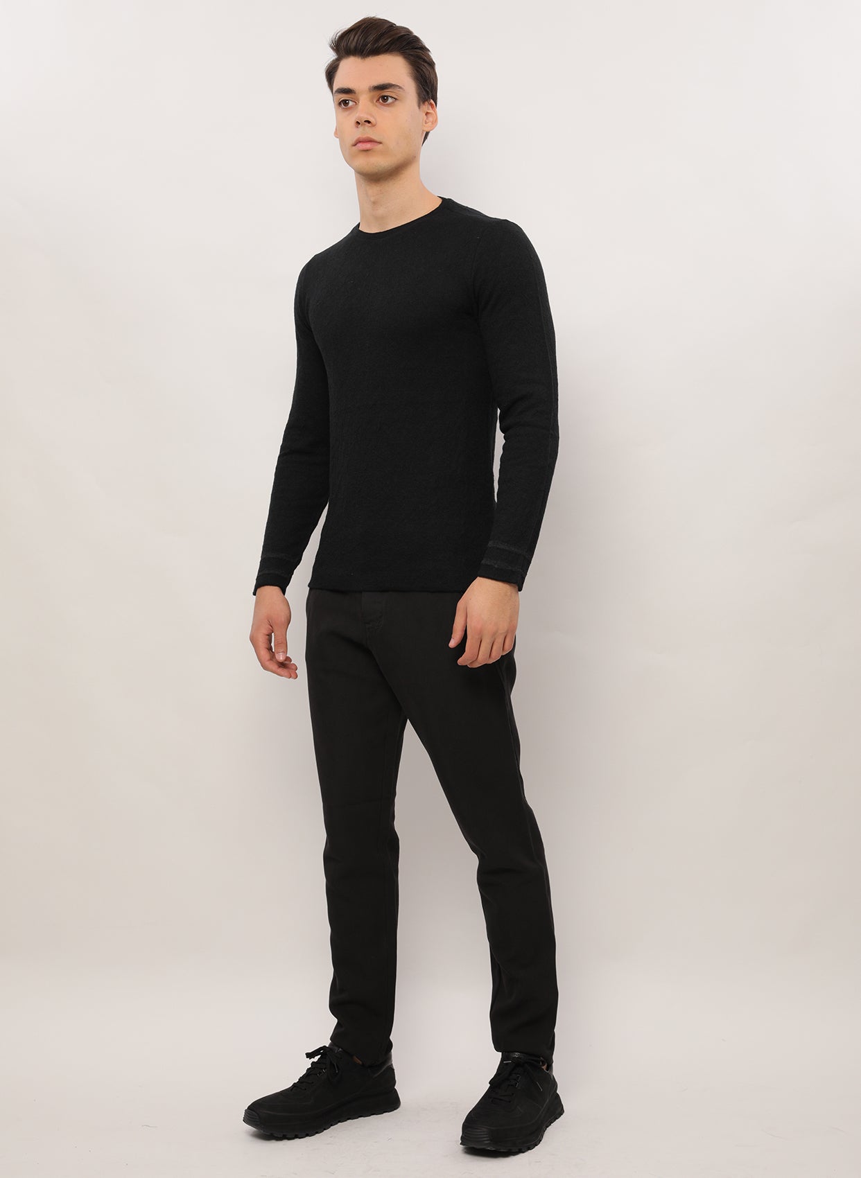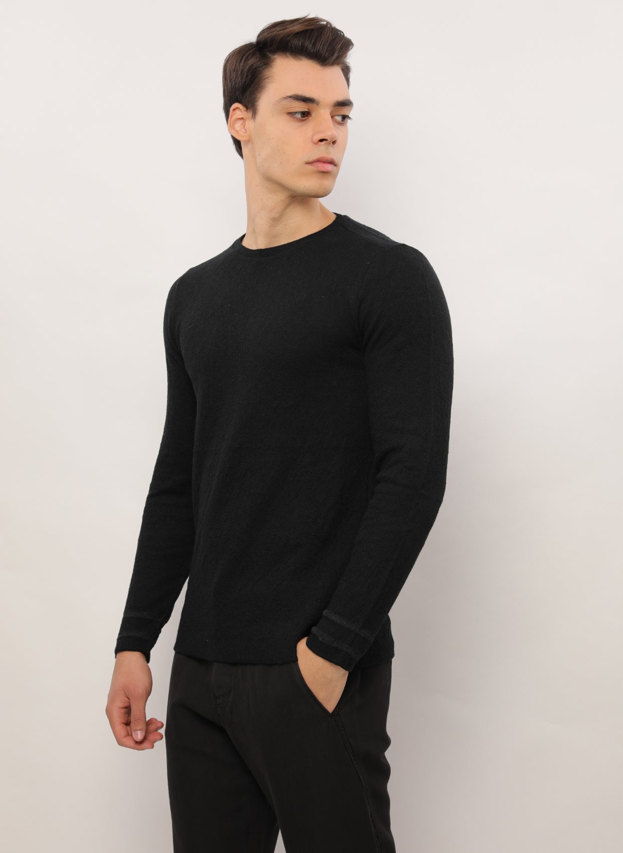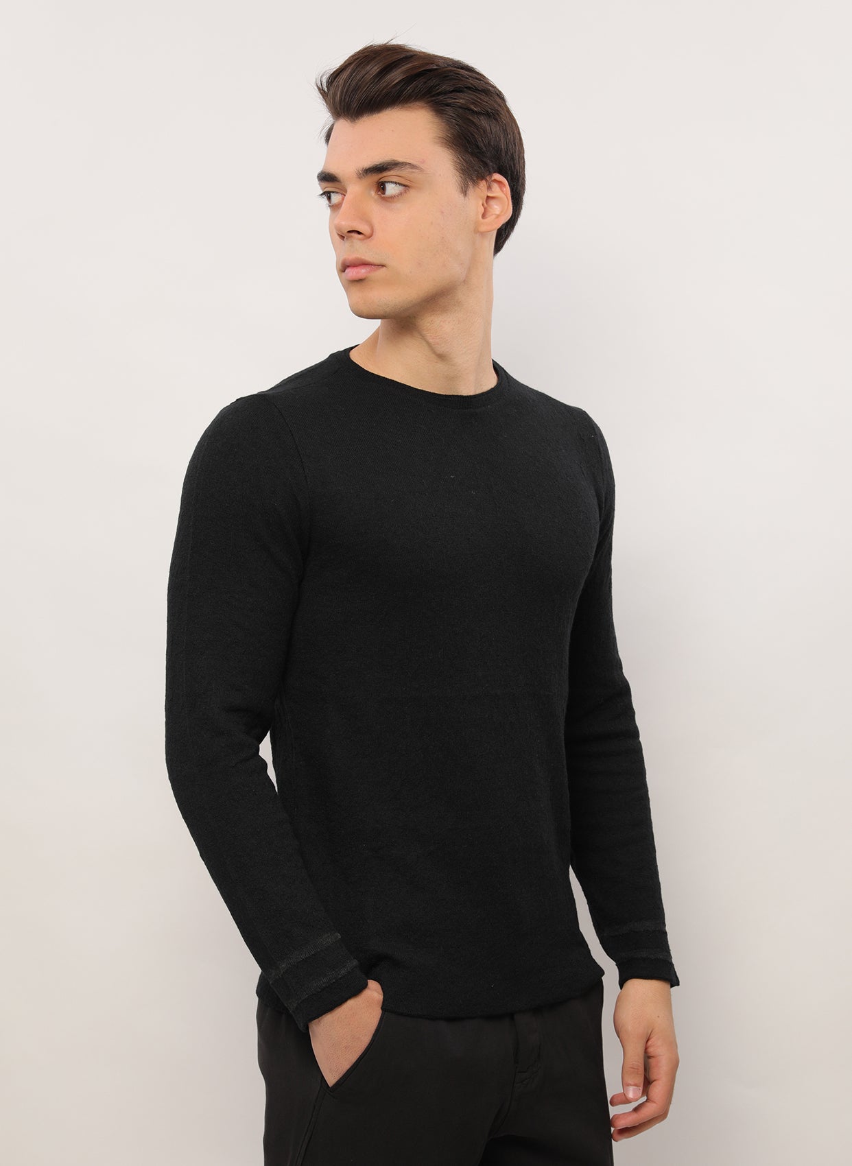 - Yuvarlak yaka uzun kollu triko.